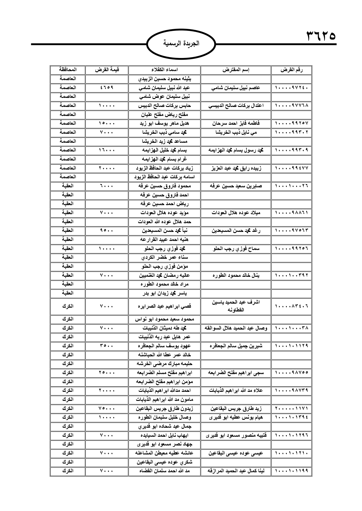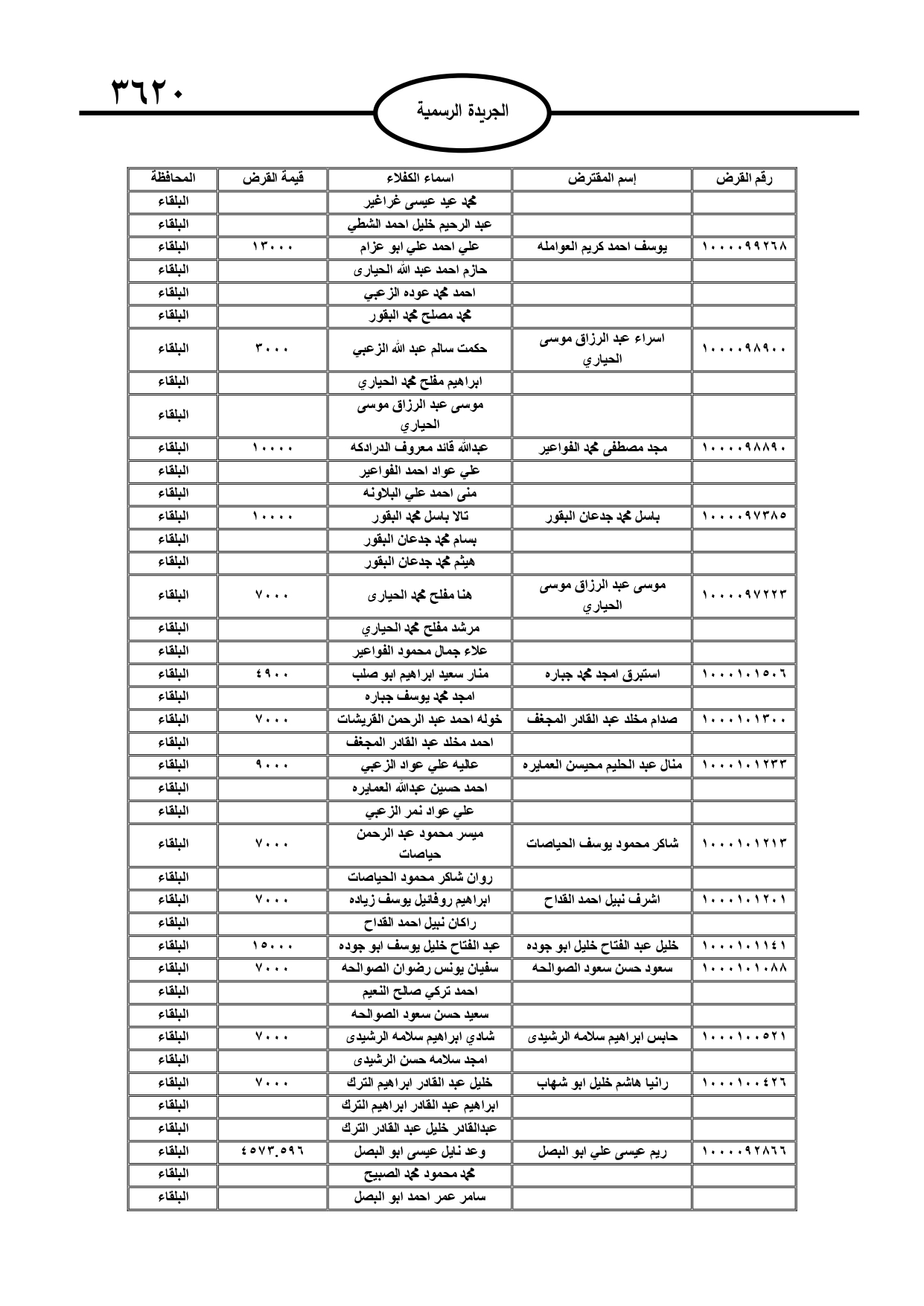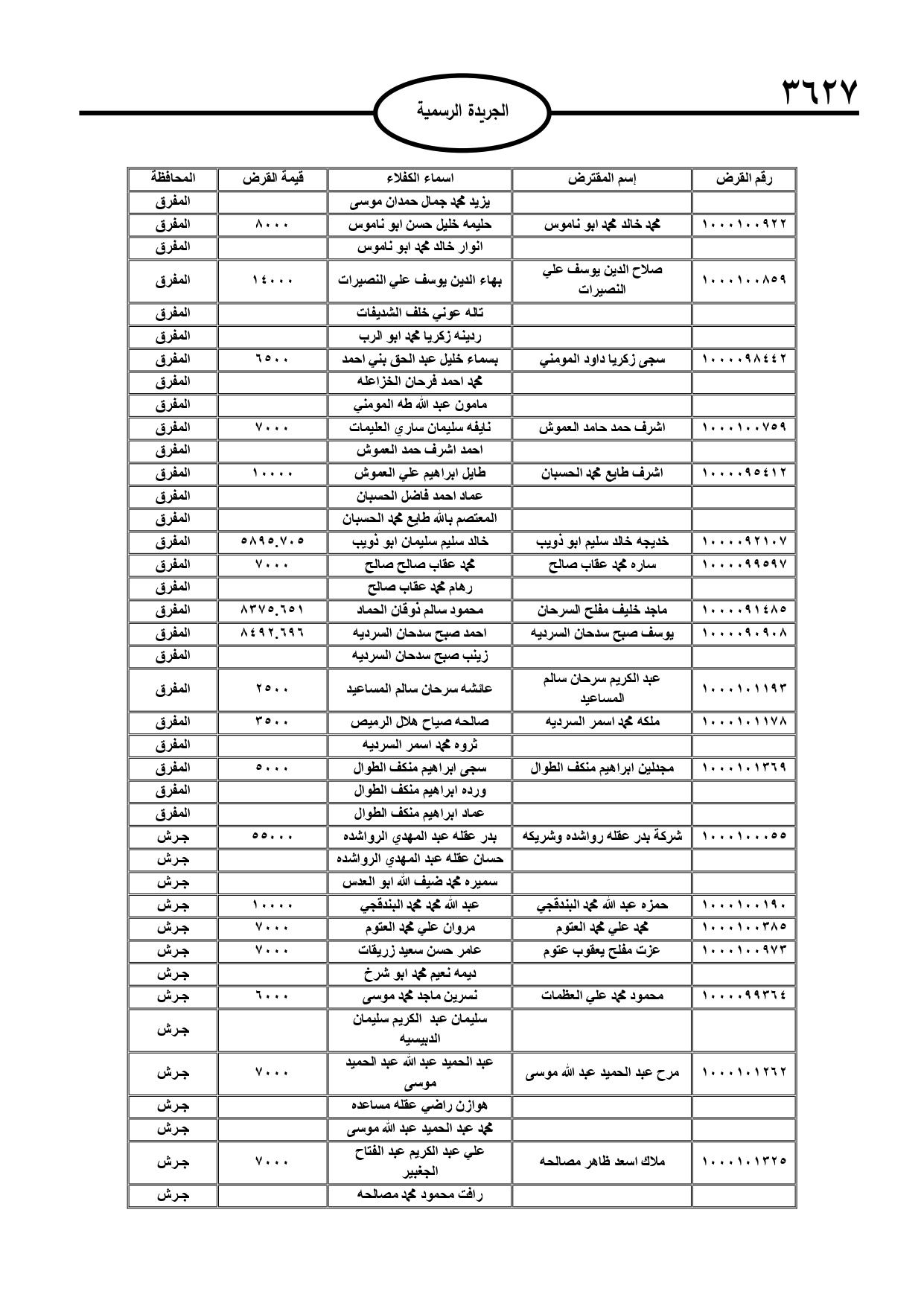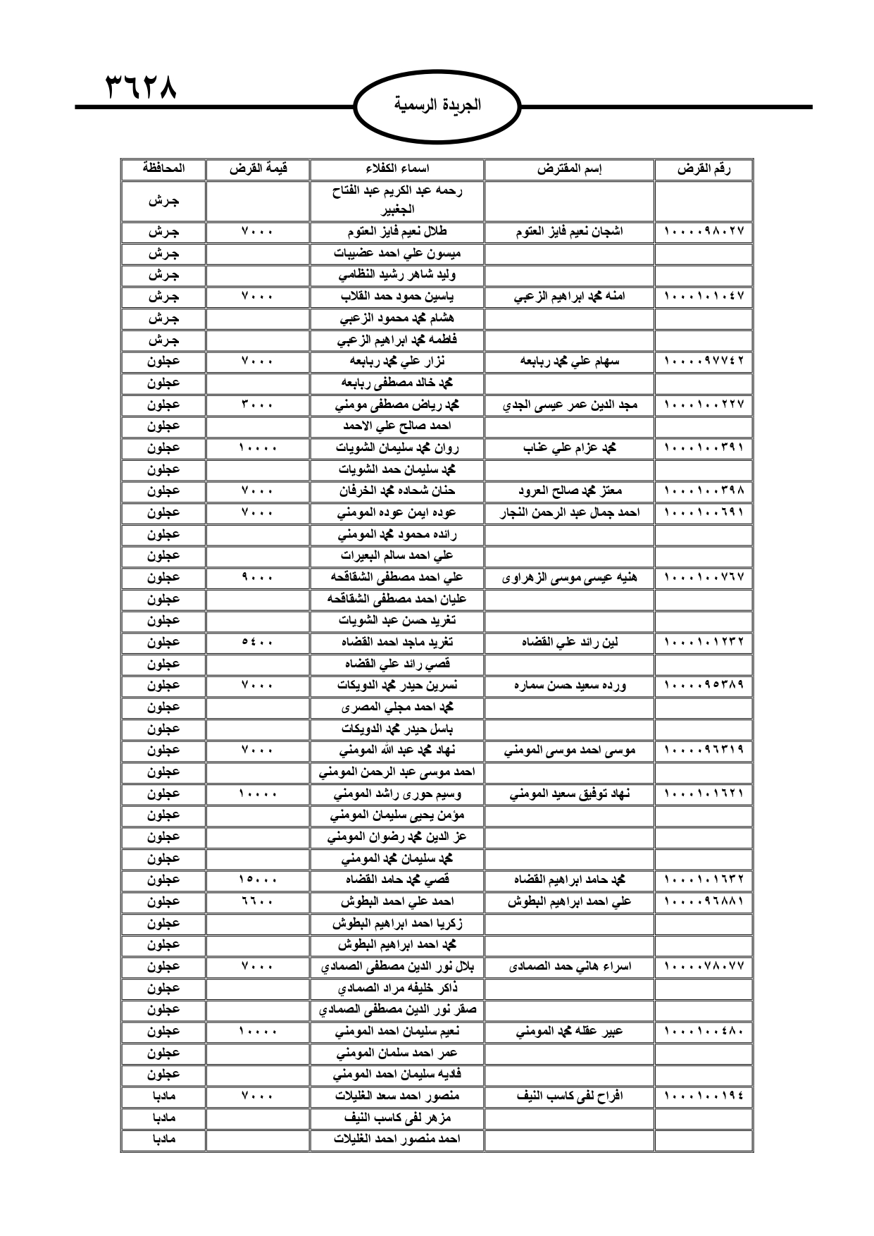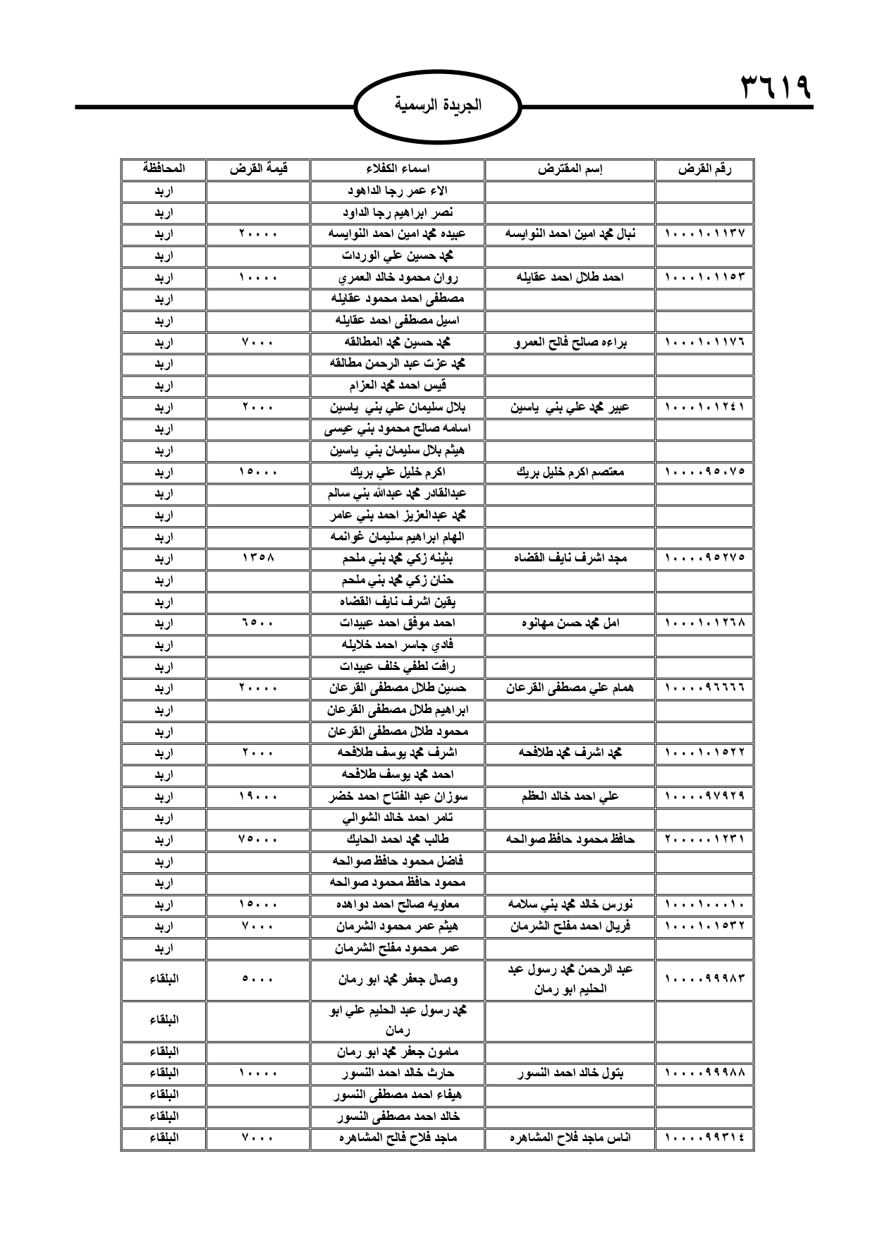 صدرت اليوم الأربعاء في الجريدة الرسمية، مطالبات بحق مئات الأردنيين لصالح وزارات ومؤسسات، وتاليا التفاصيل والأسماء: