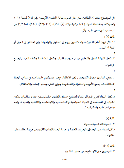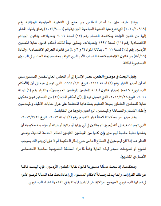 النص الكامل لقرار عدم دستورية قانون نقابة المعلمين