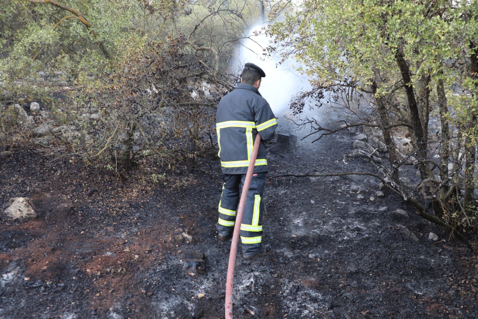 * جهود كبيرة بذلتها فرق الإطفاء في عمليات المكافحة نظراً لوعورة المنطقة وارتفاع درجات الحرارة واستمرت لساعات متواصلة