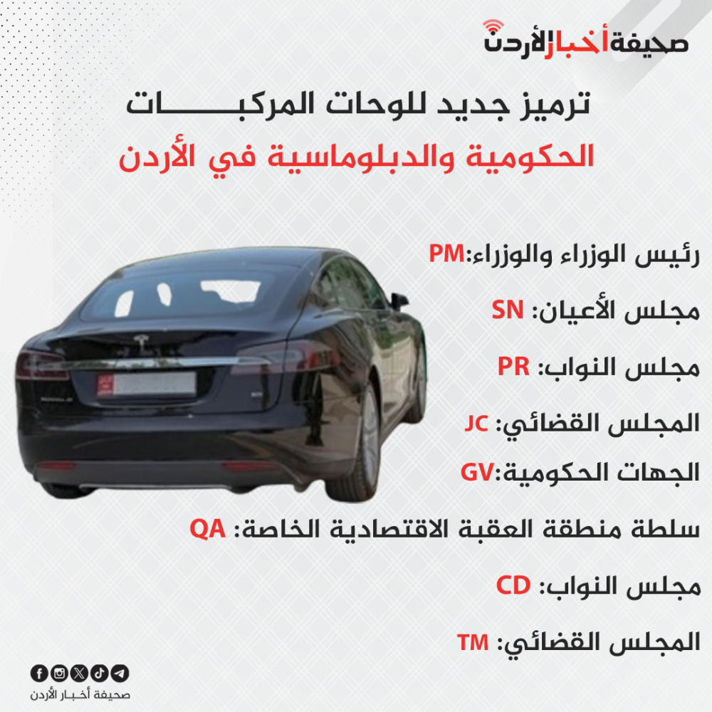 وشددت الحكومة على أن التعديل لا يمسّ بأرقام المركبات الخاصة أو العمومية أو مركبات الشحن، كما ستقوم إدارة ترخيص السواقين والمركبات باتخاذ الإجراءات اللازمة لتنفيذ التعديلات وفق الأصول.