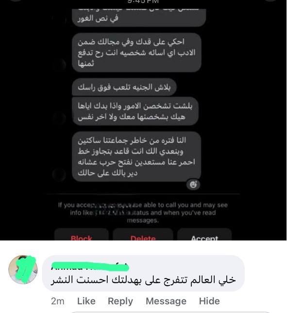 لكن المفاجأة جاءت مع عودة نفس الشخص إلى إطلاق التهديدات والإساءات علنا عبر منصات التواصل الاجتماعي، ولم تقتصر التهديدات على ابن شقيق الوزير فقط، بل تدخل شقيق الوزير شخصيا، وهاجم الغزاوي في تعليق على فيسبوك قائلاً: "يشهد الله خسارة فيكم الوزير ويا غزاوي بيننا وبينك القانون وما في داعي تهدد إنك قادر ترد بالأيادي لأنها كبيرة عليك".