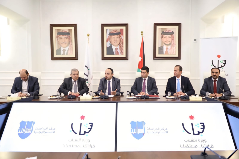 ووقَّع الاتفاقية أمين عام وزارة الشباب الدكتور مازن أبو بقر، ومدير مركز الدراسات الاستراتيجية الدكتور حسن المومني.