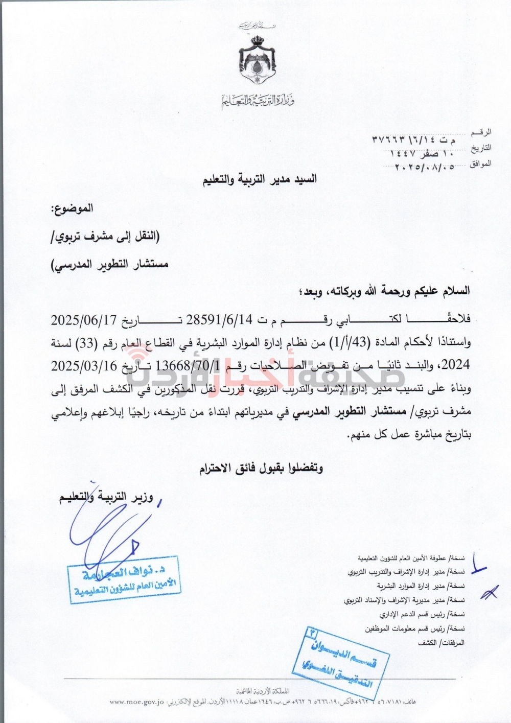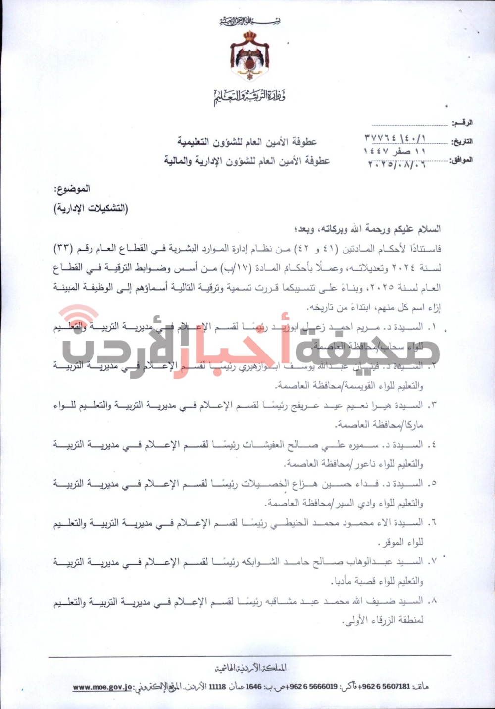 تشكيلات إدارية وتنقلات واسعة في التربية (أسماء)