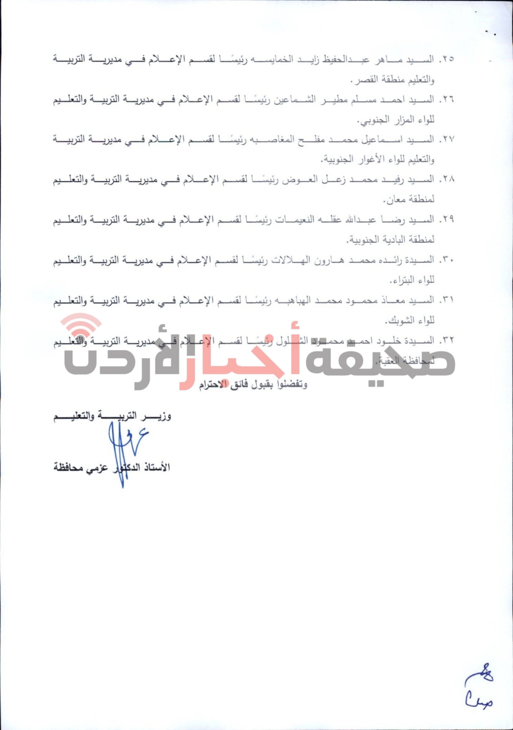 قرر وزير التربية والتعليم، إجراء تشكيلات إدارية واسعة في الوزارة تشمل رؤساء أقسام، وتنقلات في مختلف المديريات.