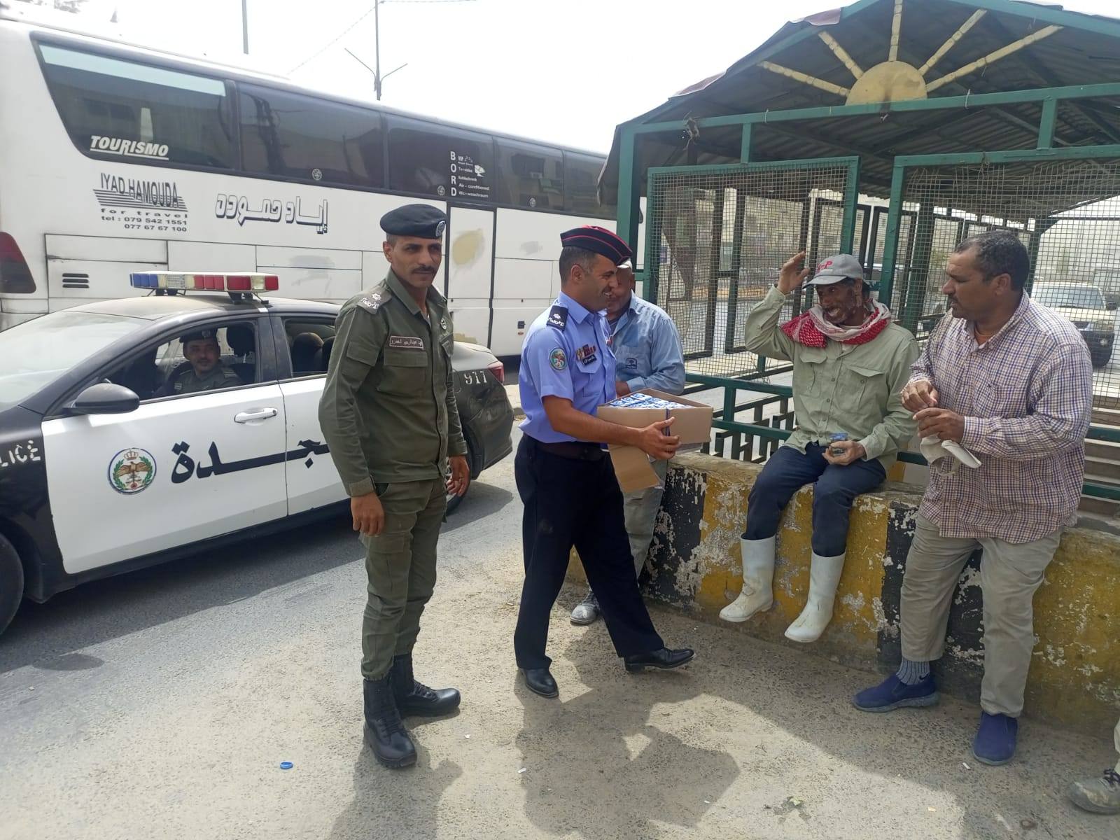 أطلقت مديرية الأمن العام، اليوم، مبادرة وطنية بعنوان "سقيا رحمة"، بهدف تقديم العون والمساعدة للمواطنين، وتعزيز الوعي الوقائي، وتوزيع المياه والكمامات على المواطنين في مختلف مناطق ومحافظات المملكة، تزامناً مع الموجة الحارة والأجواء المغبرة.