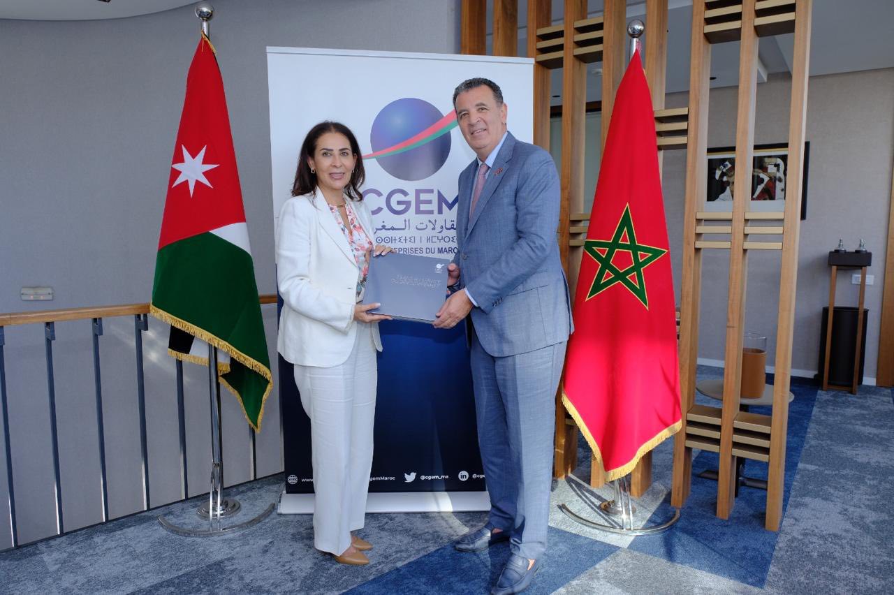 التقت سفيرة المملكة الأردنية الهاشمية لدى المملكة المغربية جمانة غنيمات، بسعادة السيد شكيب لعلج، رئيس الاتحاد العام لمقاولات المغرب، وذلك في مقر الاتحاد بمدينة الدار البيضاء.