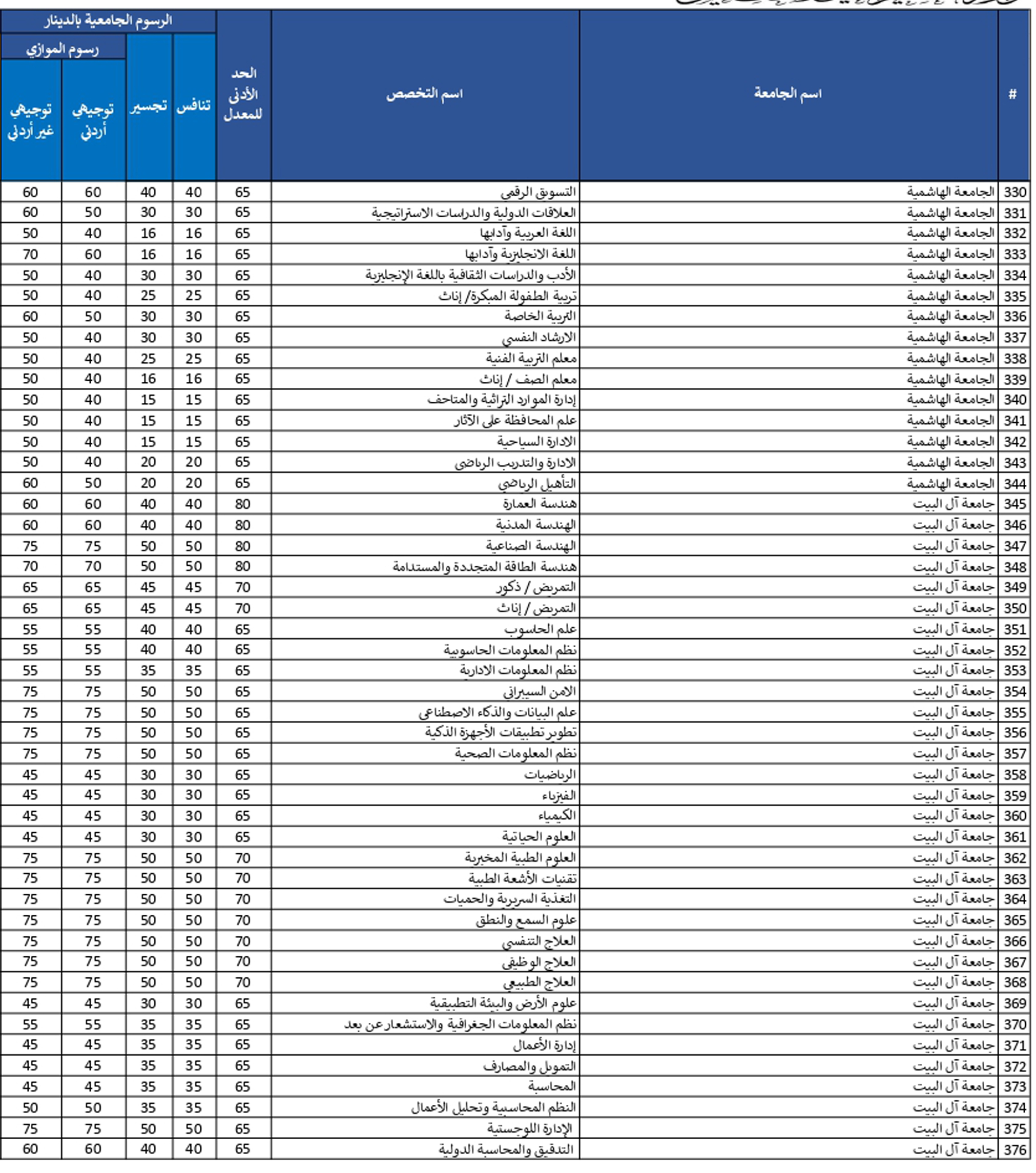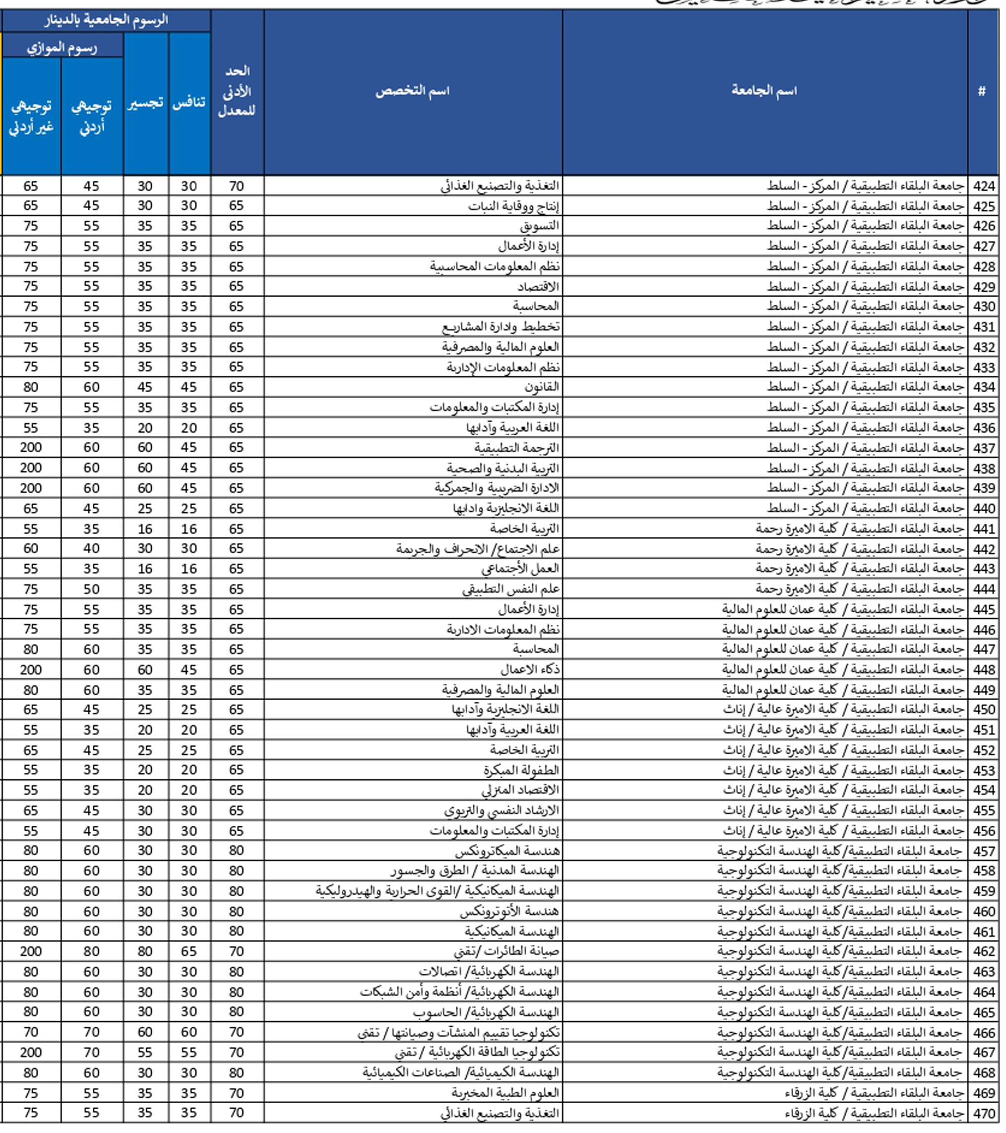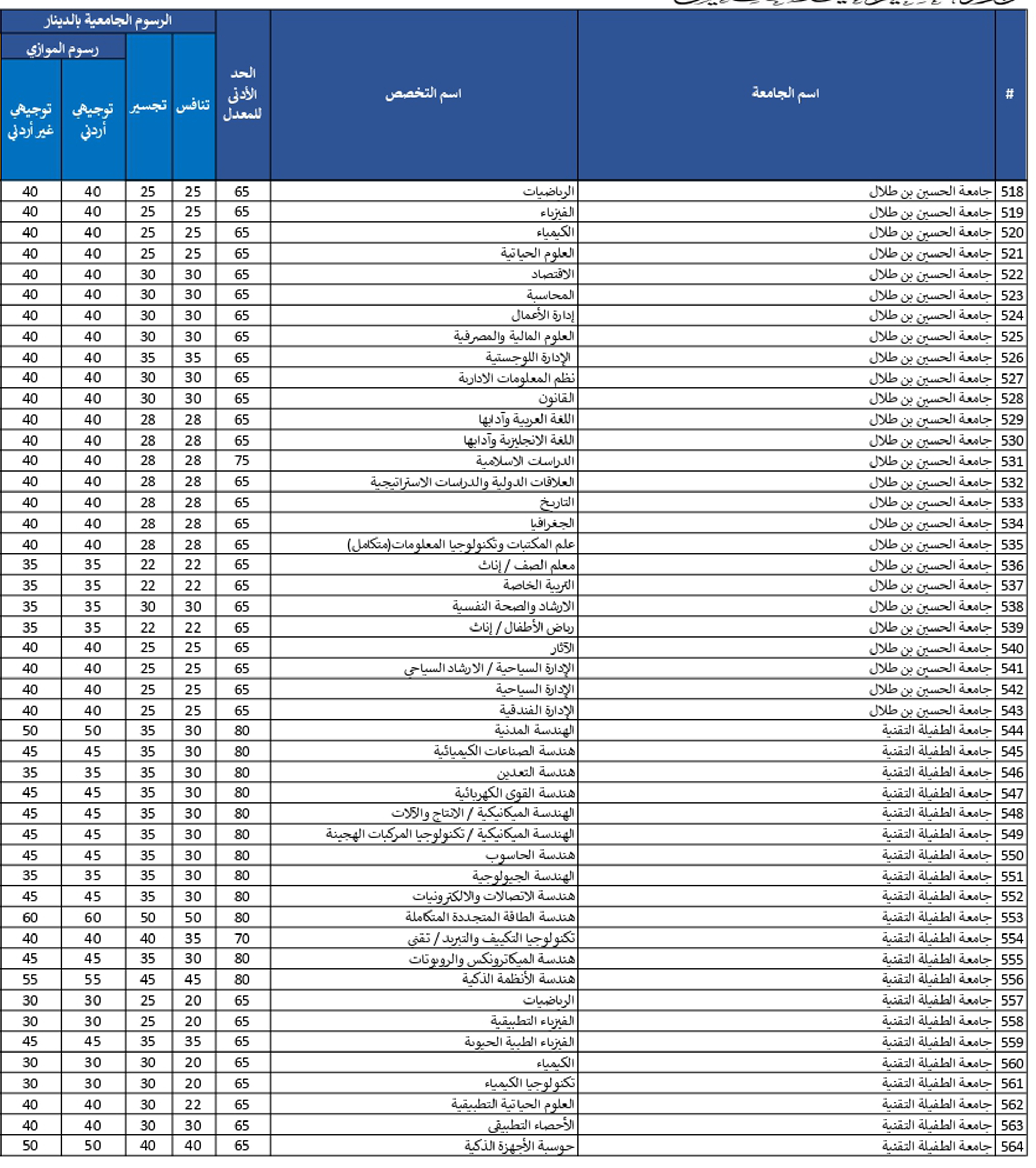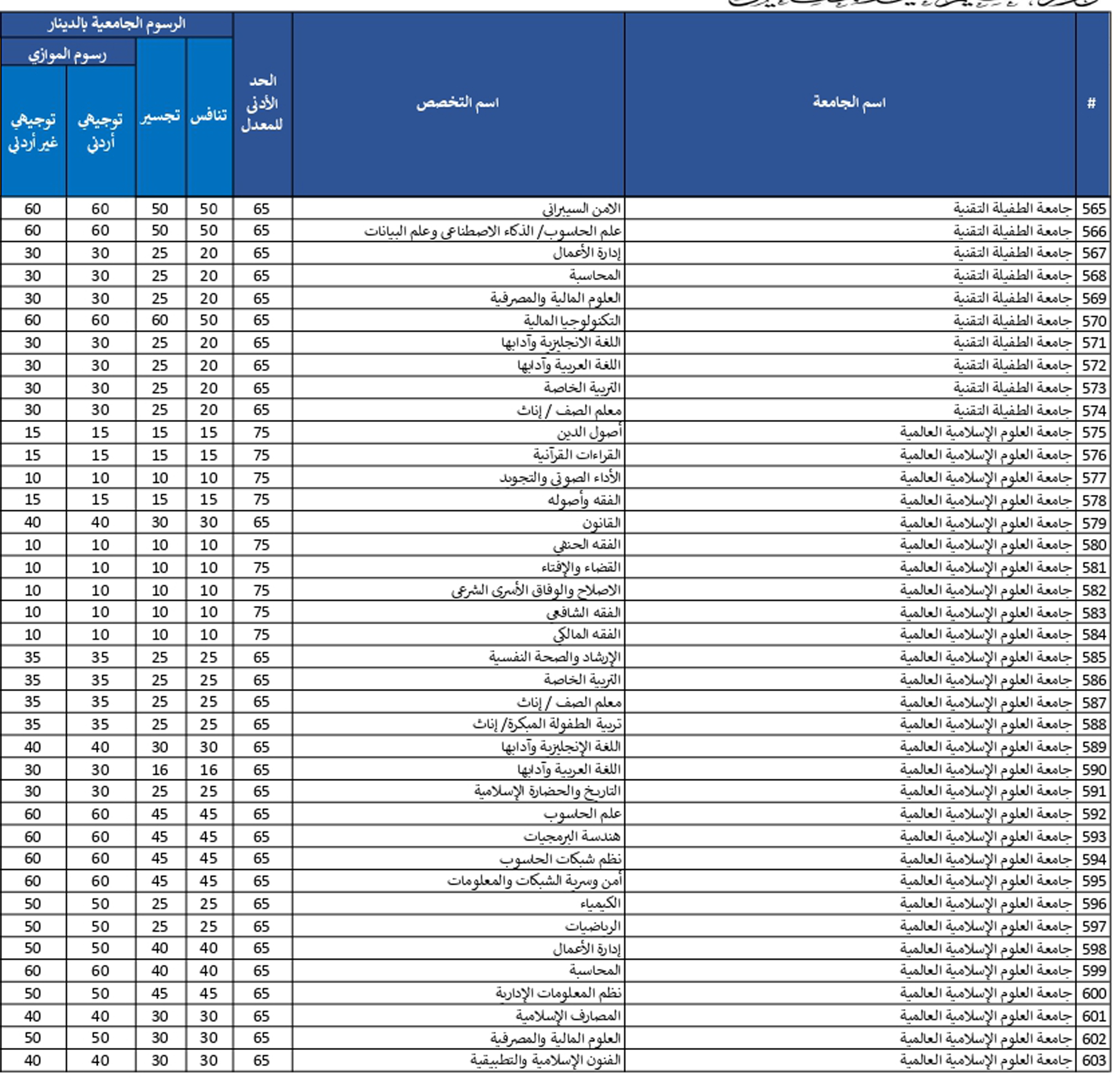 رسوم جميع التخصصات في الجامعات الرسمية (صور)