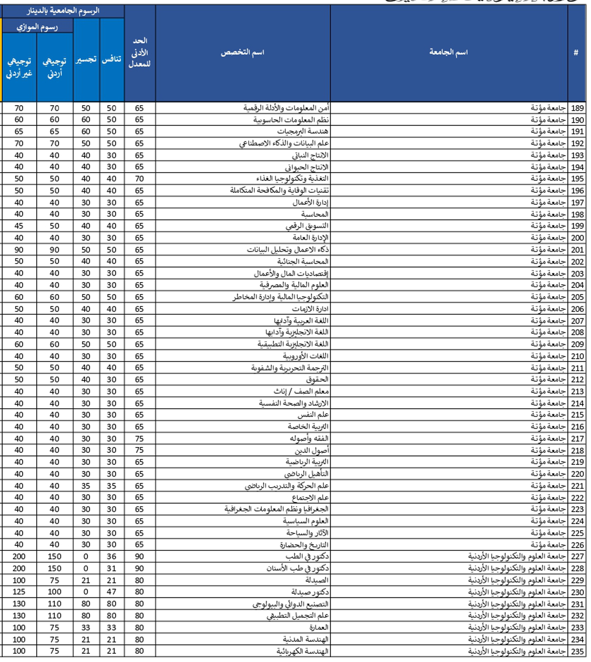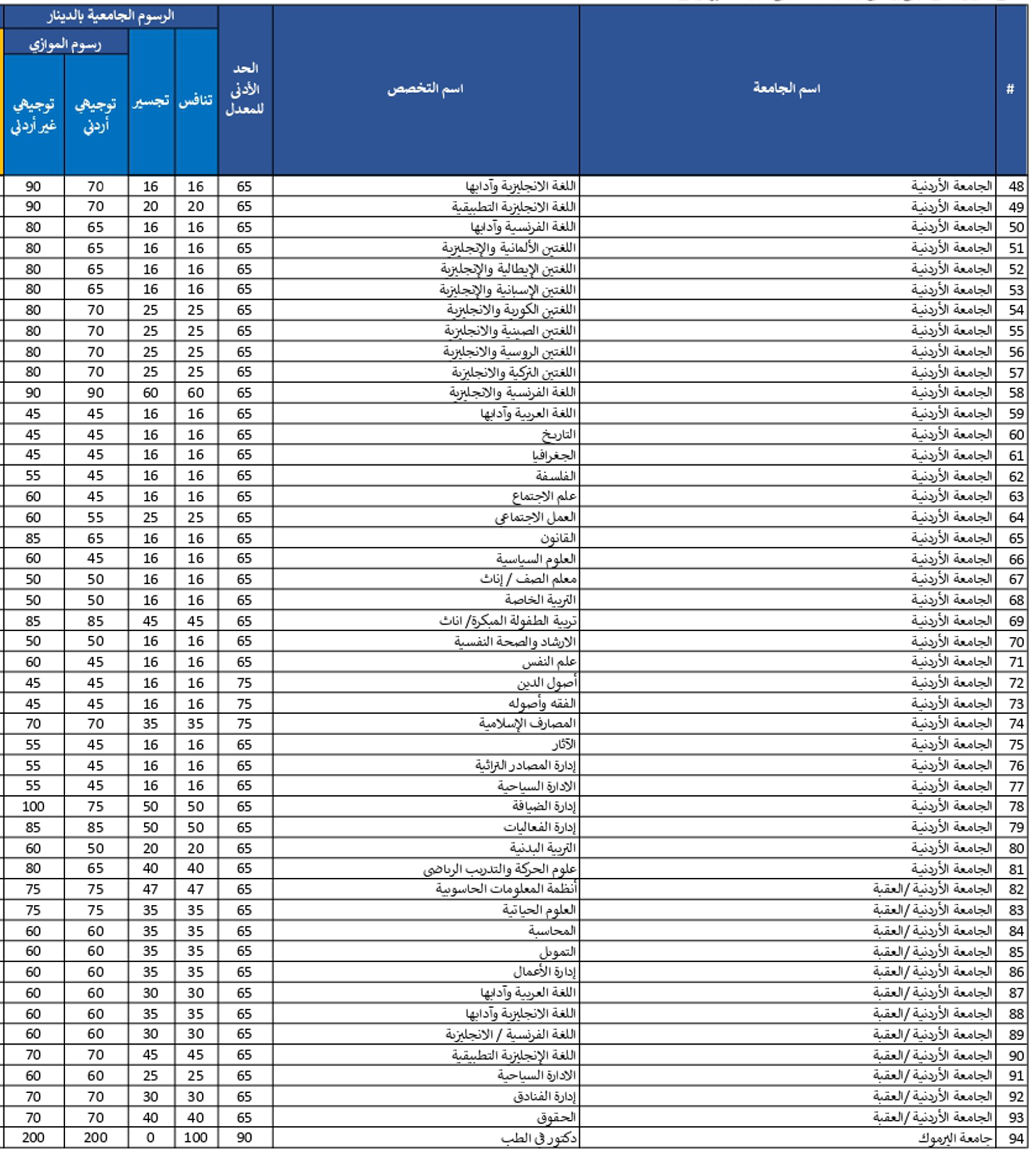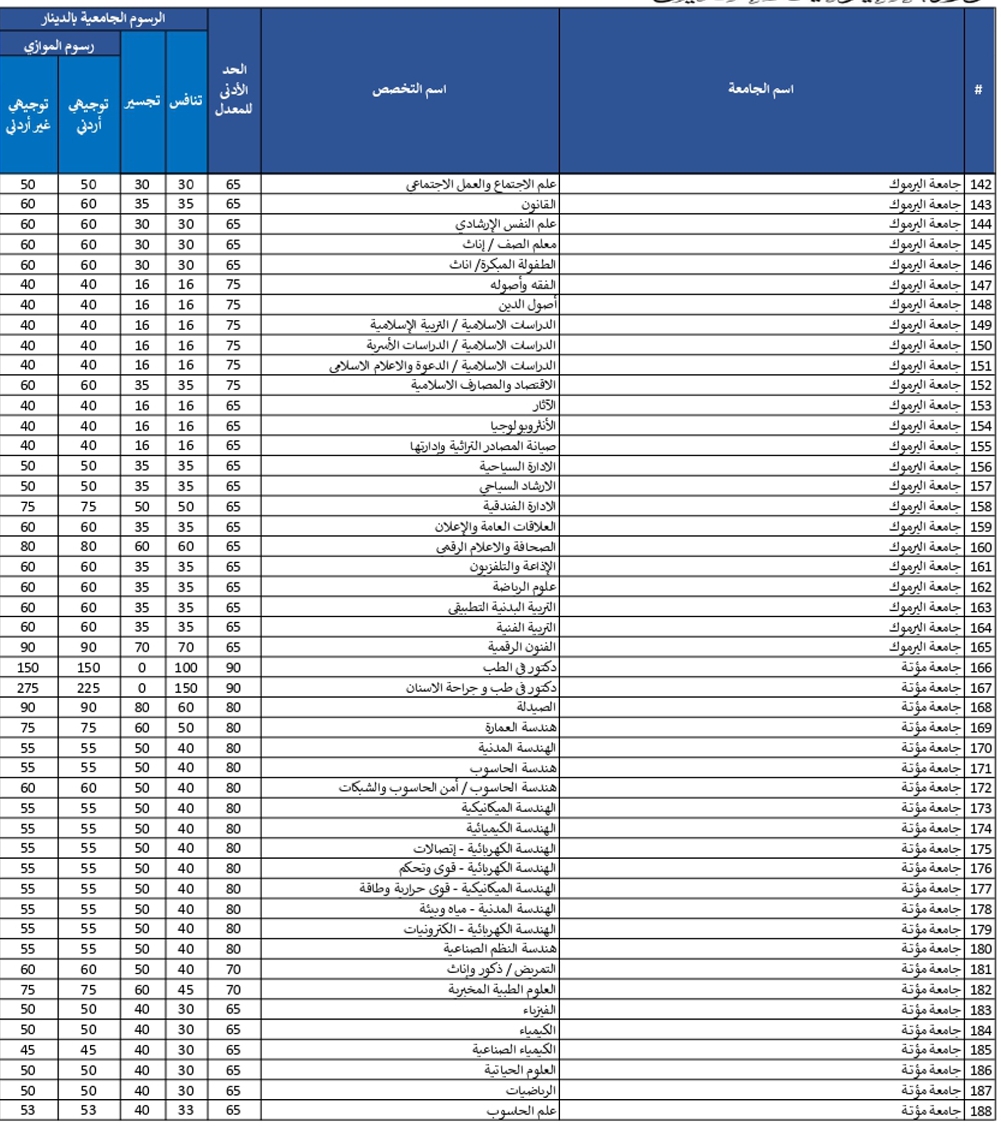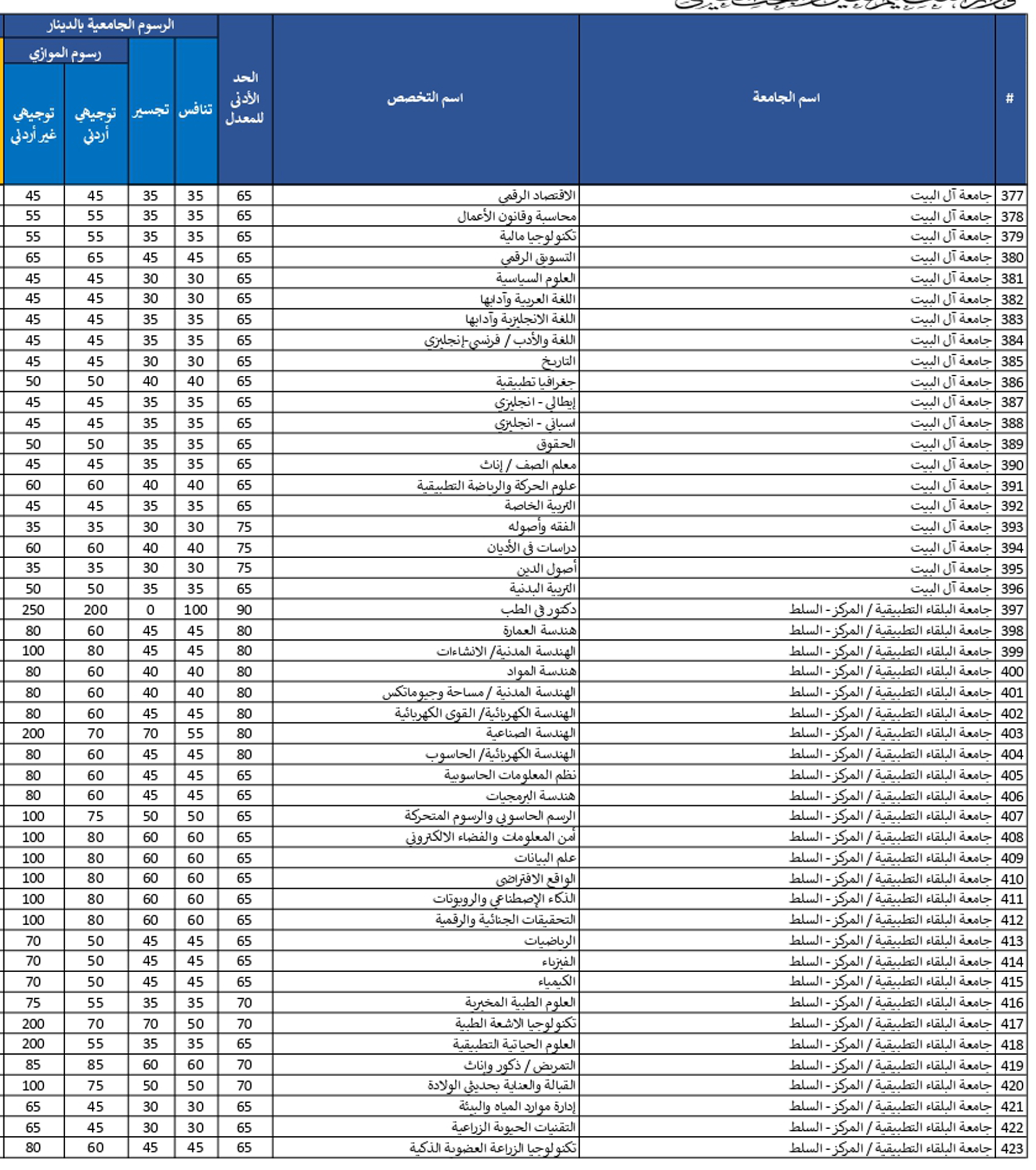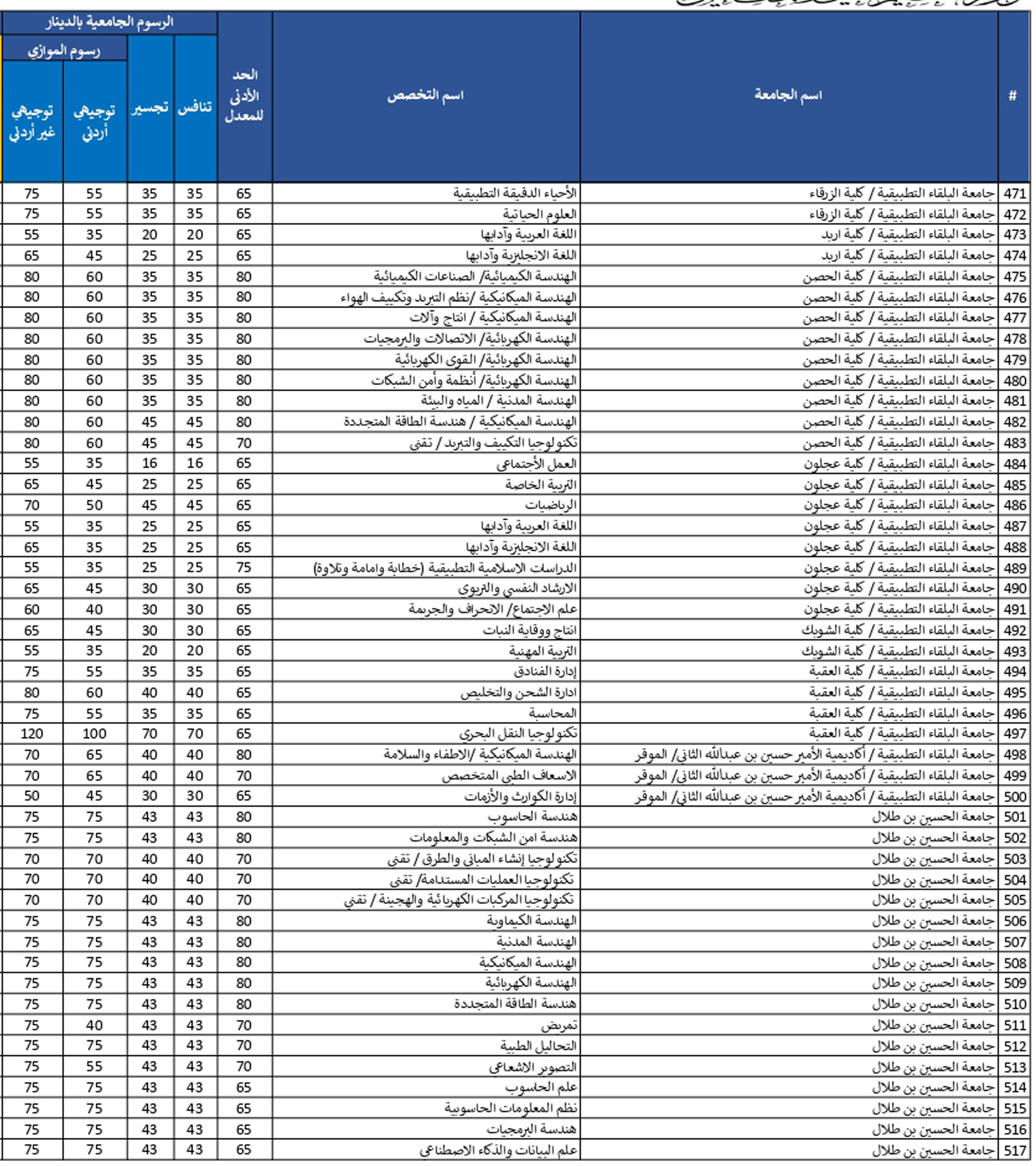 رسوم جميع التخصصات في الجامعات الرسمية (صور)