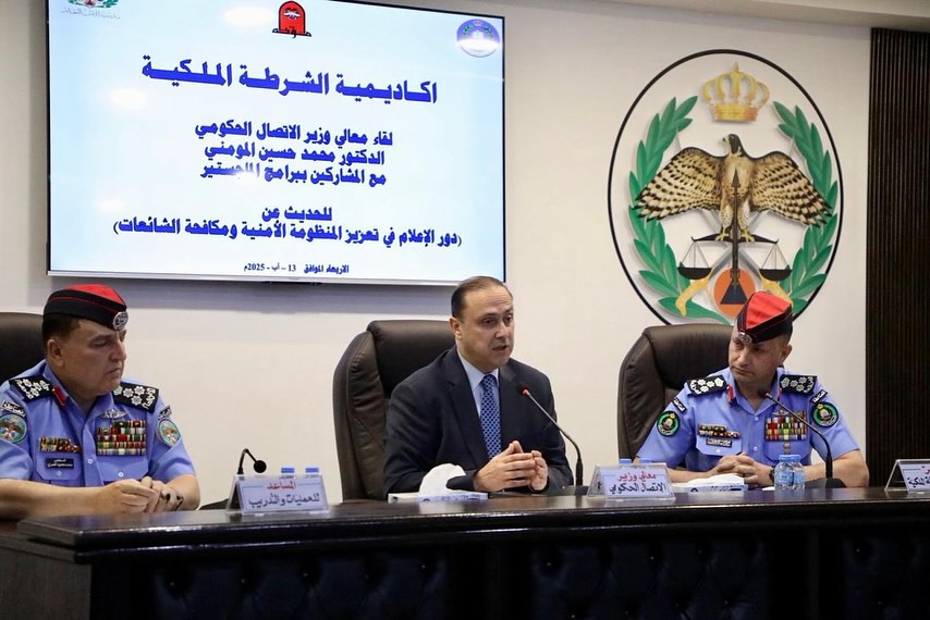 وقال المومني خلال محاضرة في أكاديمية الشرطة الملكية بعنوان "دور الإعلام في تعزيز المنظومة الأمنية ومكافحة الشائعات"، إن الإعلام يسهم في ترسيخ مفهوم الأمن الوطني الشامل، ويرسخ تكاملية العمل مع الأجهزة الأمنية والتضامن المجتمعي معها.