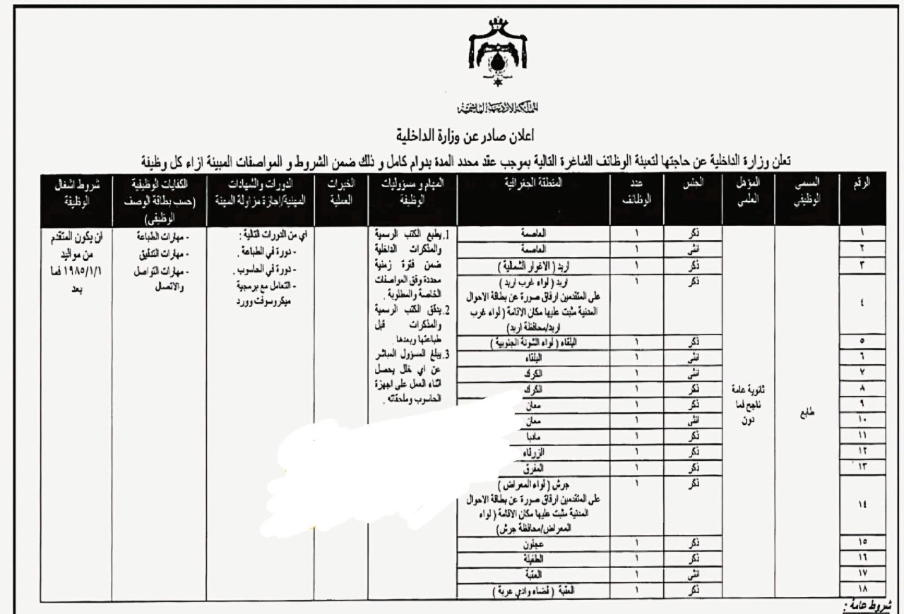 وأوضحت الوزارة أنه سيتم الإعلان عن نتائج الفرز وأي مستجدات تتعلق بالوظائف عبر الموقع الرسمي: www.moi.gov.jo.