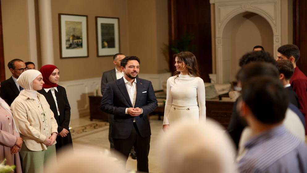 استقبل نائب جلالة الملك، سمو الأمير الحسين بن عبدالله الثاني ولي العهد، بحضور سمو الأميرة رجوة الحسين، في قصر بسمان الزاهر، أوائل الثانوية العامة من الطلبة النظاميين للسنة الدراسية 2024-2025، وهنأهم على تفوقهم.