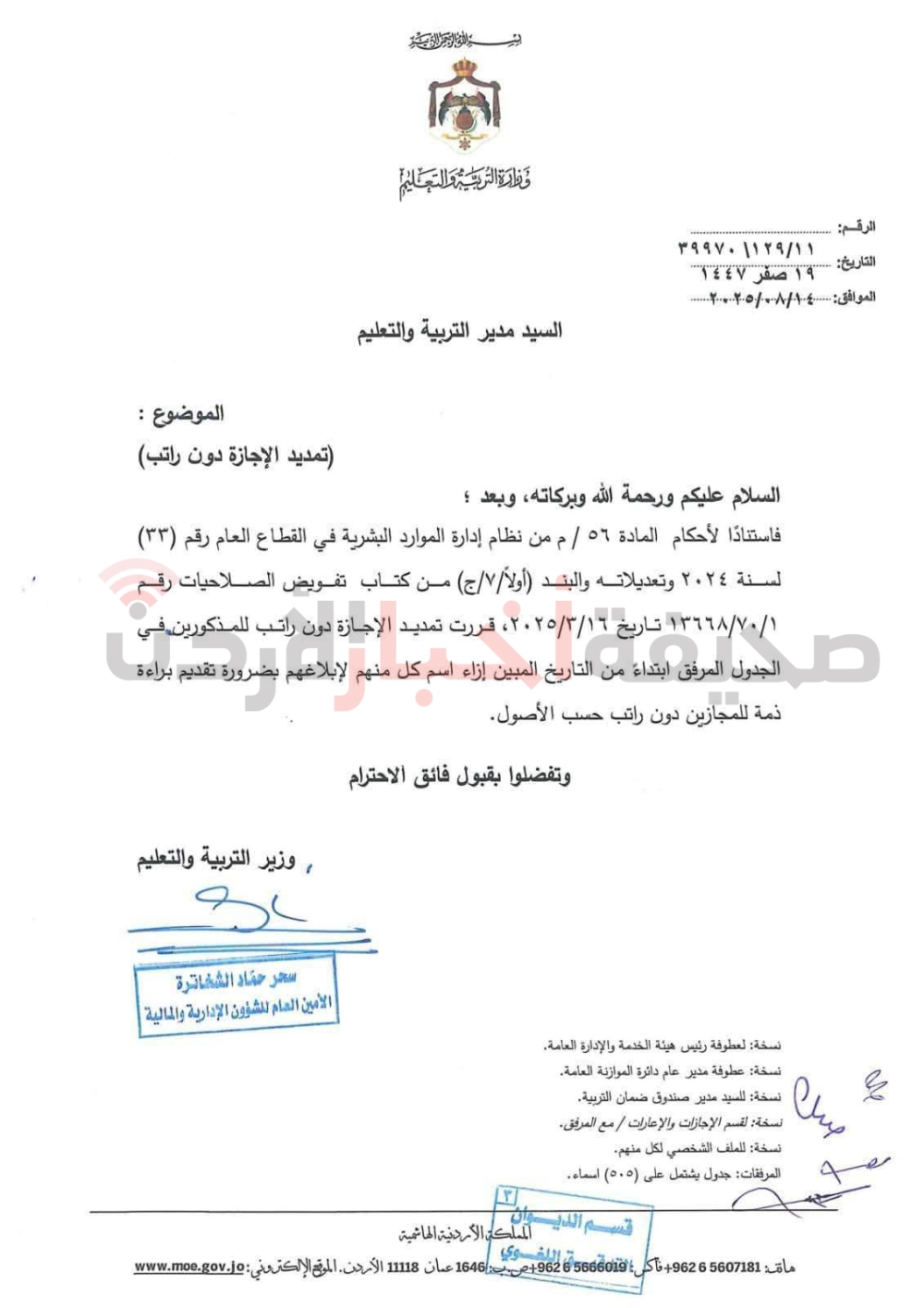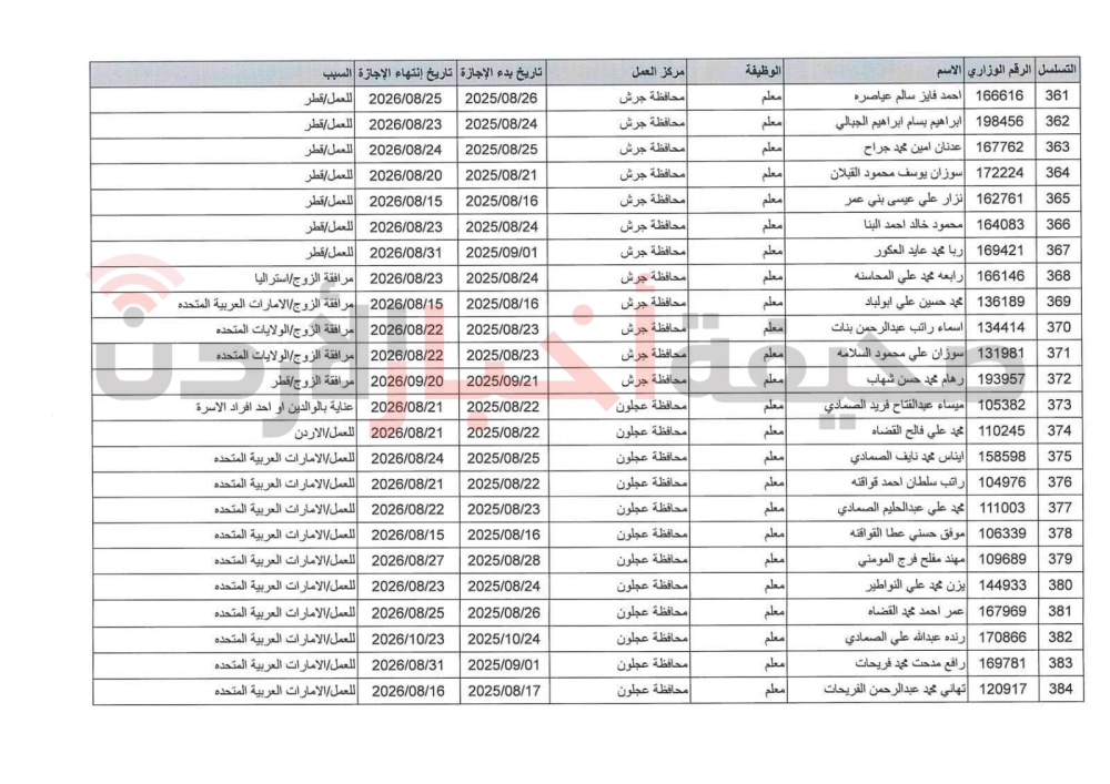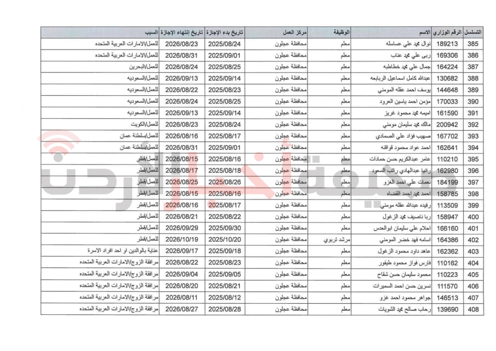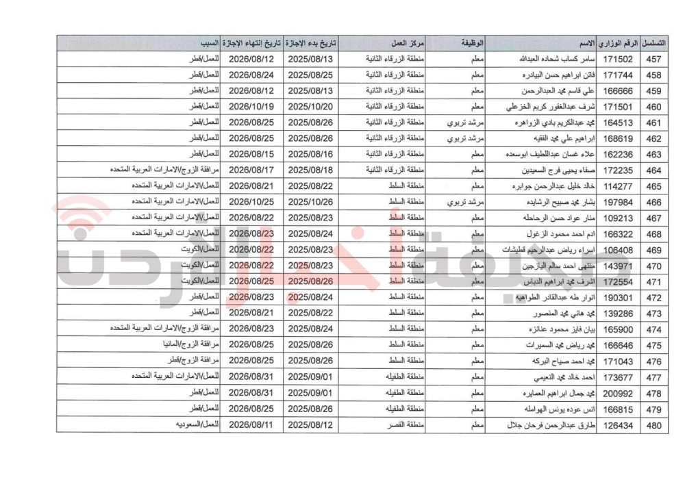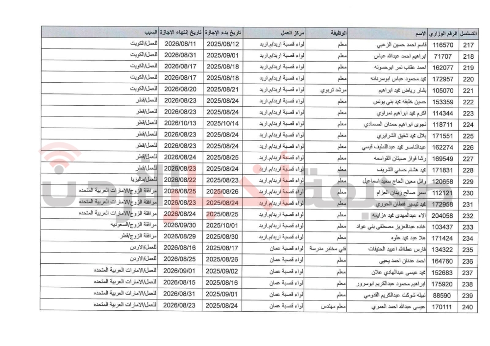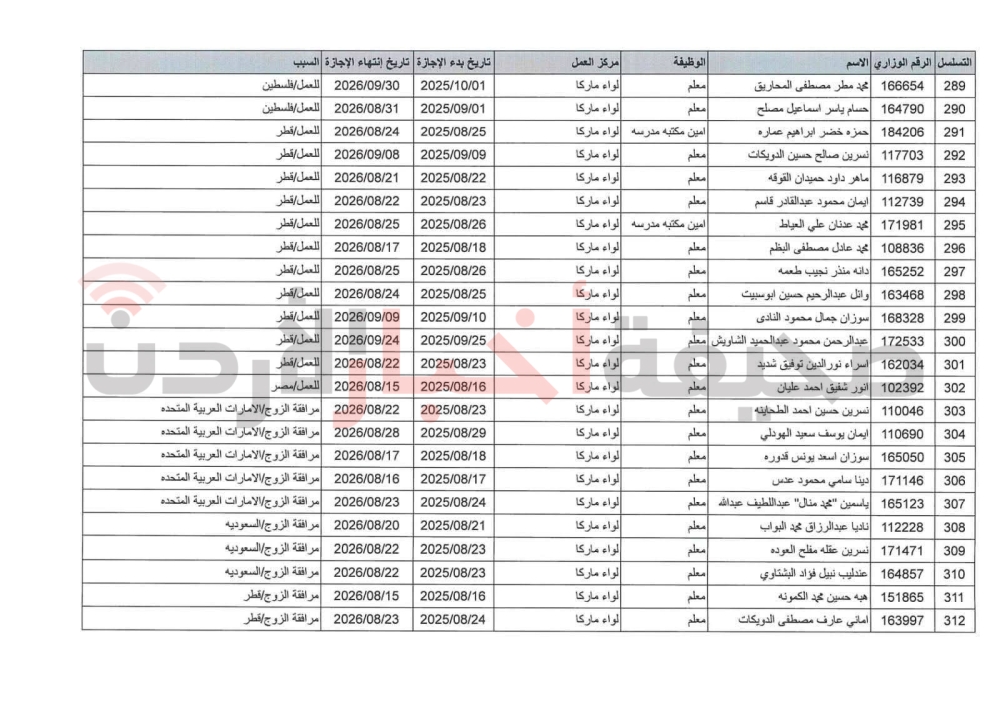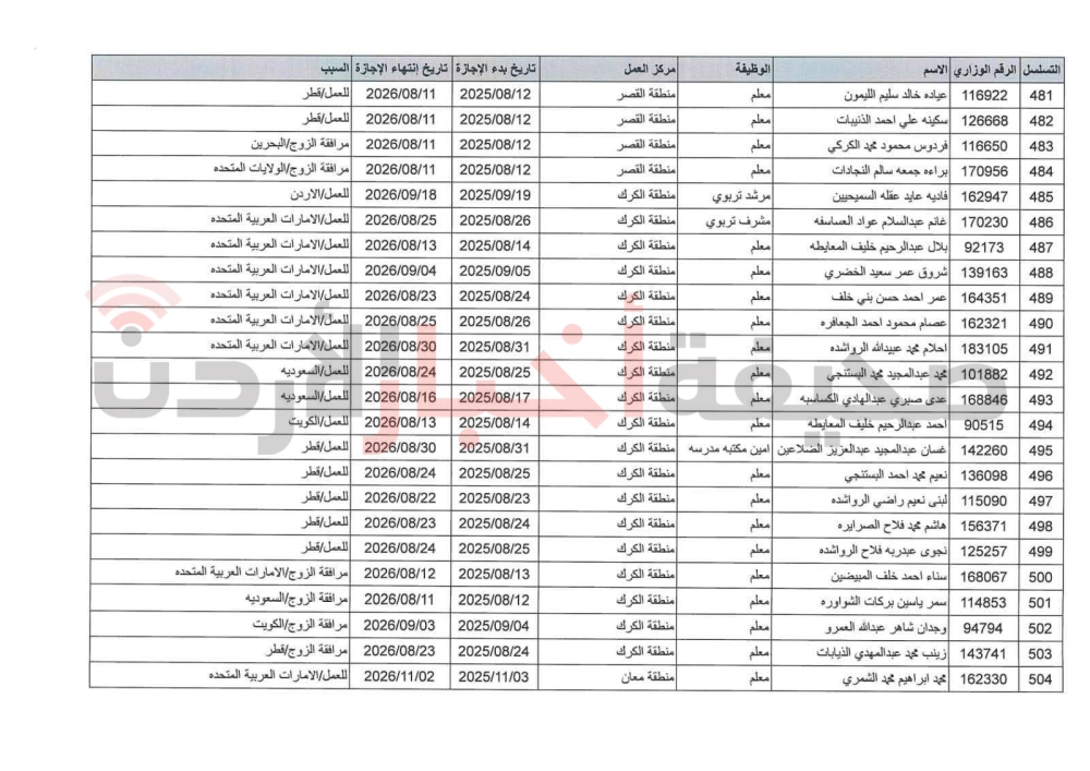 تمديد الإجازة بدون راتب لـ505 موظفين في التربية (أسماء)