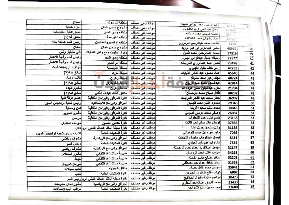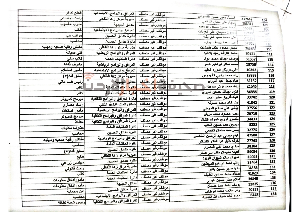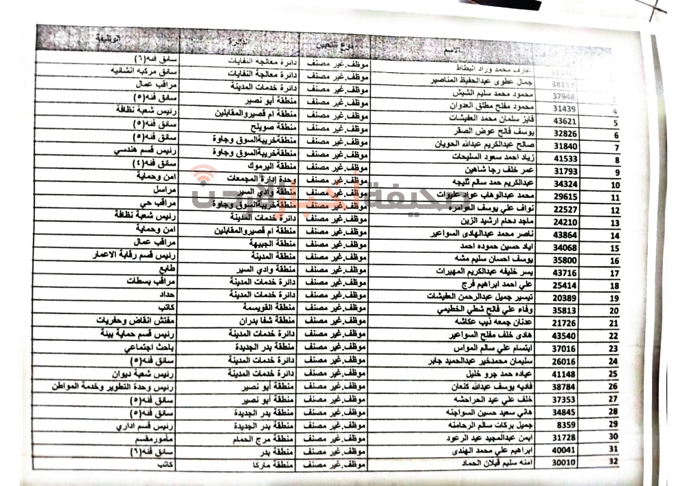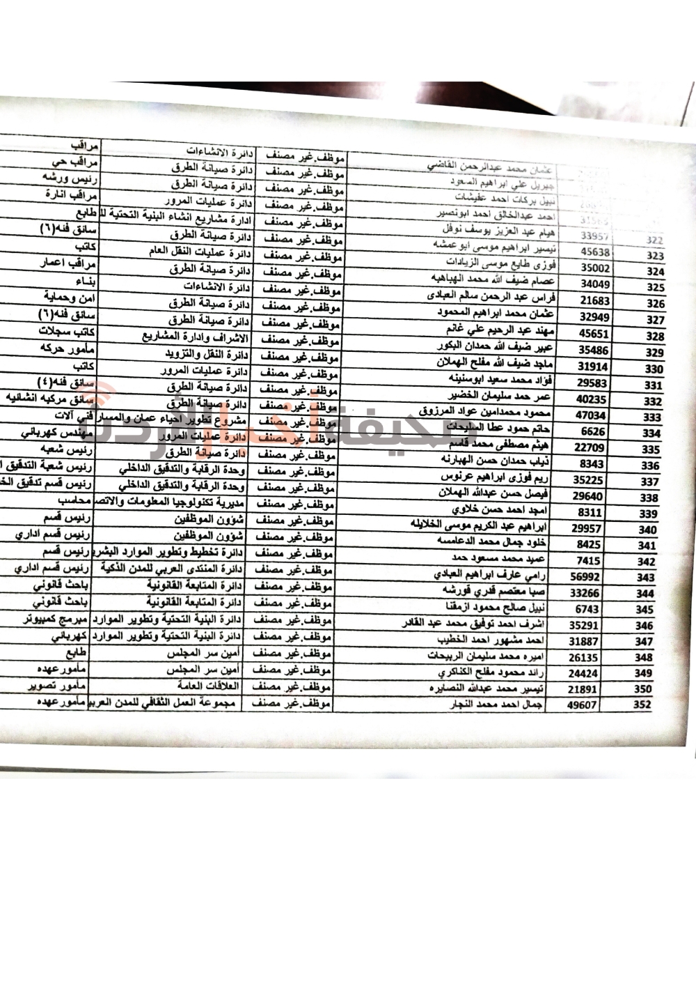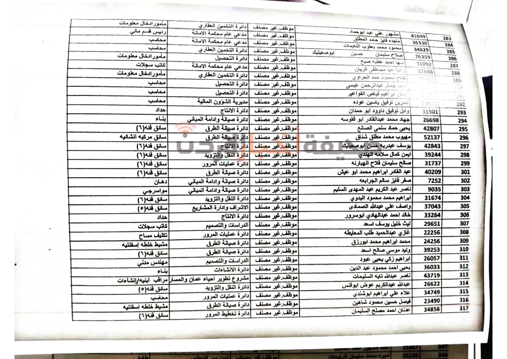 أمانة عمّان... إنهاء خدمات موظفين غير مصنفين (أسماء)