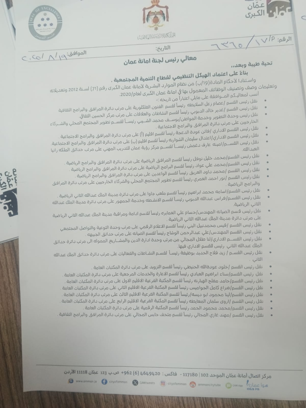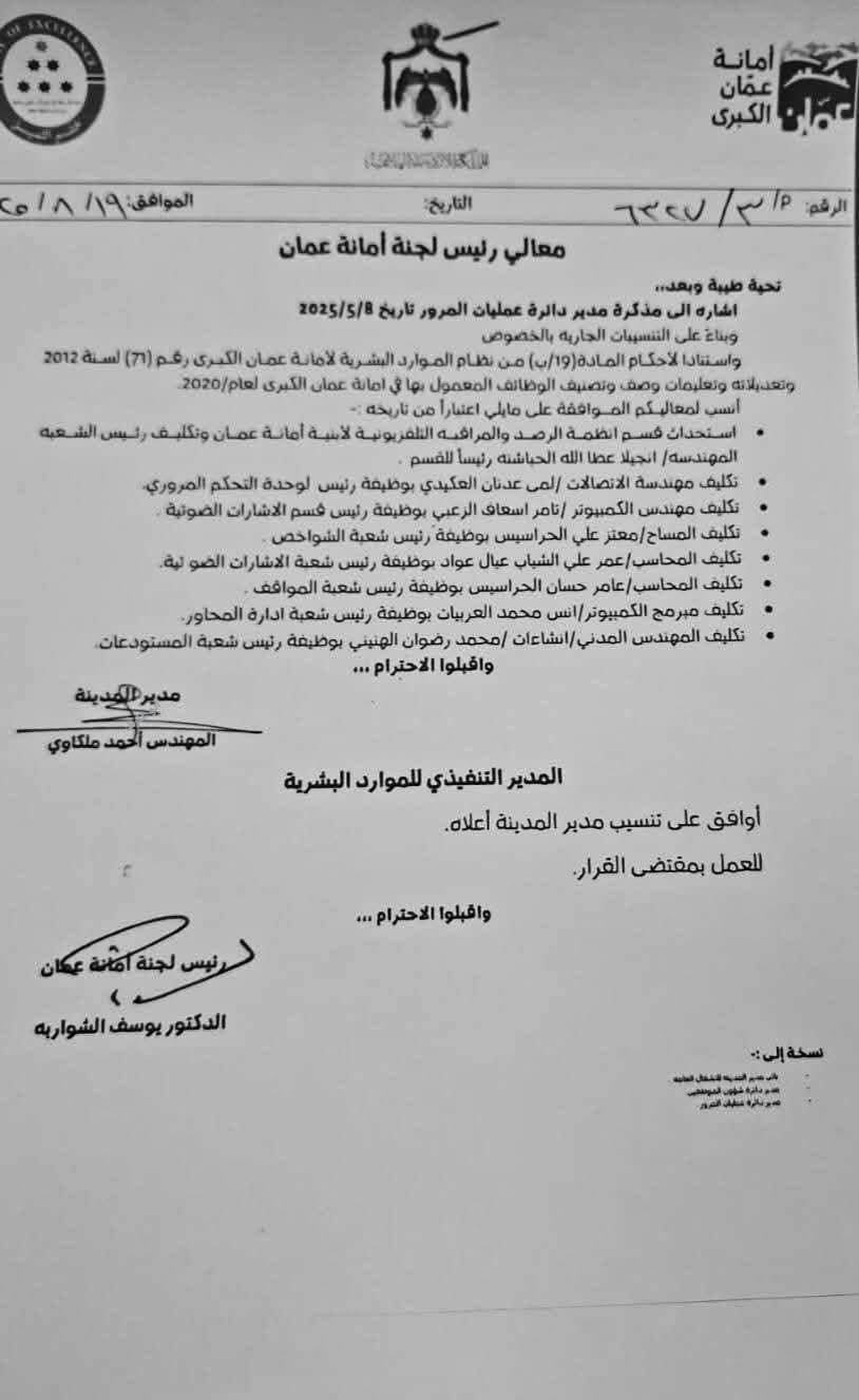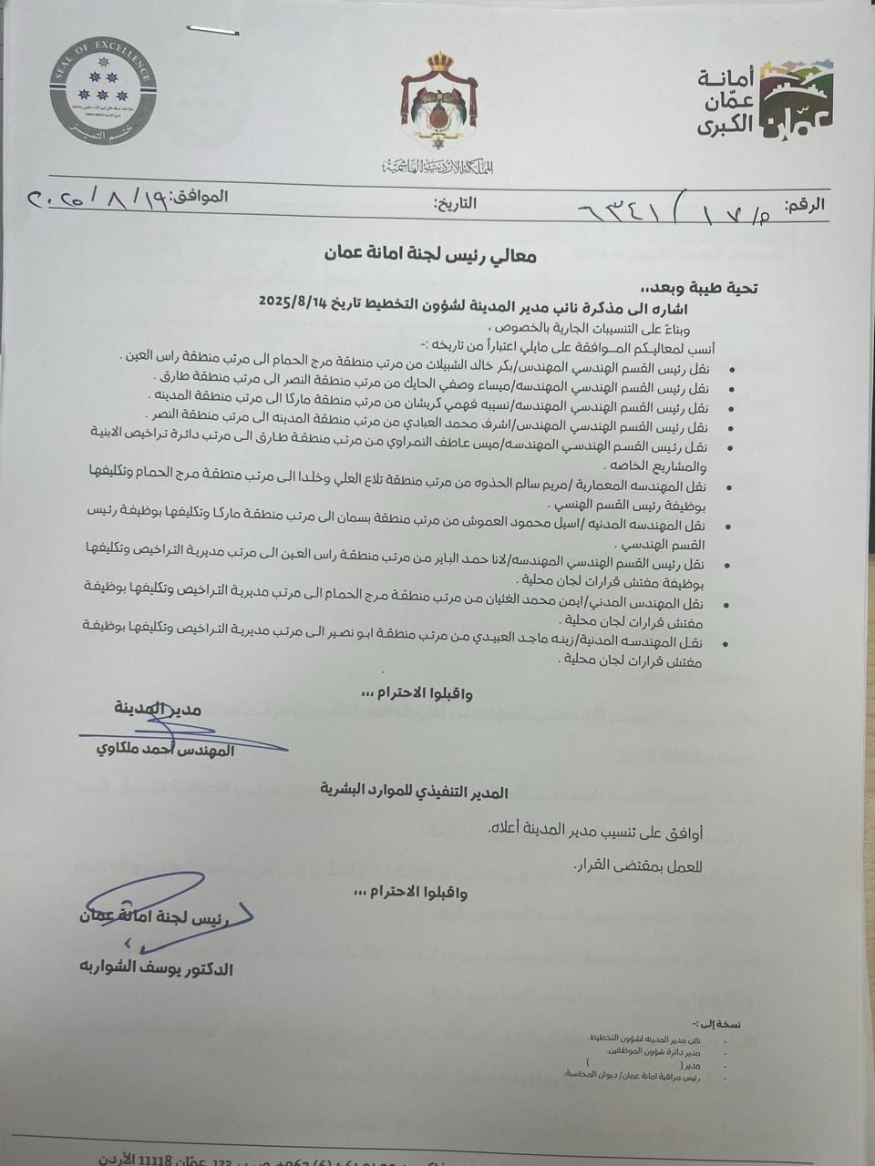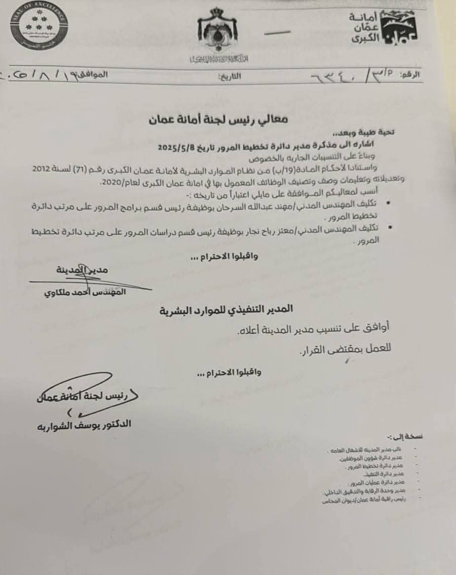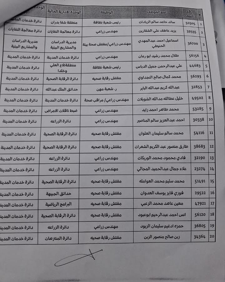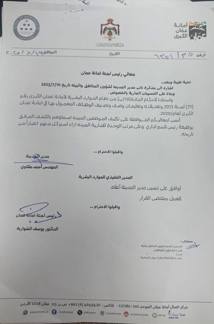 تنقلات واسعة في أمانة عمان الكبرى