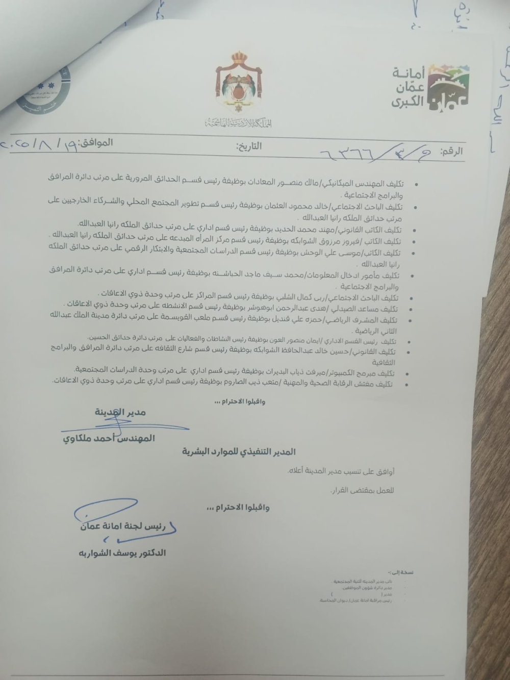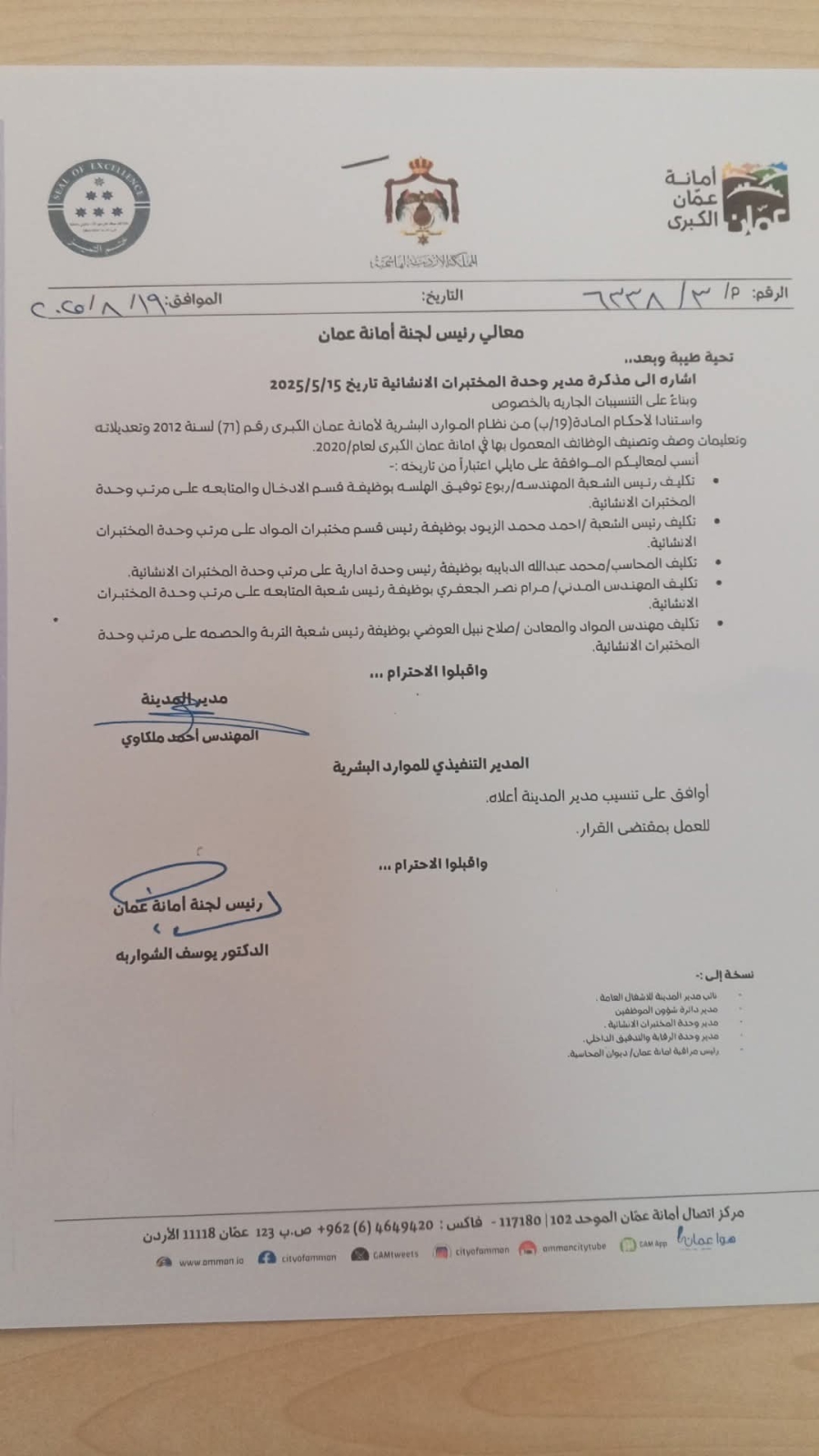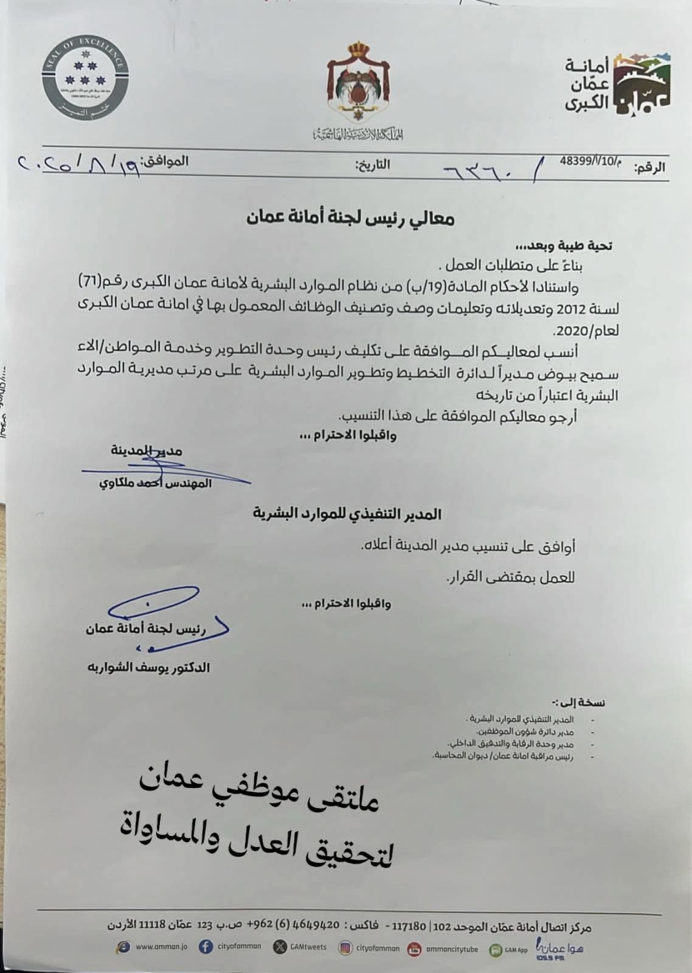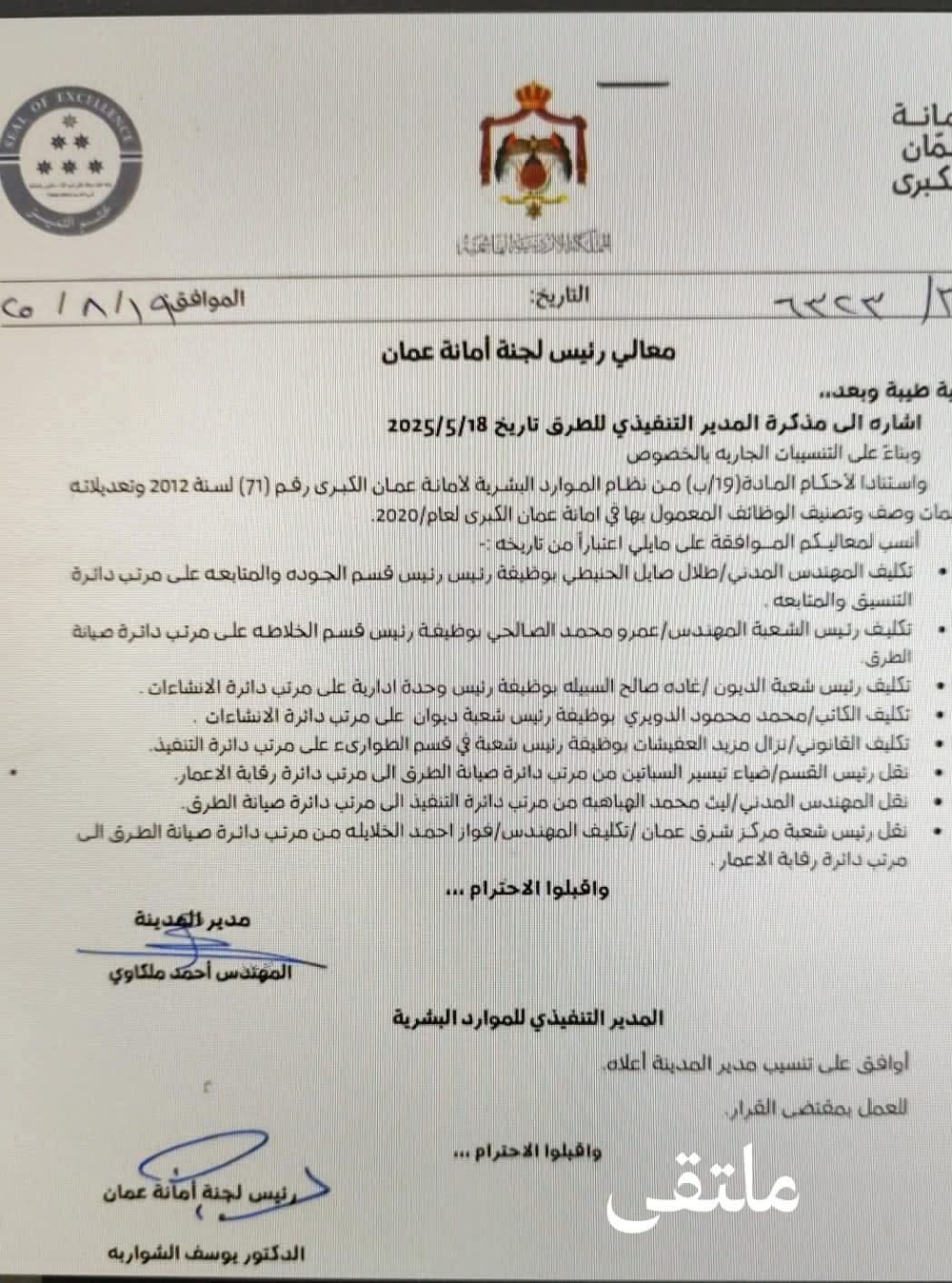 تنقلات واسعة في أمانة عمان الكبرى