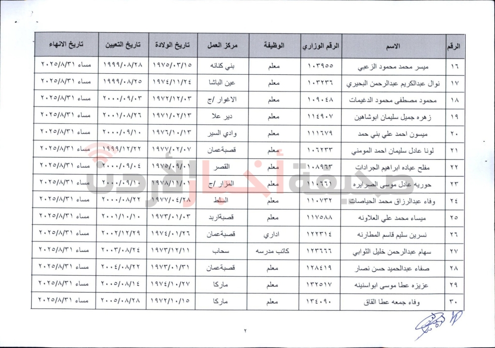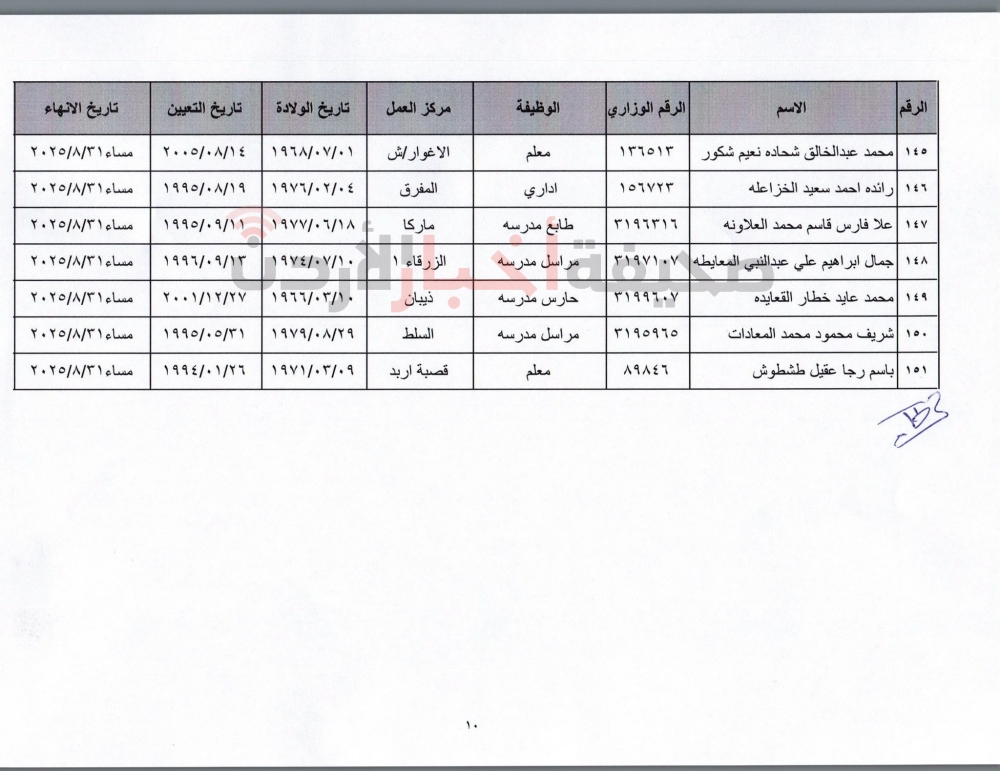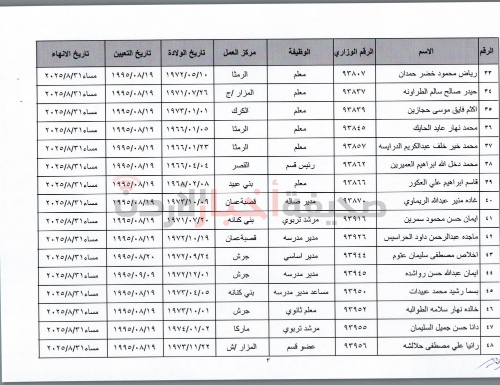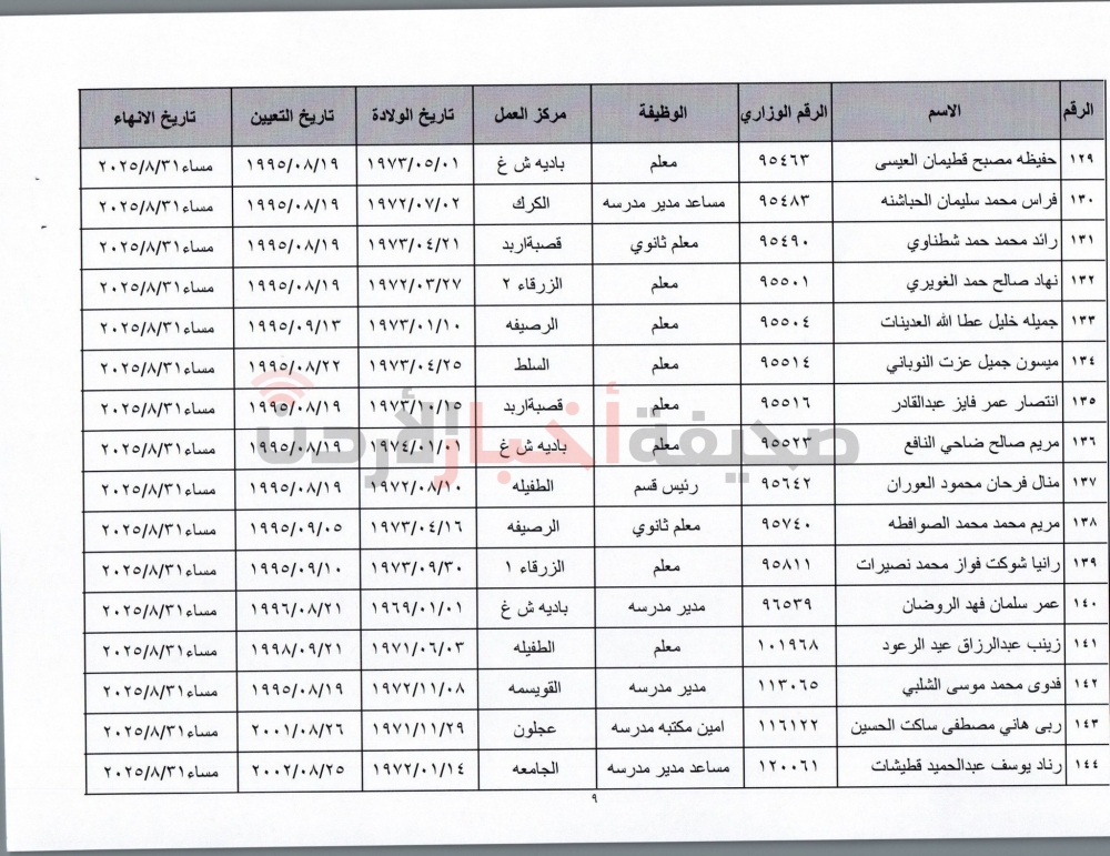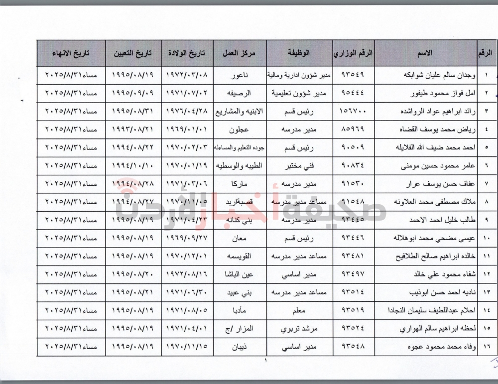 إنهاء خدمات المئات من موظفي التربية (أسماء)