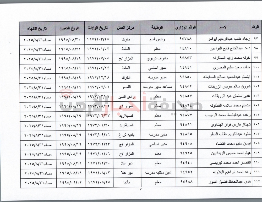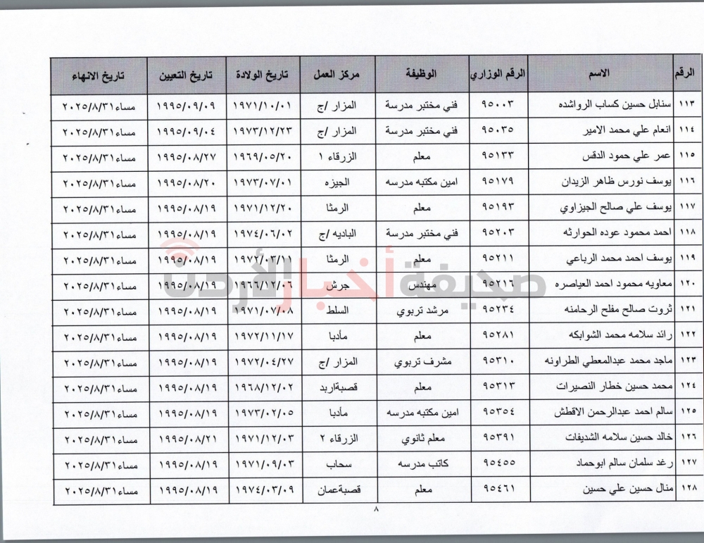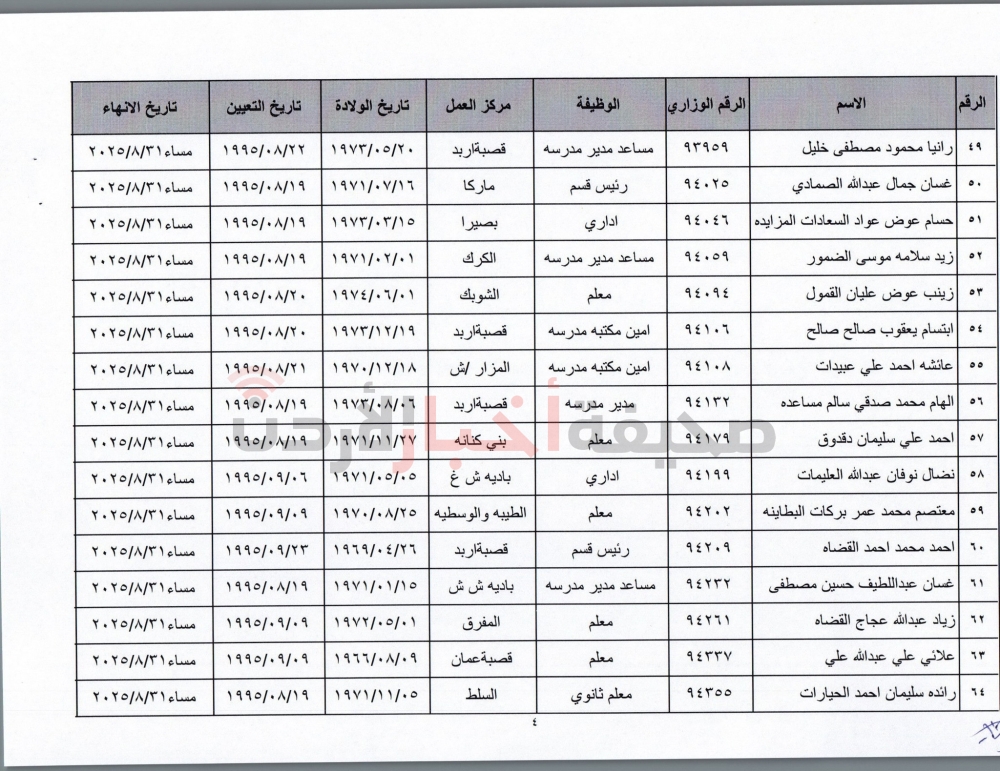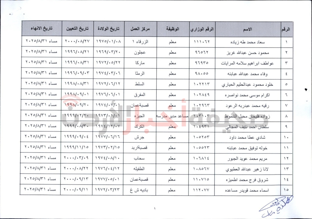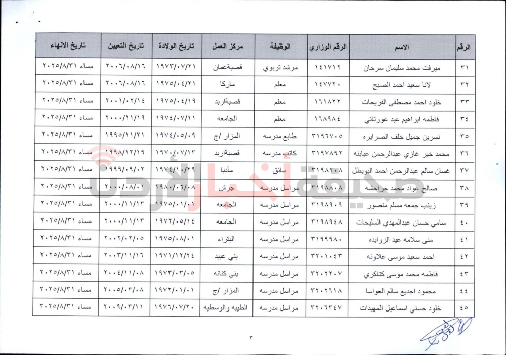 إنهاء خدمات المئات من موظفي التربية (أسماء)