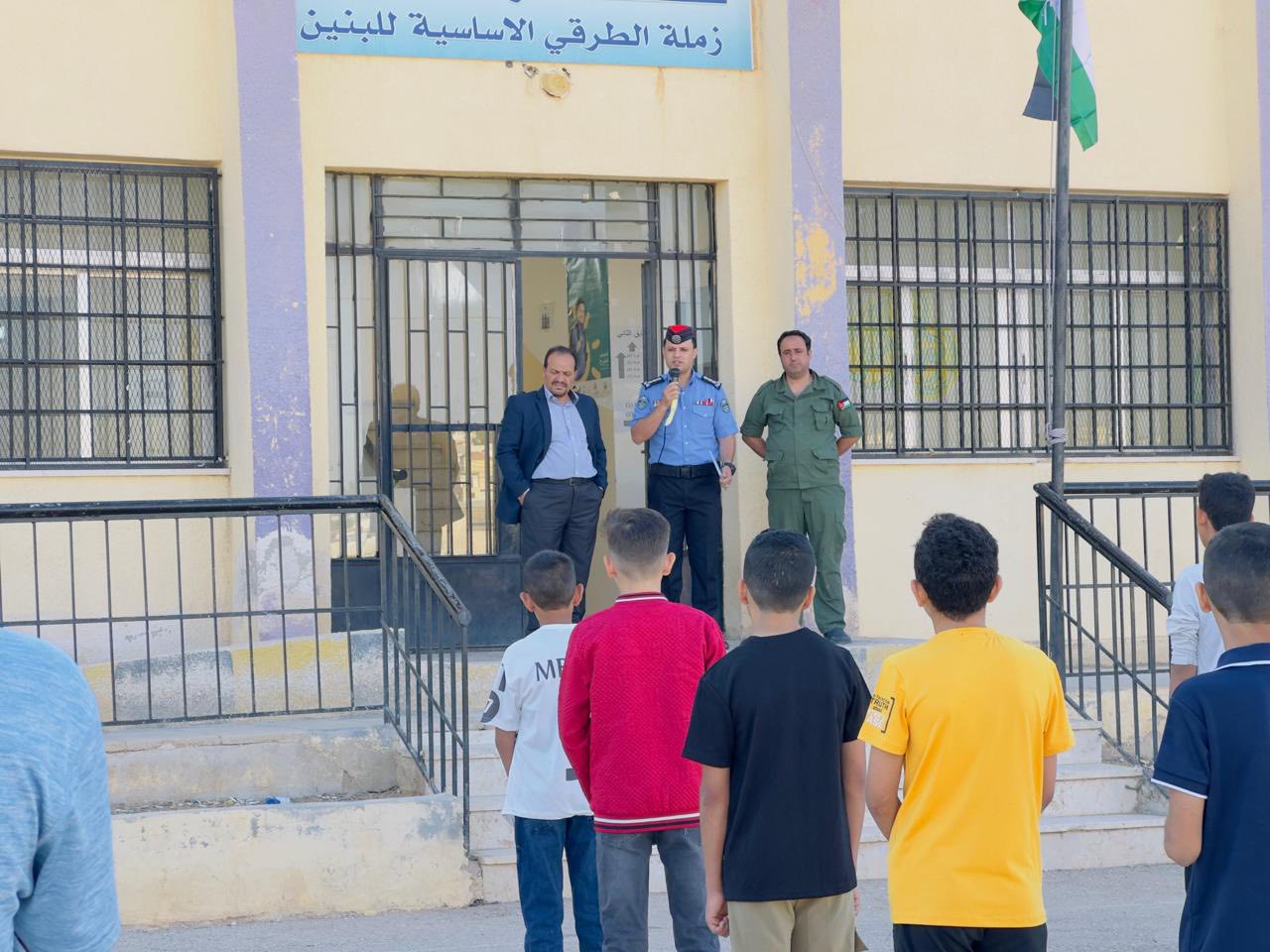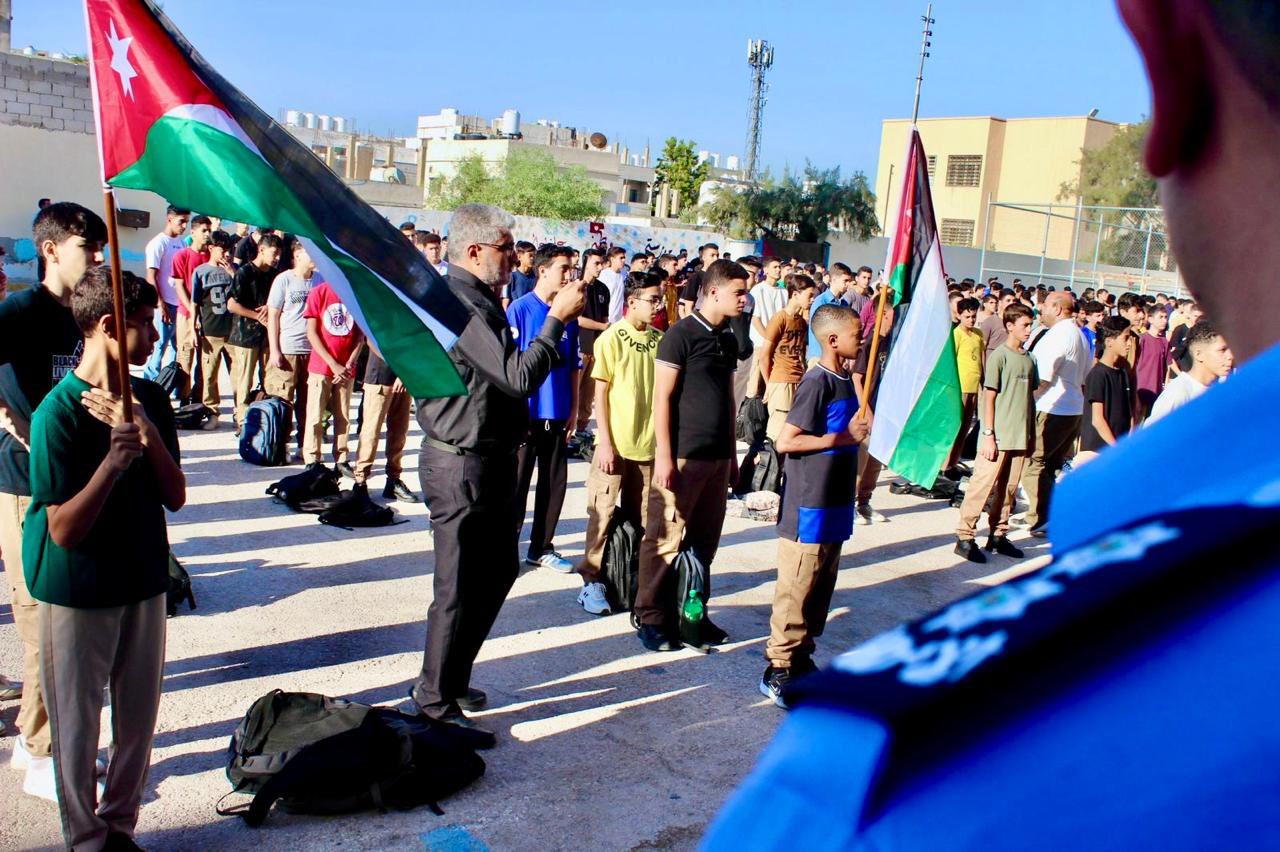 وشهدت الطوابير الصباحية في عدد كبير من مدارس المملكة حضور فرق ميدانية من مديريات الشرطة، والإدارات المرورية، والدفاع المدني، وبتنسيق من مديرية الإعلام والشرطة المجتمعية، والتي استقبلت الطلاب في المدارس لتقف جنباً إلى جنب مع الهيئات الإدارية والتدريسية، في تنفيذ فعاليات توعوية مباشرة مع الطلبة.