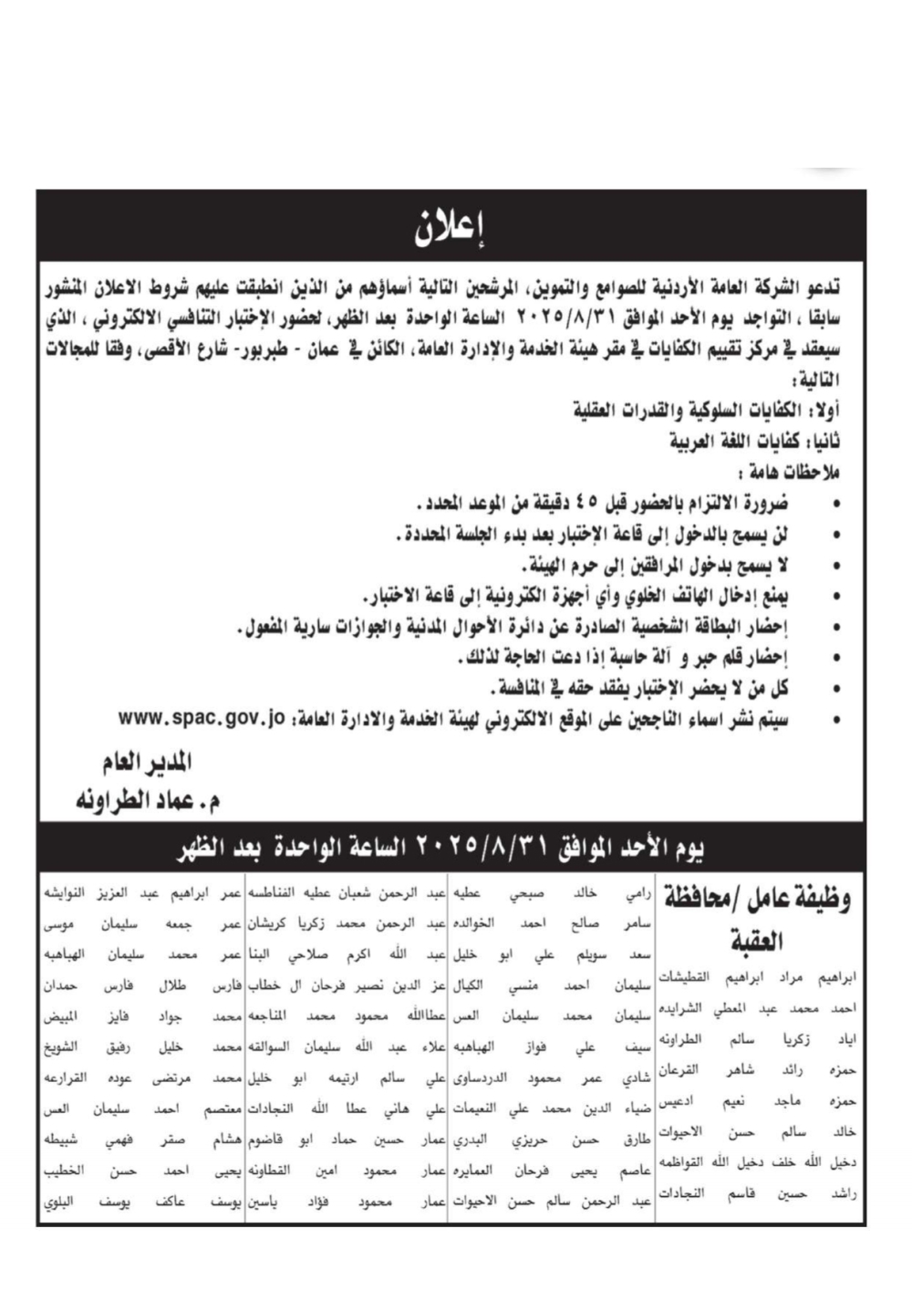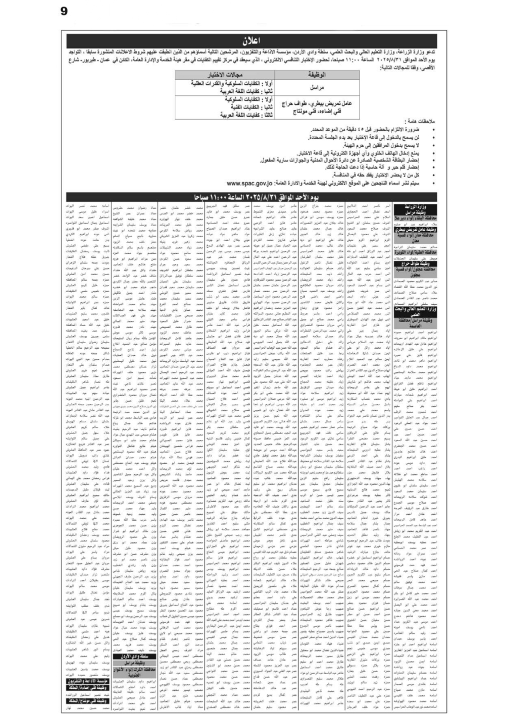 دعت جهات حكومية آلاف الأردنيين الذين انطبقت عليهم شروط التعيين في وظائف سبق الإعلان عنها، للتقدم إلى الامتحان التنافسي الإلكتروني الذي سيُعقد في مركز تقييم الكفايات التابع لهيئة الخدمة والإدارة العامة، وذلك ضمن إجراءات التوظيف.