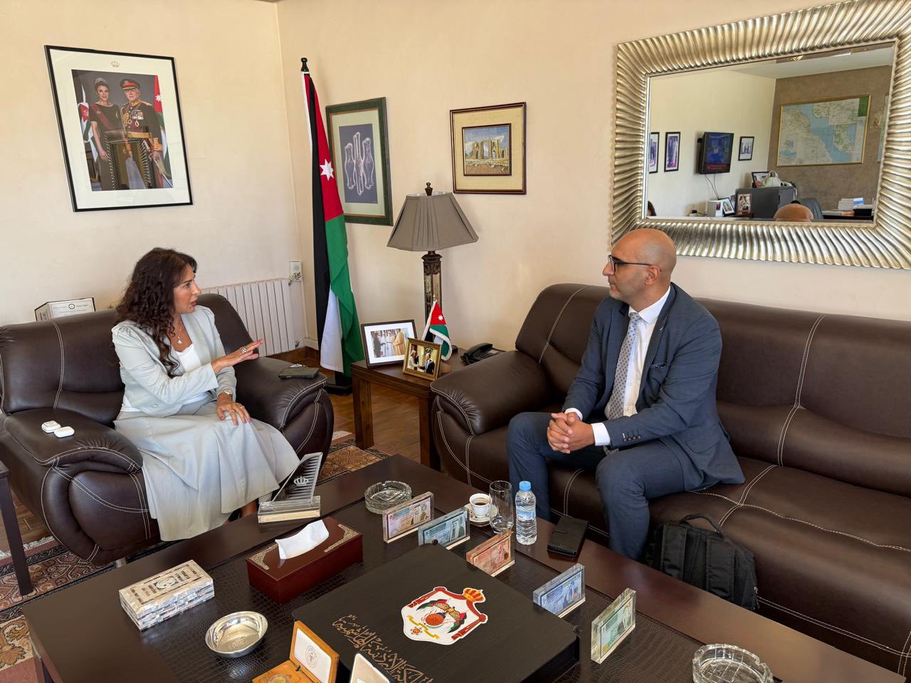 وخلال اللقاء، أكدت السفيرة غنيمات أن إعادة تشغيل هذا الخط الجوي تمثل خطوة استراتيجية تسهم في تعزيز الروابط بين البلدين الشقيقين، ليس فقط على صعيد تسهيل حركة المسافرين بين العاصمتين، وإنما أيضاً في دفع عجلة التعاون الاقتصادي والاستثماري، وتوسيع آفاق التبادل السياحي والثقافي. وأشارت إلى أن السفارة تضع ضمن أولوياتها دعم الجهود الهادفة إلى الترويج للأردن كوجهة سياحية متكاملة، سواء من حيث السياحة العلاجية أو الدينية أو التاريخية، بما يسهم في جذب المزيد من الزوار إلى المملكة.