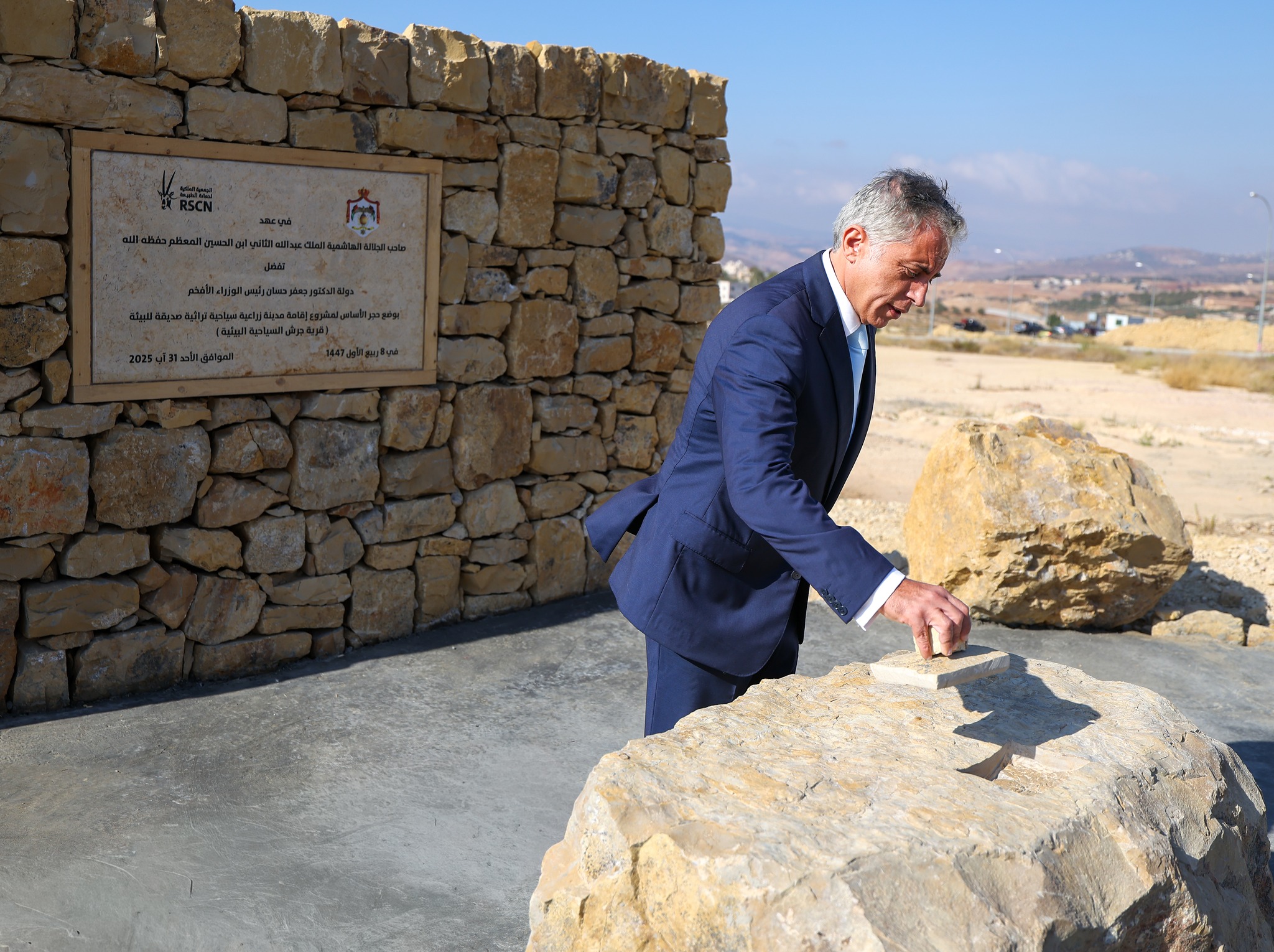 ووضع رئيس الوزراء، الأحد، حجر الأساس لمشروع قرية جرش السياحية البيئية التي كان قد وجه للبدء بتنفيذها في شهر تشرين الثاني من العام الماضي بديلاً عن المدينة الصناعية.