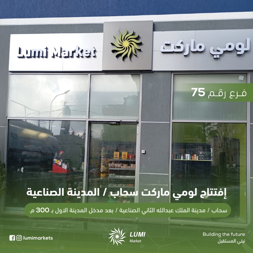 افتتحت الشركة الاردنية الحديثة لتجارة المواد التمونية - لومي ماركت - الفرع رقم 74 في محطة محروقات المناصير سحاب.