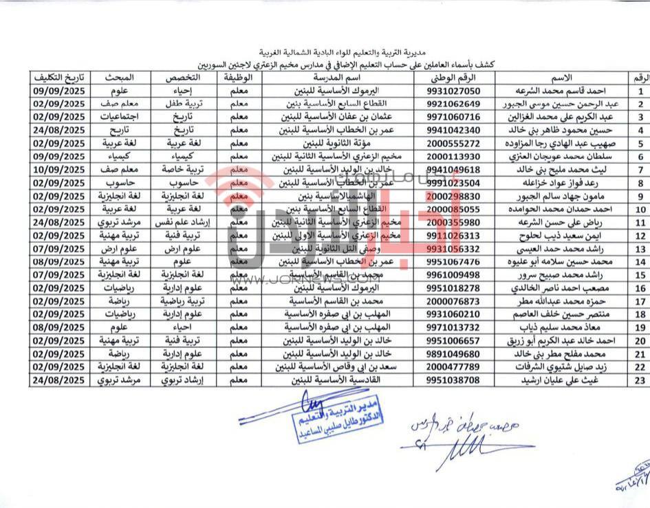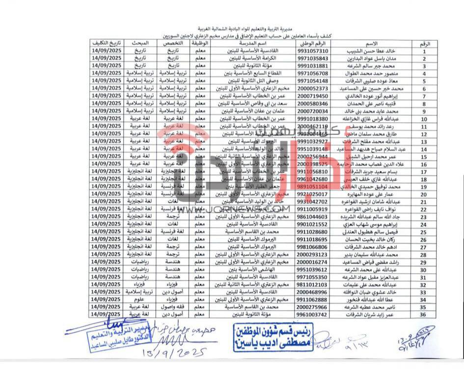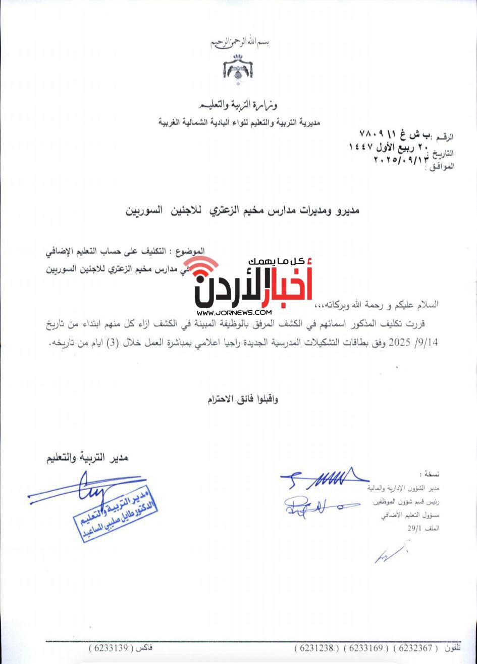كلّف مدير مديرية التربية والتعليم للواء البادية الشمالية الغربية، عشرات المعلمين للعمل في مدارس مخيم الزعتري للاجئين السوريين على حساب التعليم الإضافي.