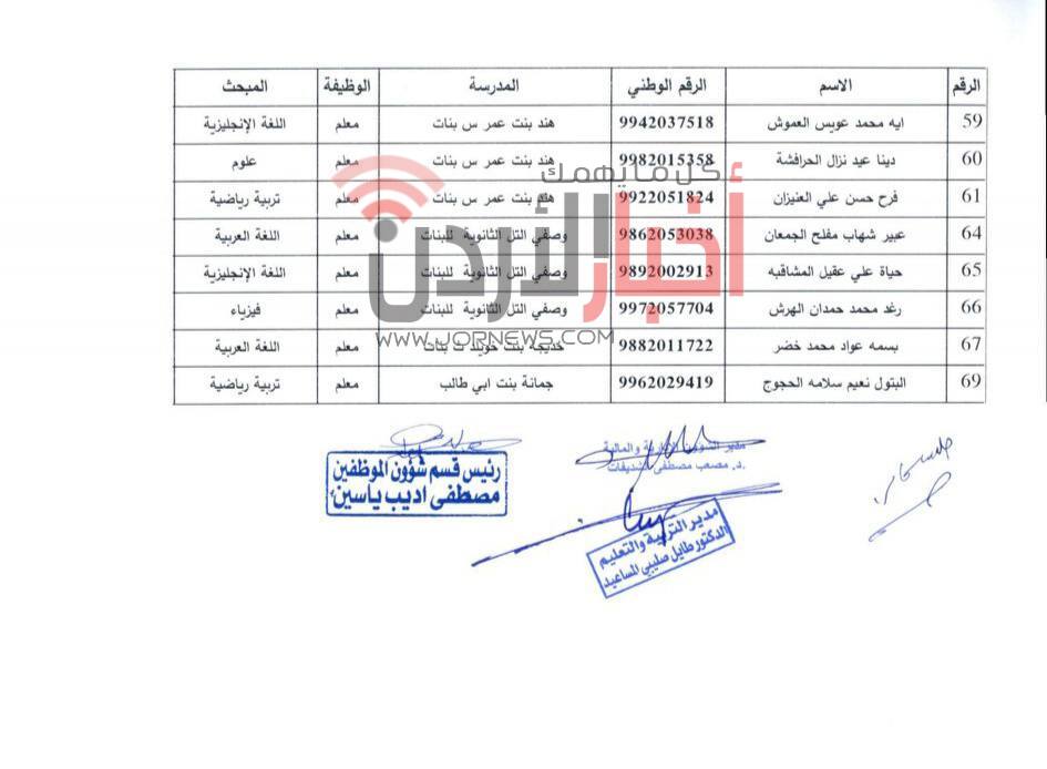 وتاليا التفاصيل والأسماء: