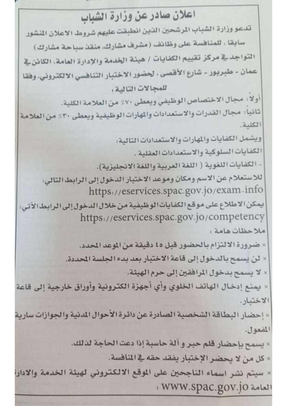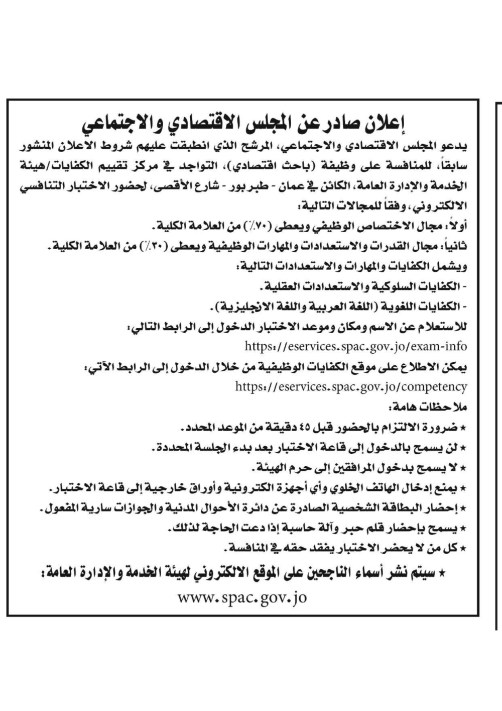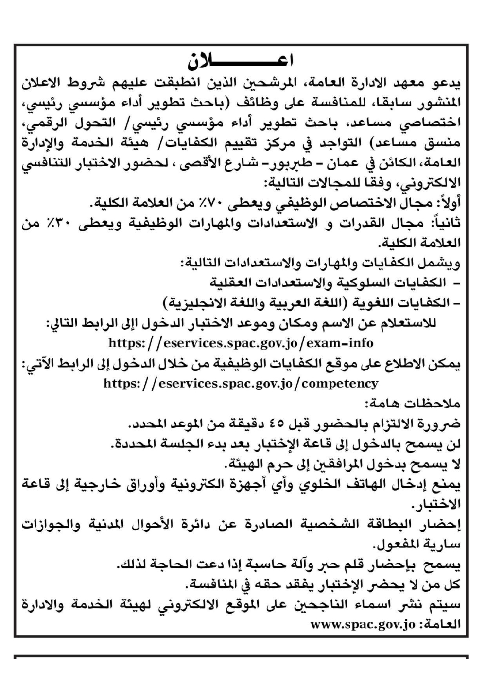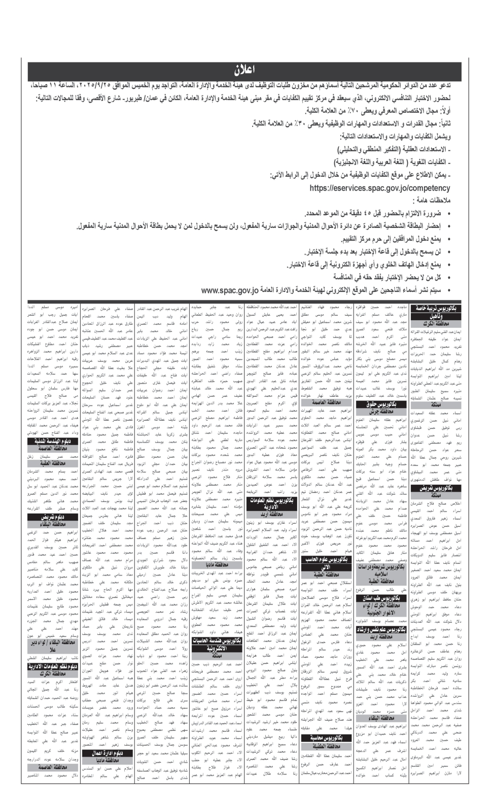 دعوة آلاف الأردنيين للاختبار التنافسي (أسماء)