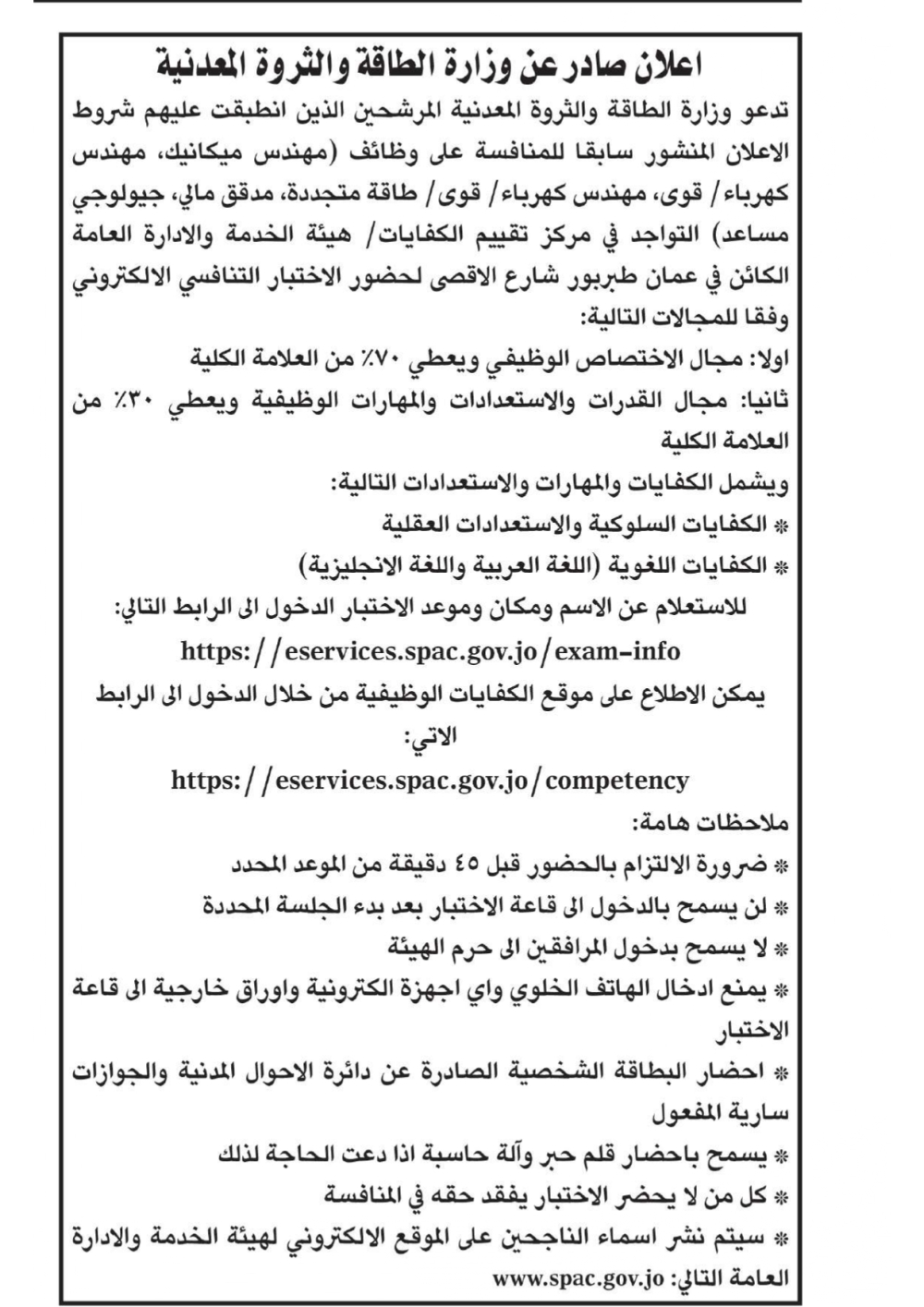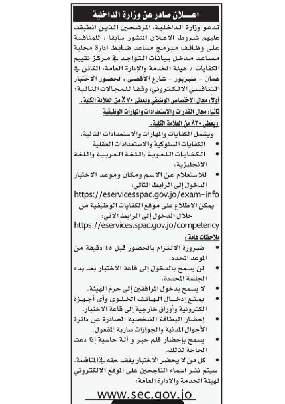 دعت عدد من الدوائر الحكومية، اليوم الخميس، المرشحين المدرجة أسماؤهم في القوائم الرسمية، لحضور الاختبار التنافسي الإلكتروني، وفق التفاصيل التالية: