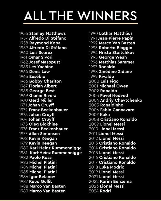 وتاليا قائمة الفائزين بالكرة الذهبية: