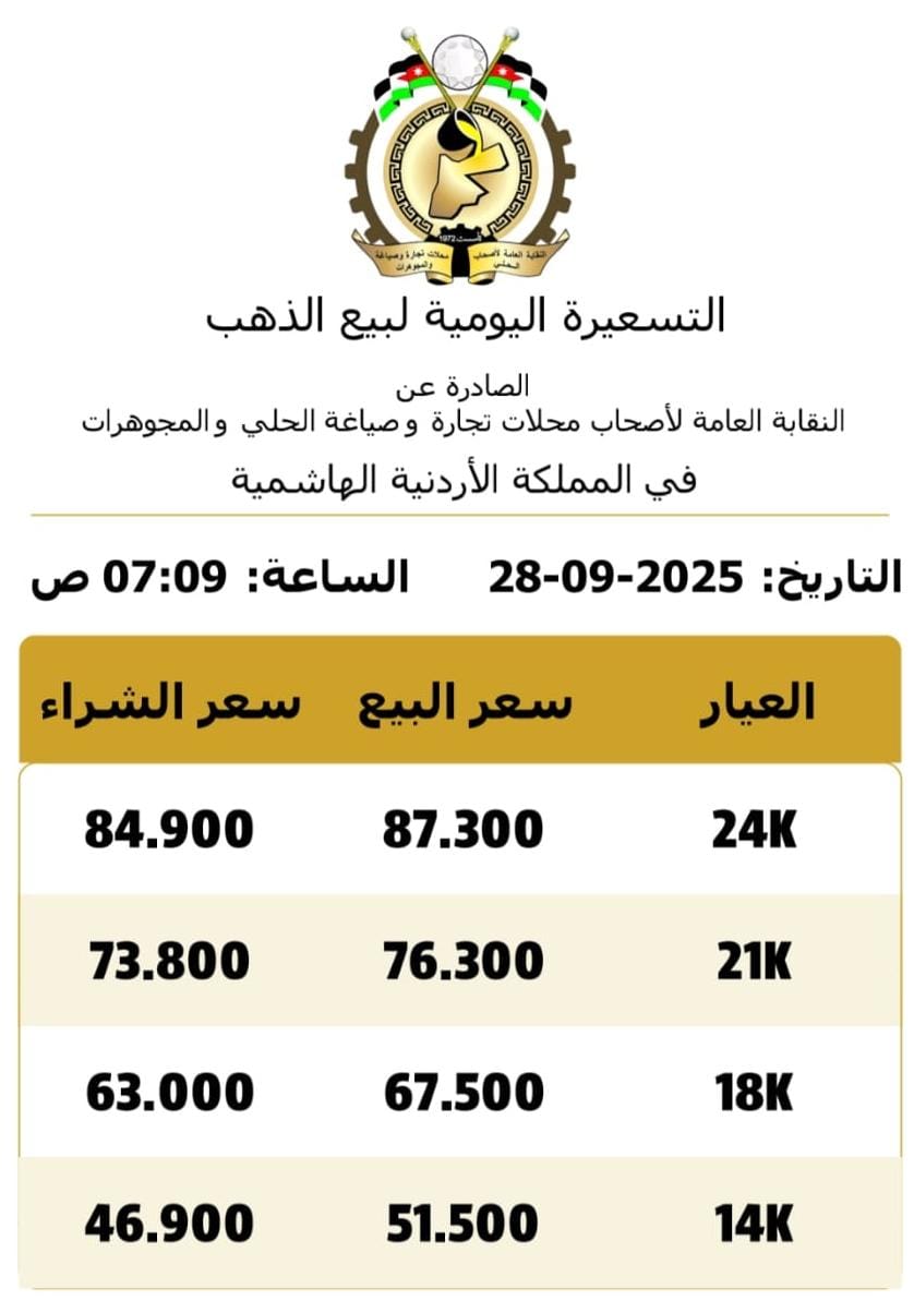 ووفقًا للنشرة اليومية الصادرة عن النقابة العامة لأصحاب محالّ تجارة وصياغة الحلي والمجوهرات، سجلت أسعار بيع الغرام الواحد من الذهب في باقي العيارات ما يلي: