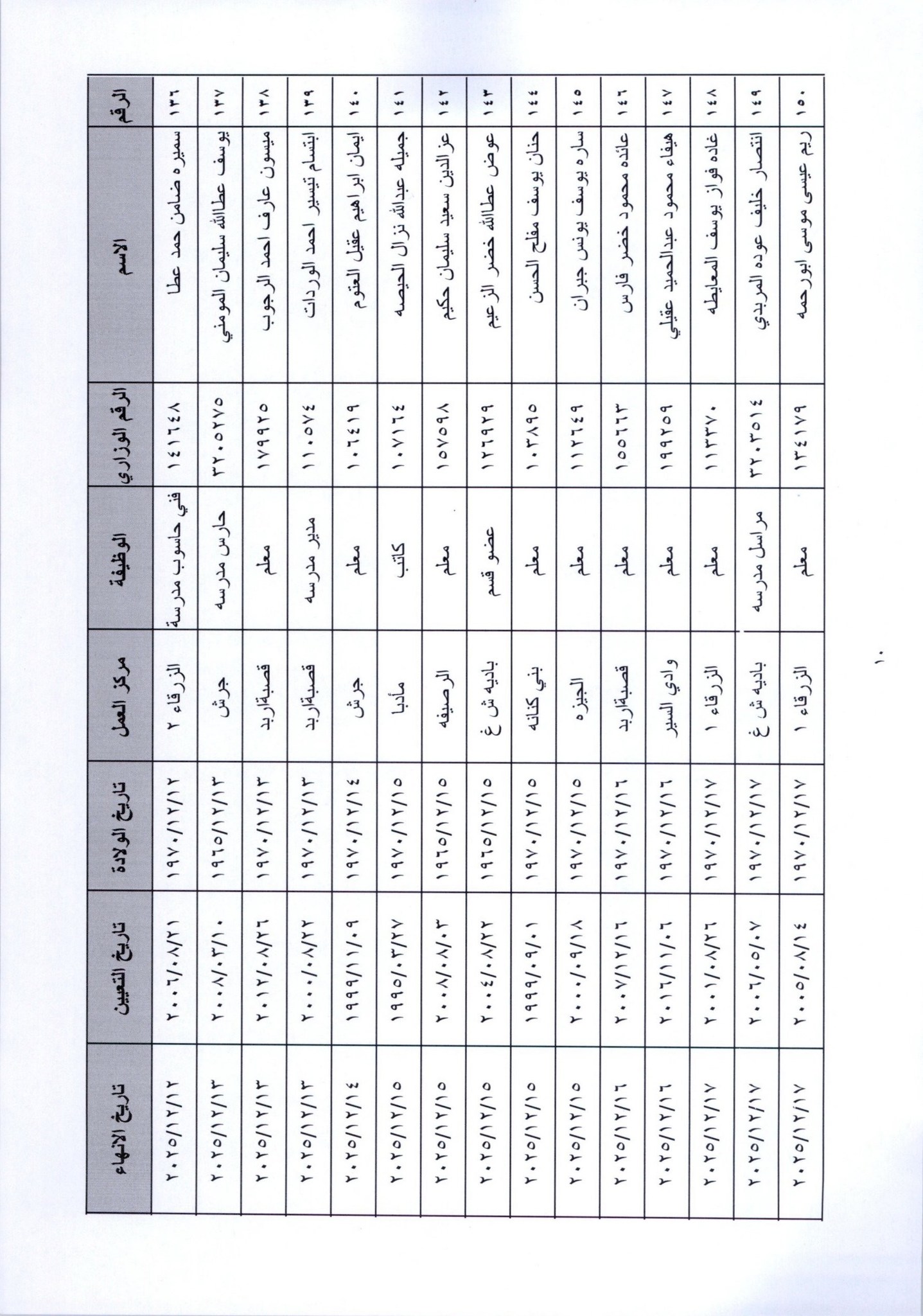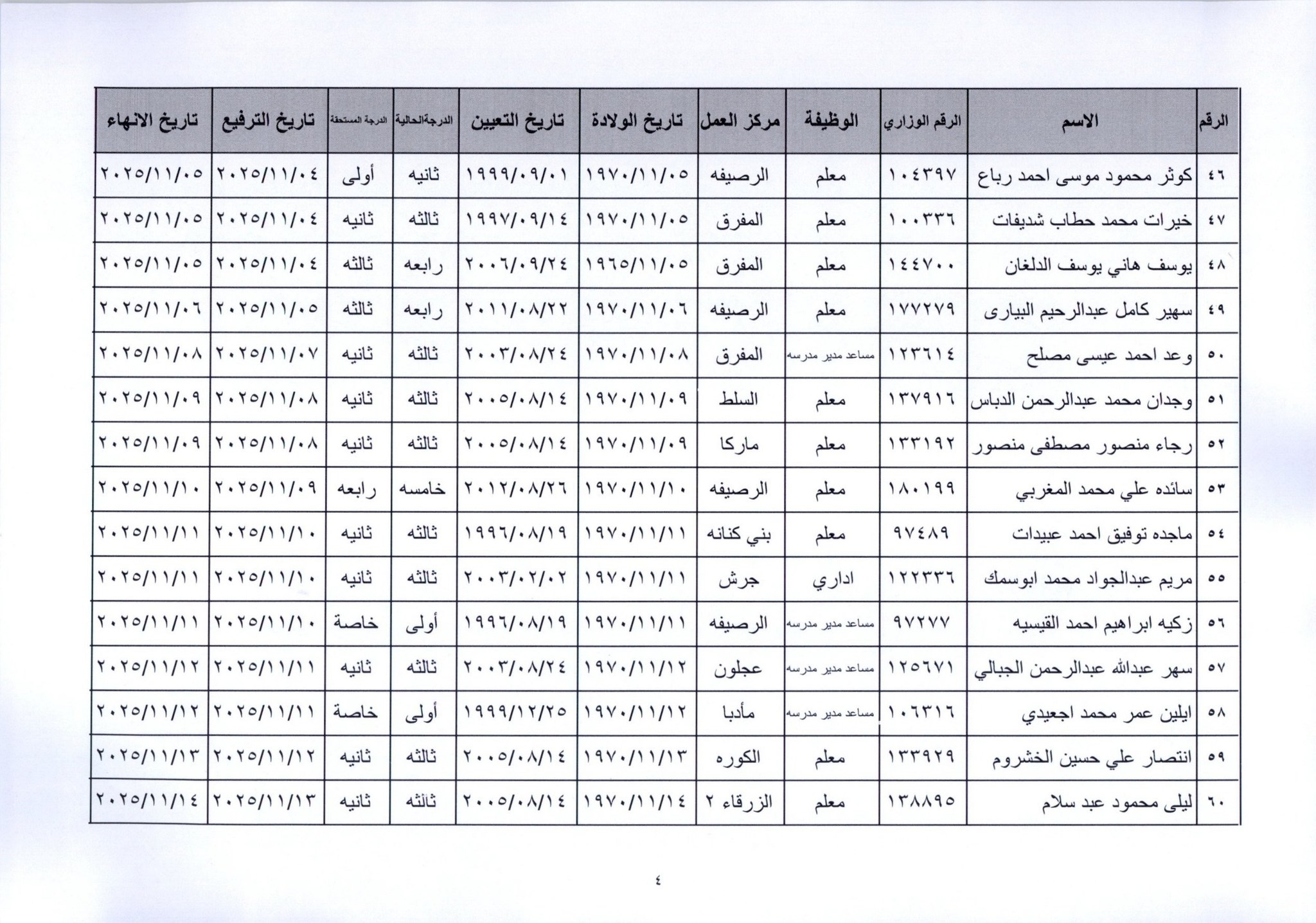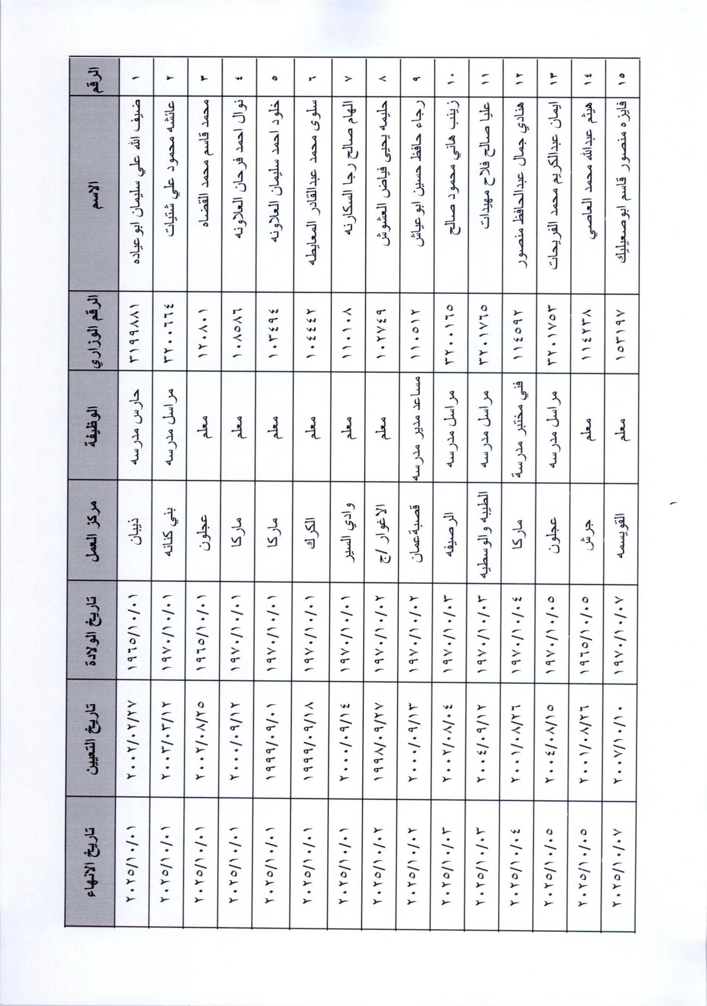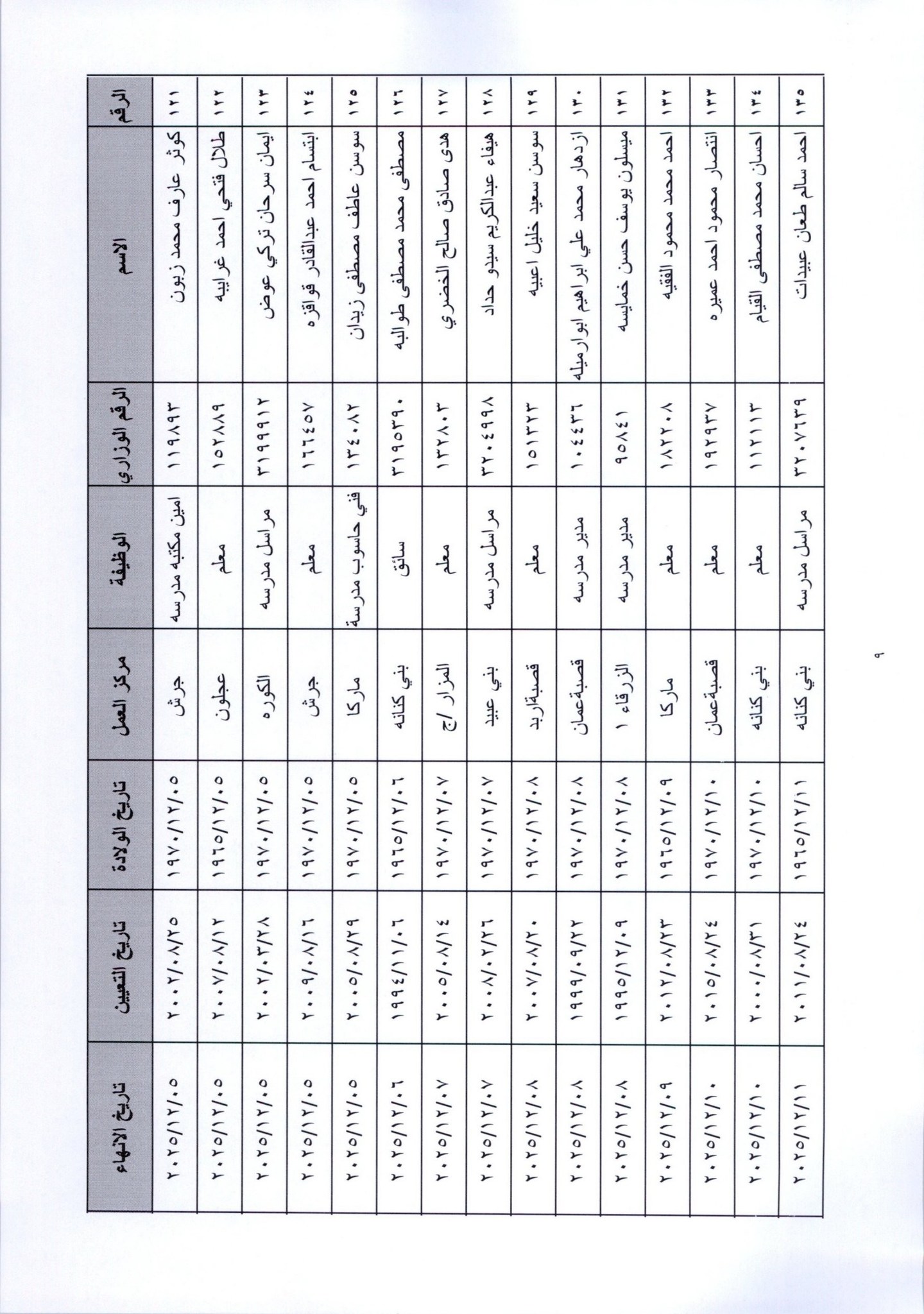 قرر وزير التربية والتعليم، إنهاء خدمات المئات من موظفي الوزارة لبلوغهم السن القانونية، اعتبارا من التاريخ المبين إزاء اسم كل منهم.