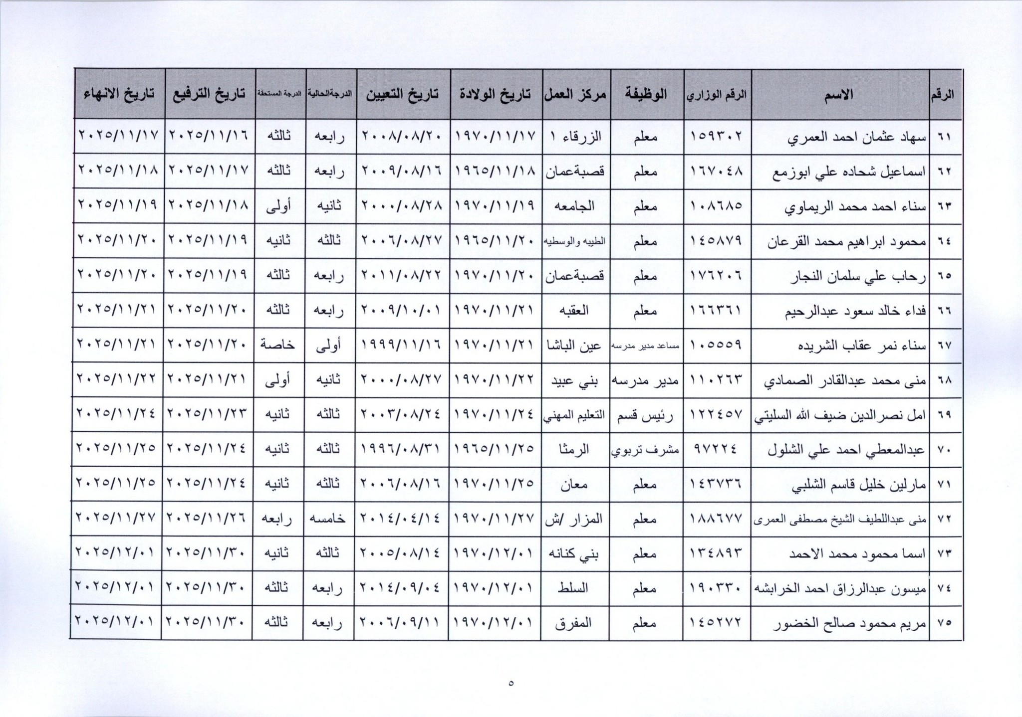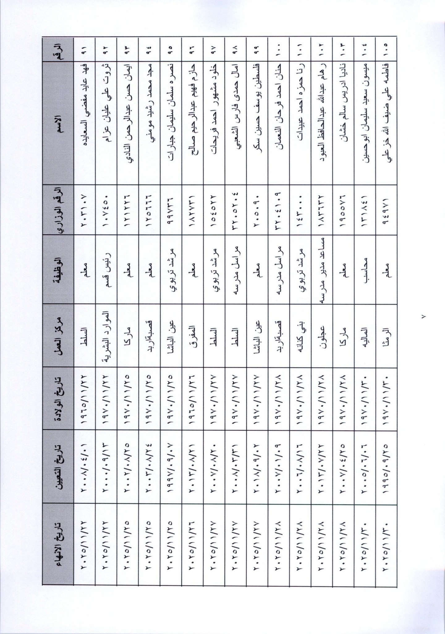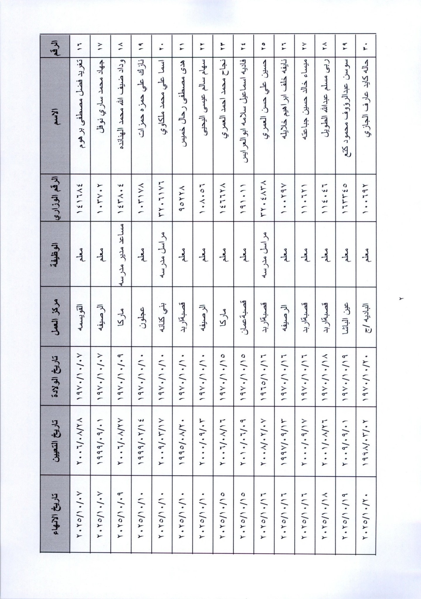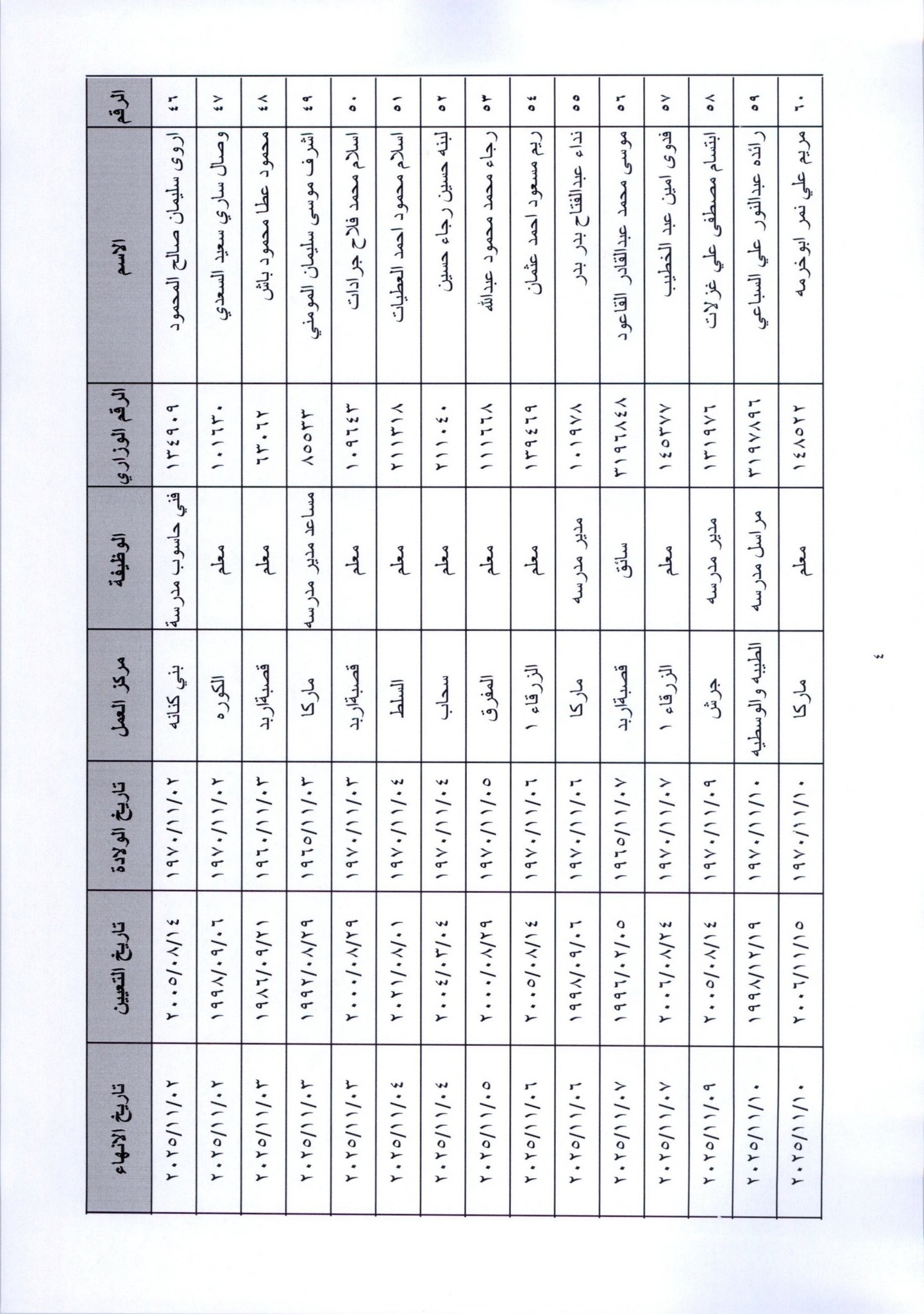 قرر وزير التربية والتعليم، إنهاء خدمات المئات من موظفي الوزارة لبلوغهم السن القانونية، اعتبارا من التاريخ المبين إزاء اسم كل منهم.