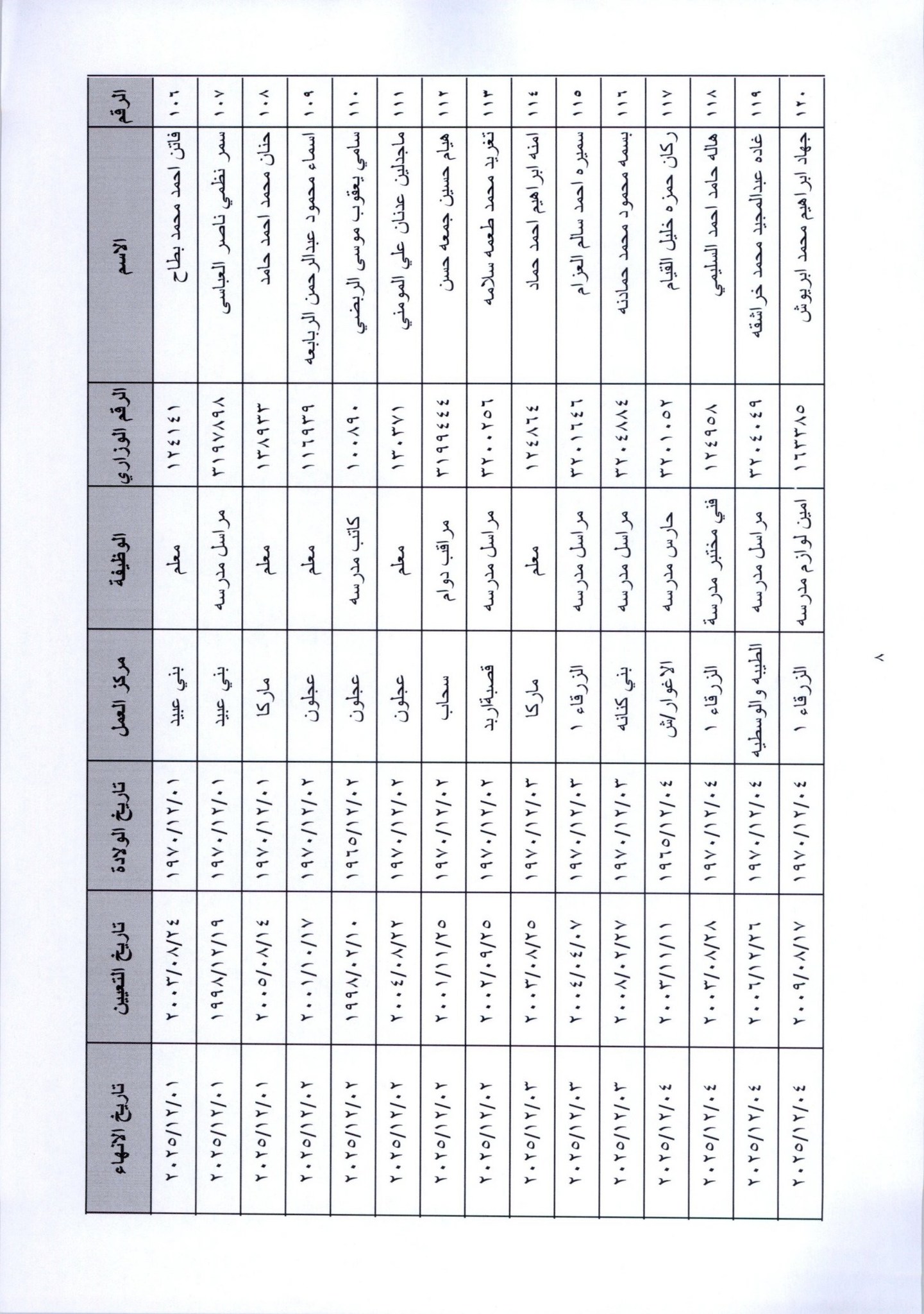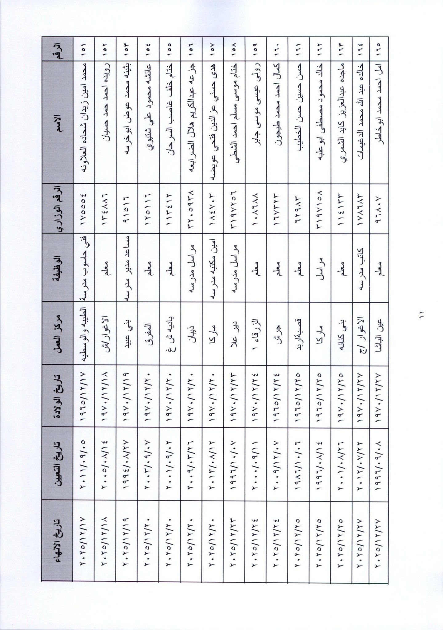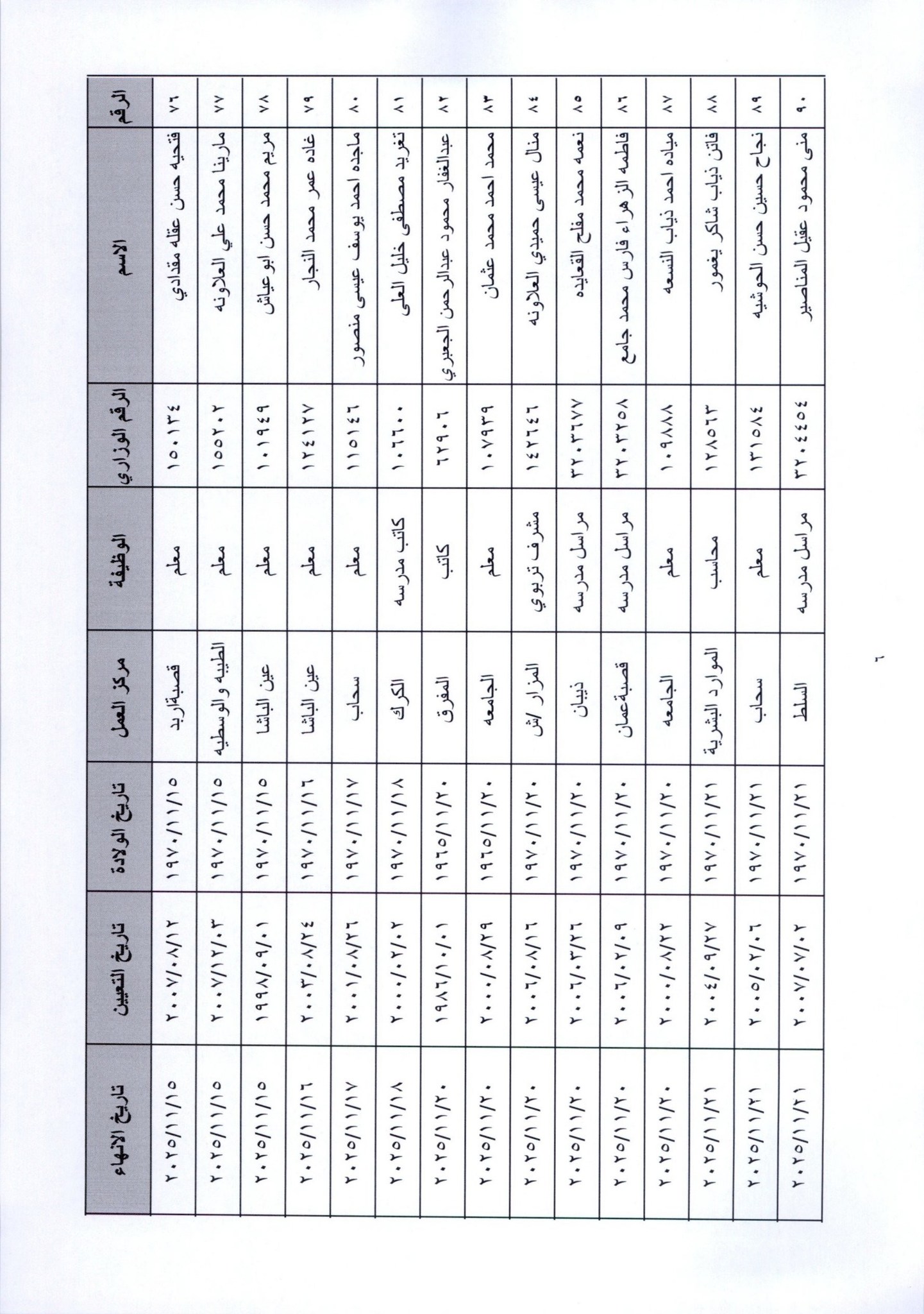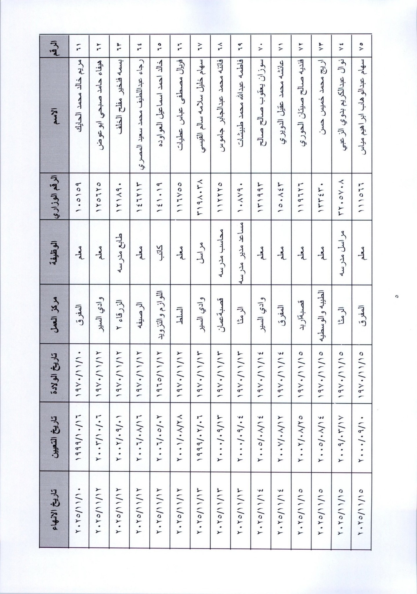 قرر وزير التربية والتعليم، إنهاء خدمات المئات من موظفي الوزارة لبلوغهم السن القانونية، اعتبارا من التاريخ المبين إزاء اسم كل منهم.