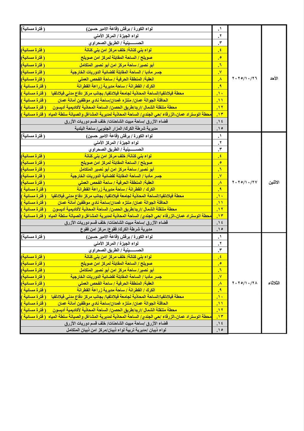 9- محطة اتوستراد عمان-الزرقاء /حي الجندي/ الساحة المحاذية لمديرية المشاغل والصيانة سلطة المياه.