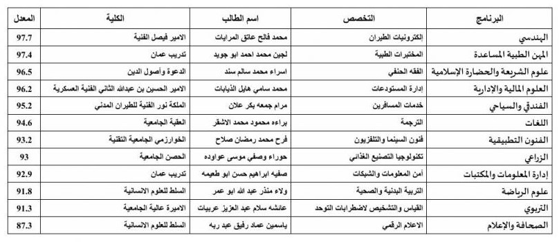 وتاليا أسماء الطلبة الأوائل في الامتحان: