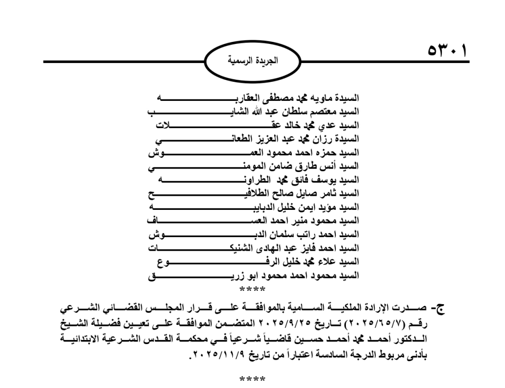 إرادات ملكية بالمعايطة وغيث وحسين و39 قاضيا (أسماء)