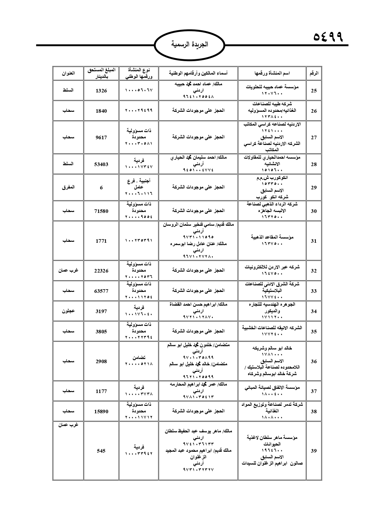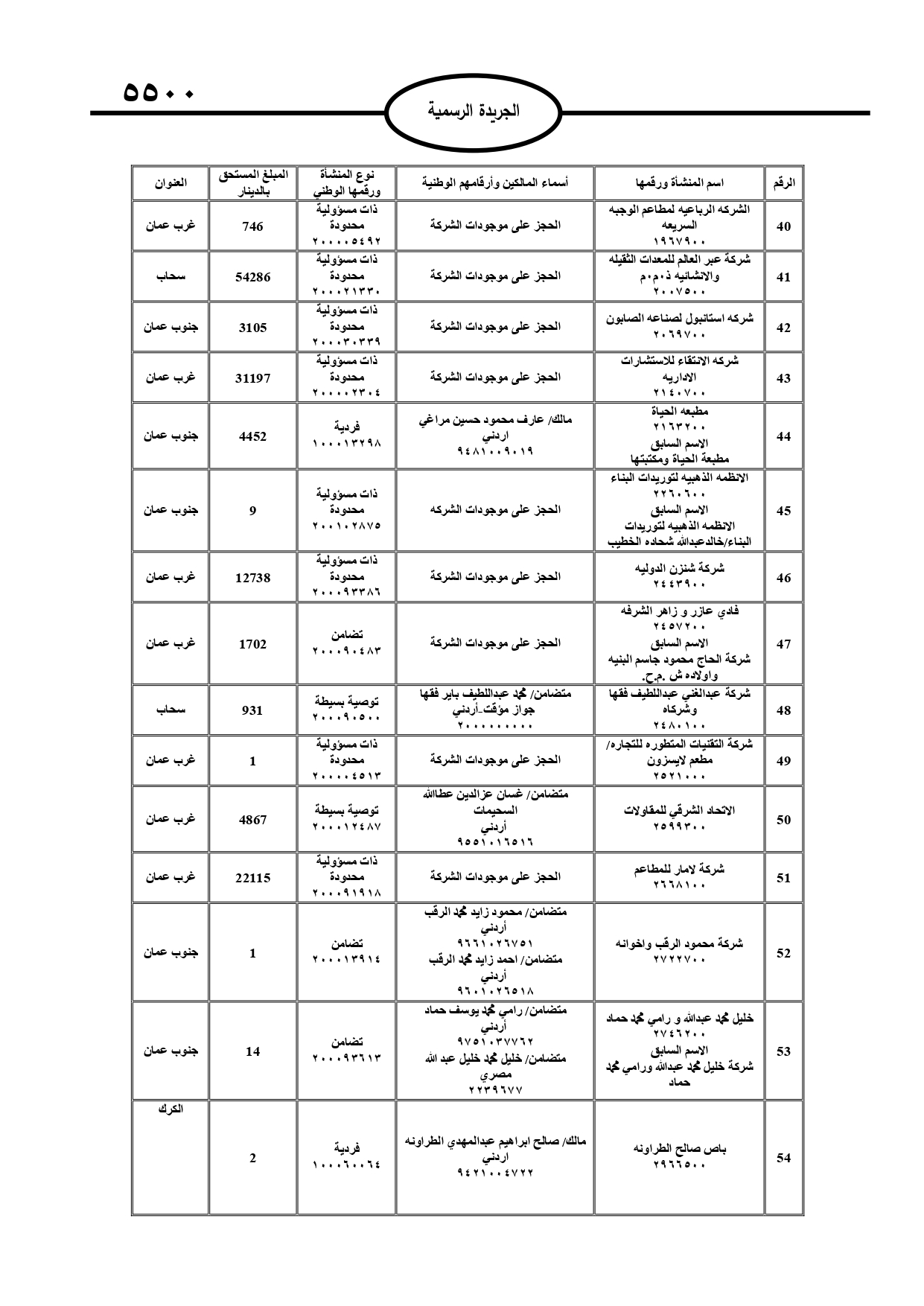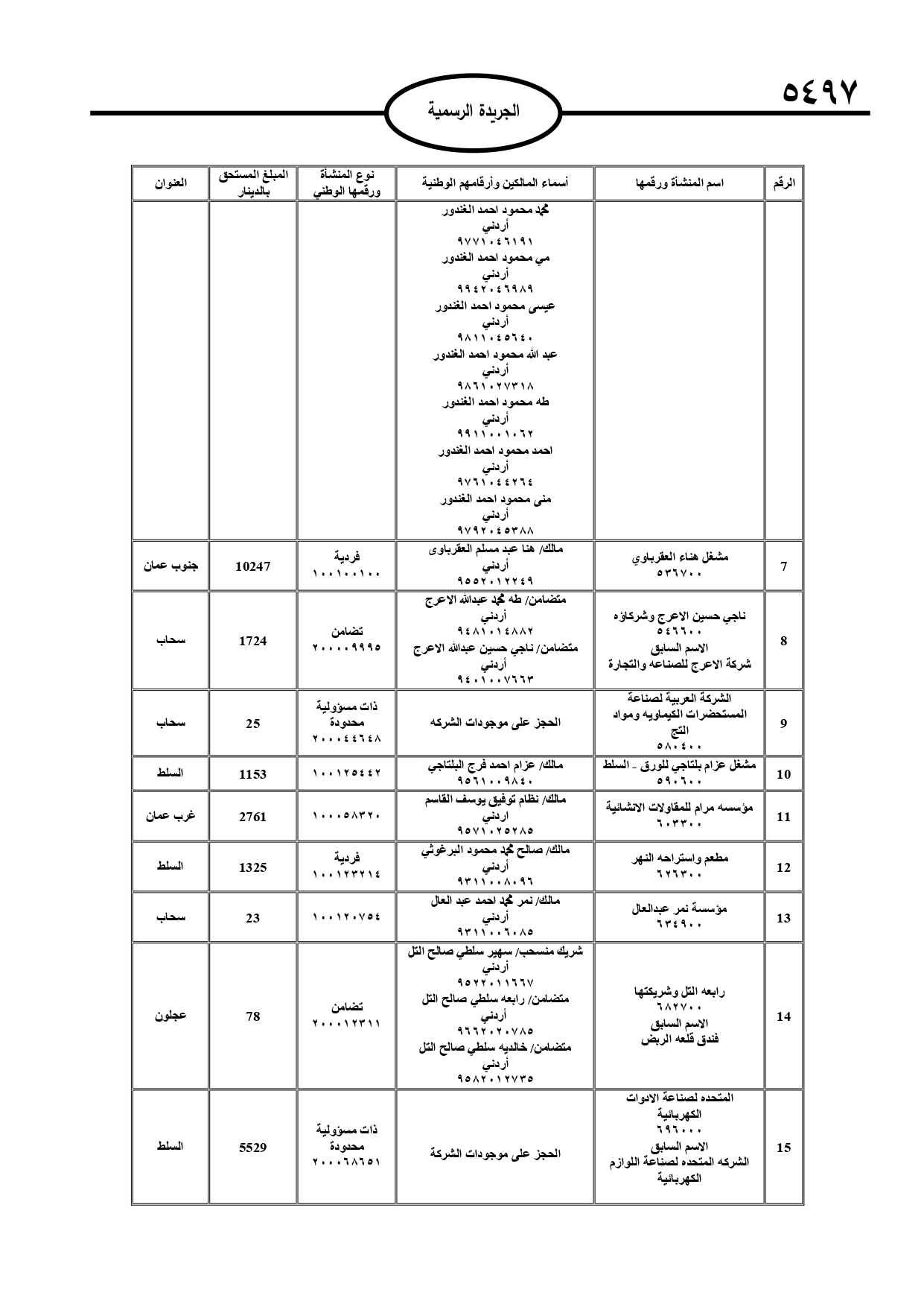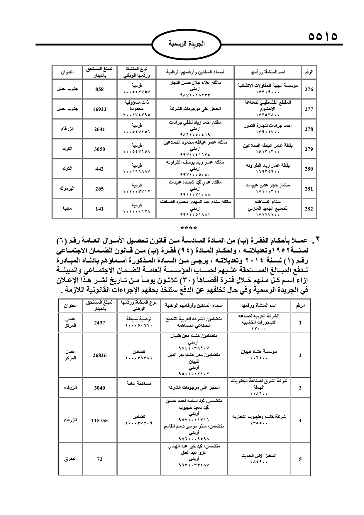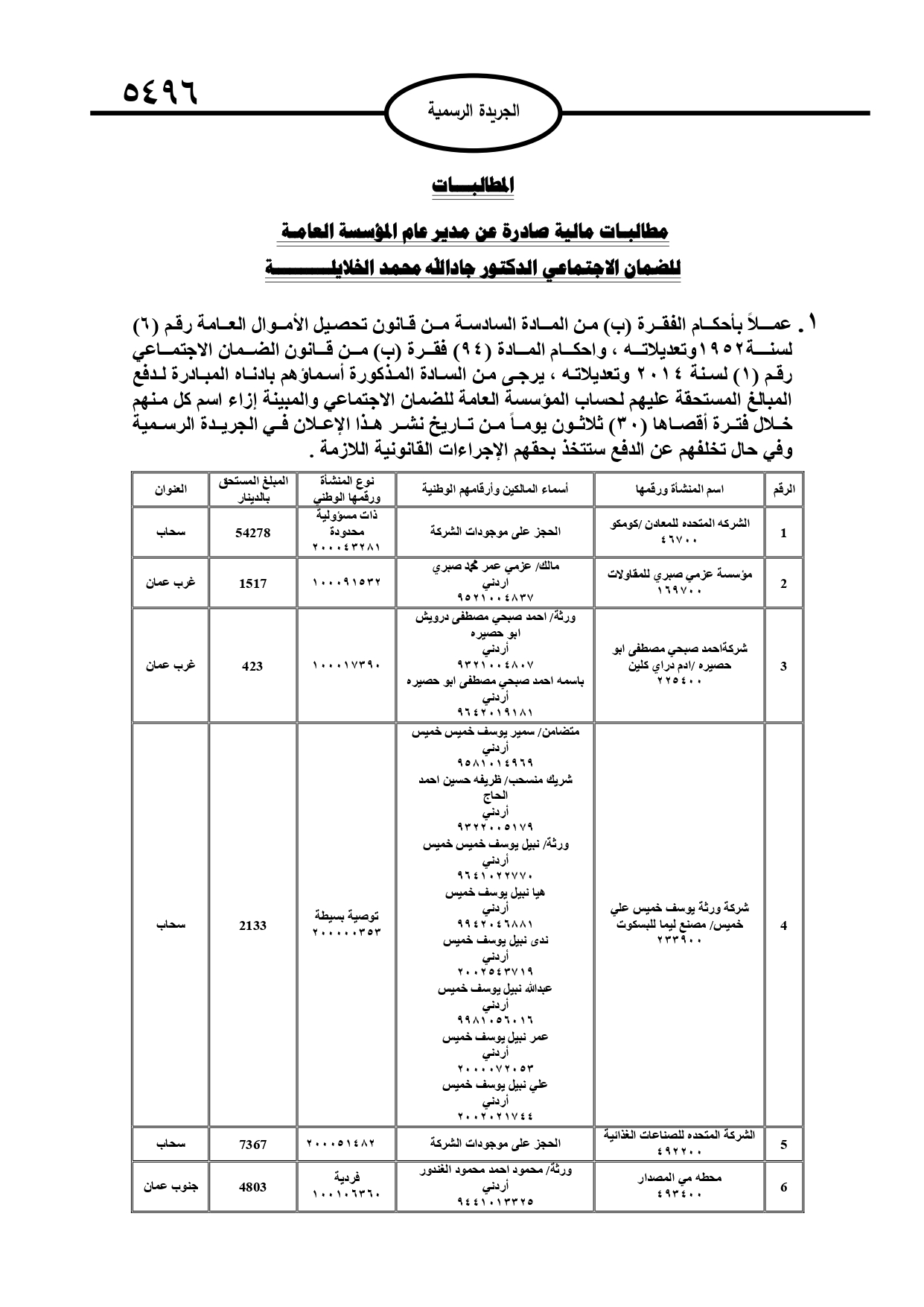 صدر في الجريدة الرسمية، الخميس، مطالبات مالية بحق مدانين لصالح جهات رسمية، وفي حال عدم تسوية أوضاعهم سيتم اتخاذ الإجراءات القانونية بحقهم.