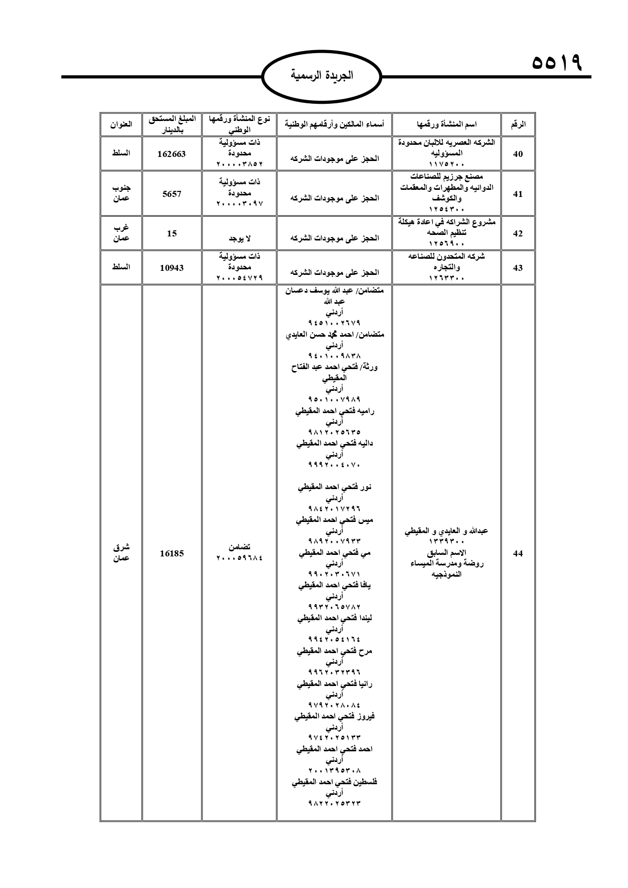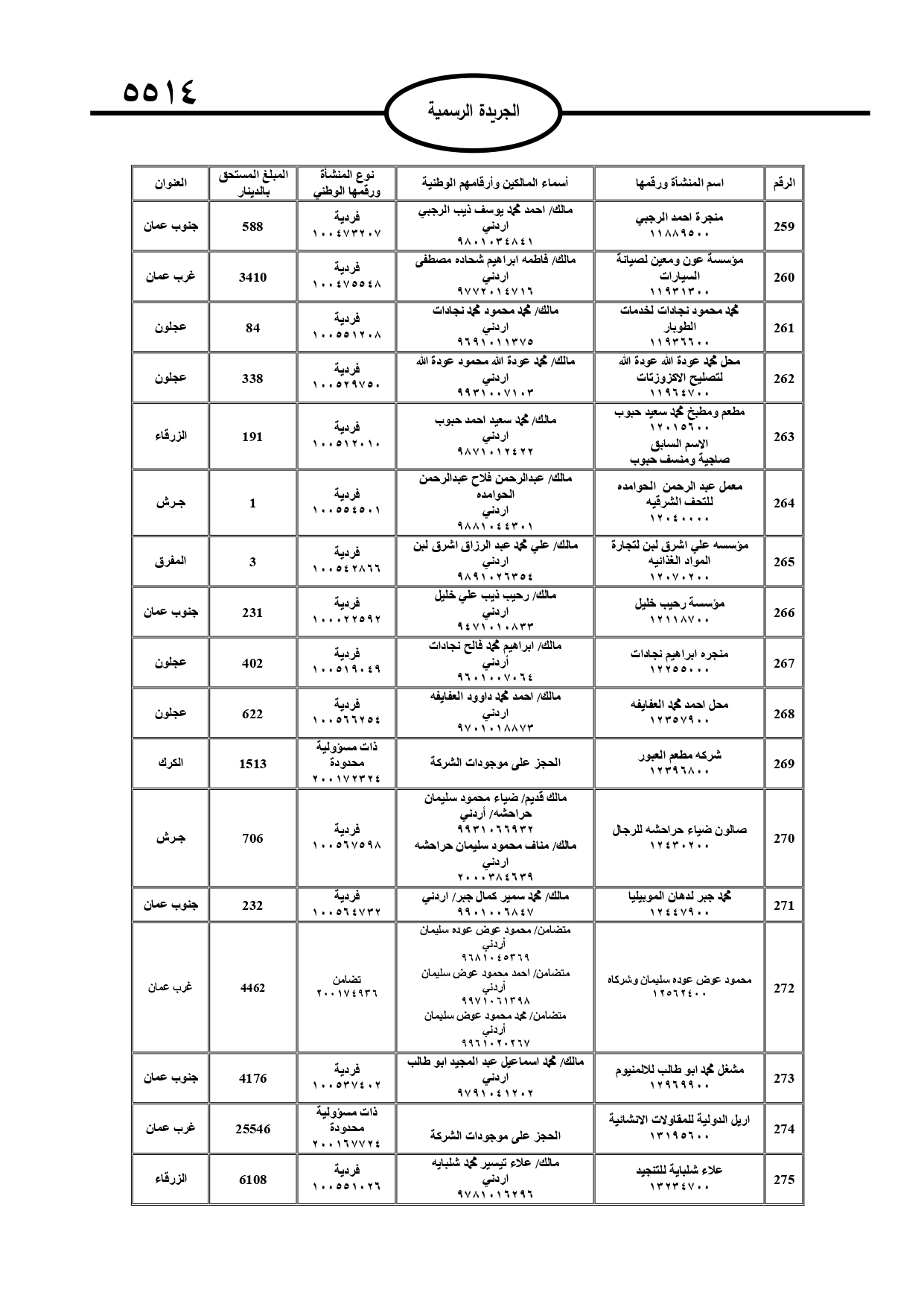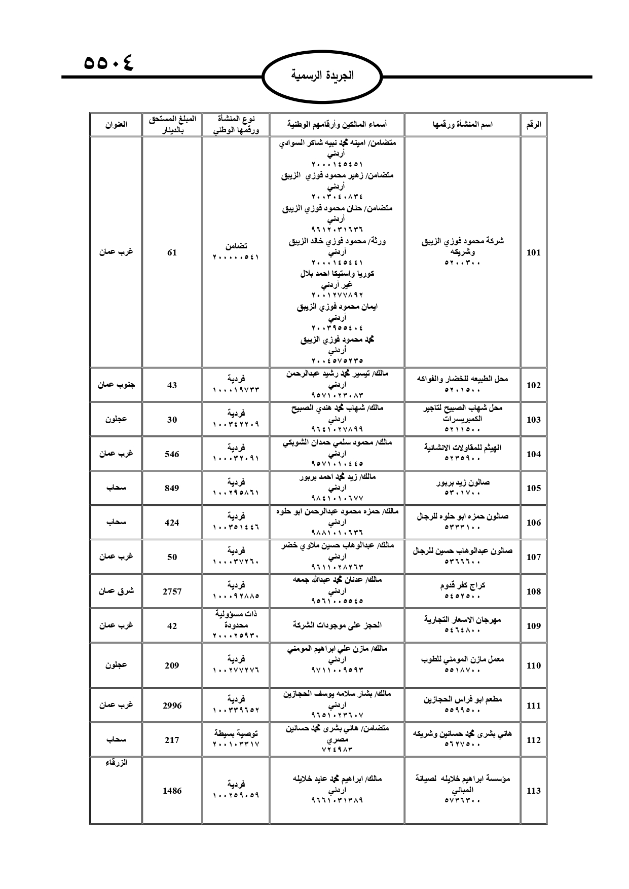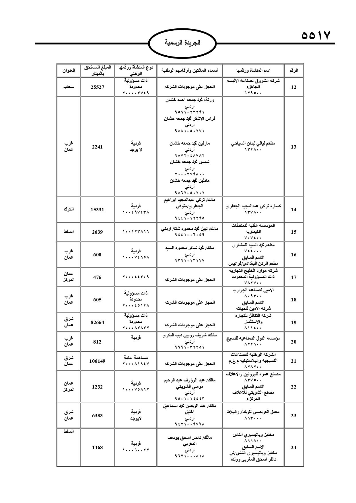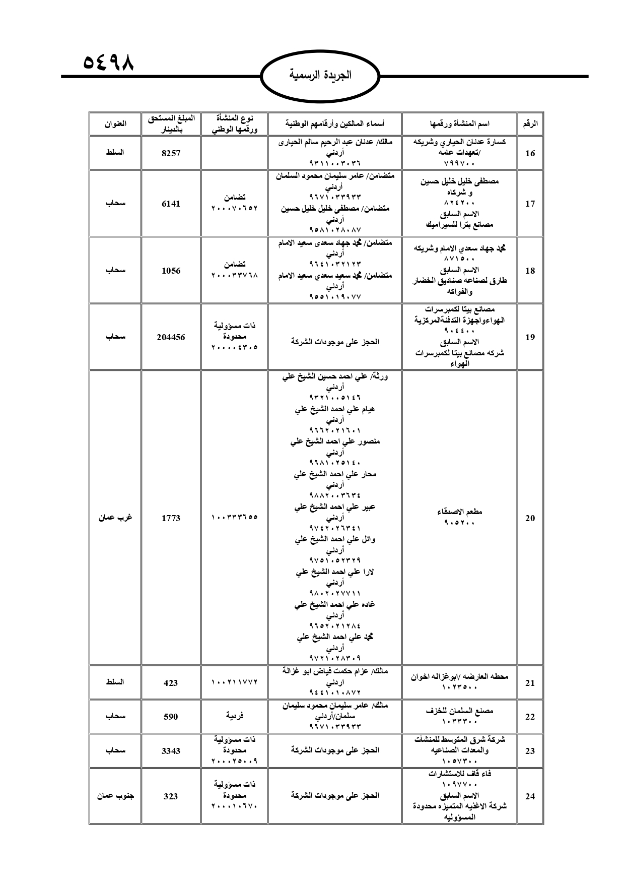 صدر في الجريدة الرسمية، الخميس، مطالبات مالية بحق مدانين لصالح جهات رسمية، وفي حال عدم تسوية أوضاعهم سيتم اتخاذ الإجراءات القانونية بحقهم.