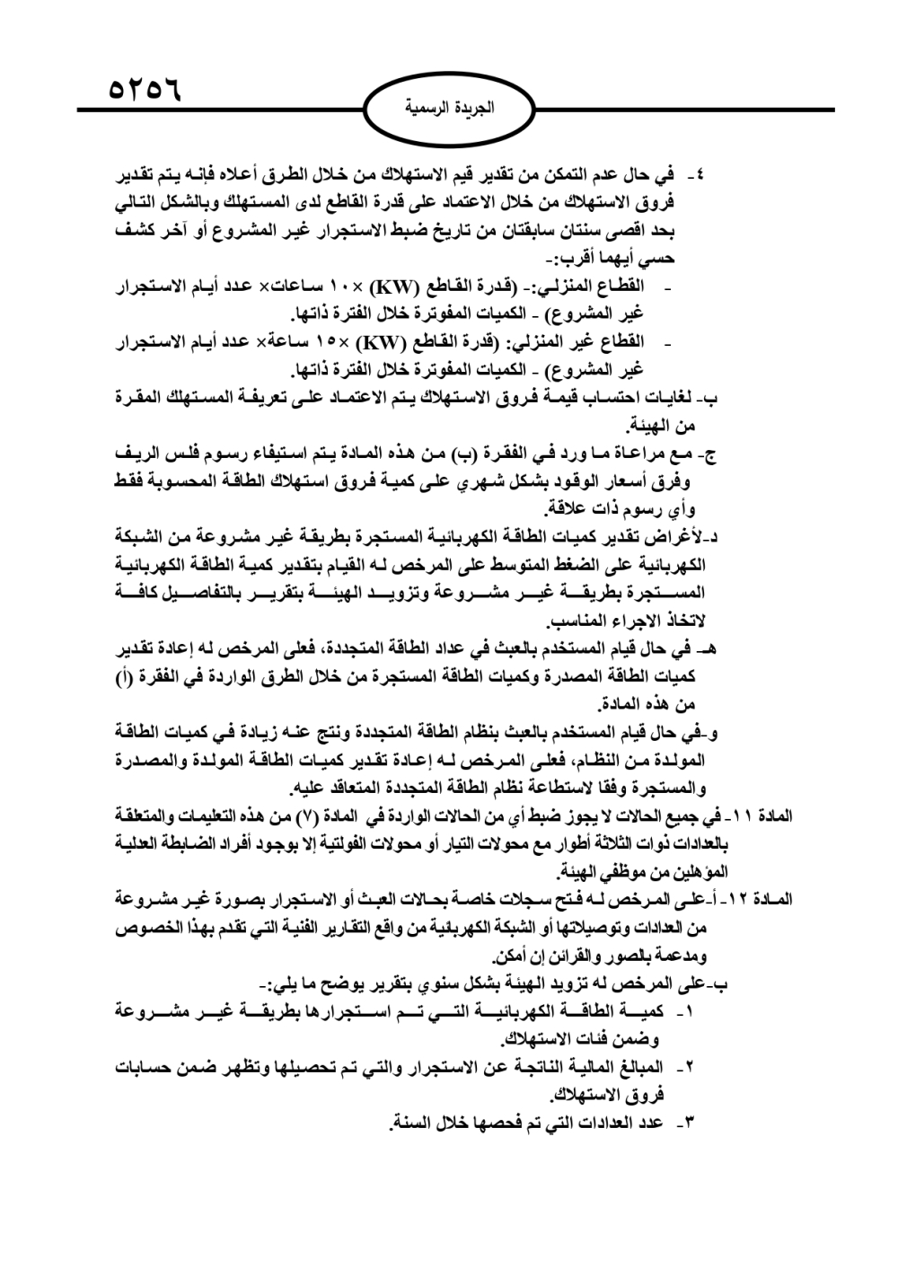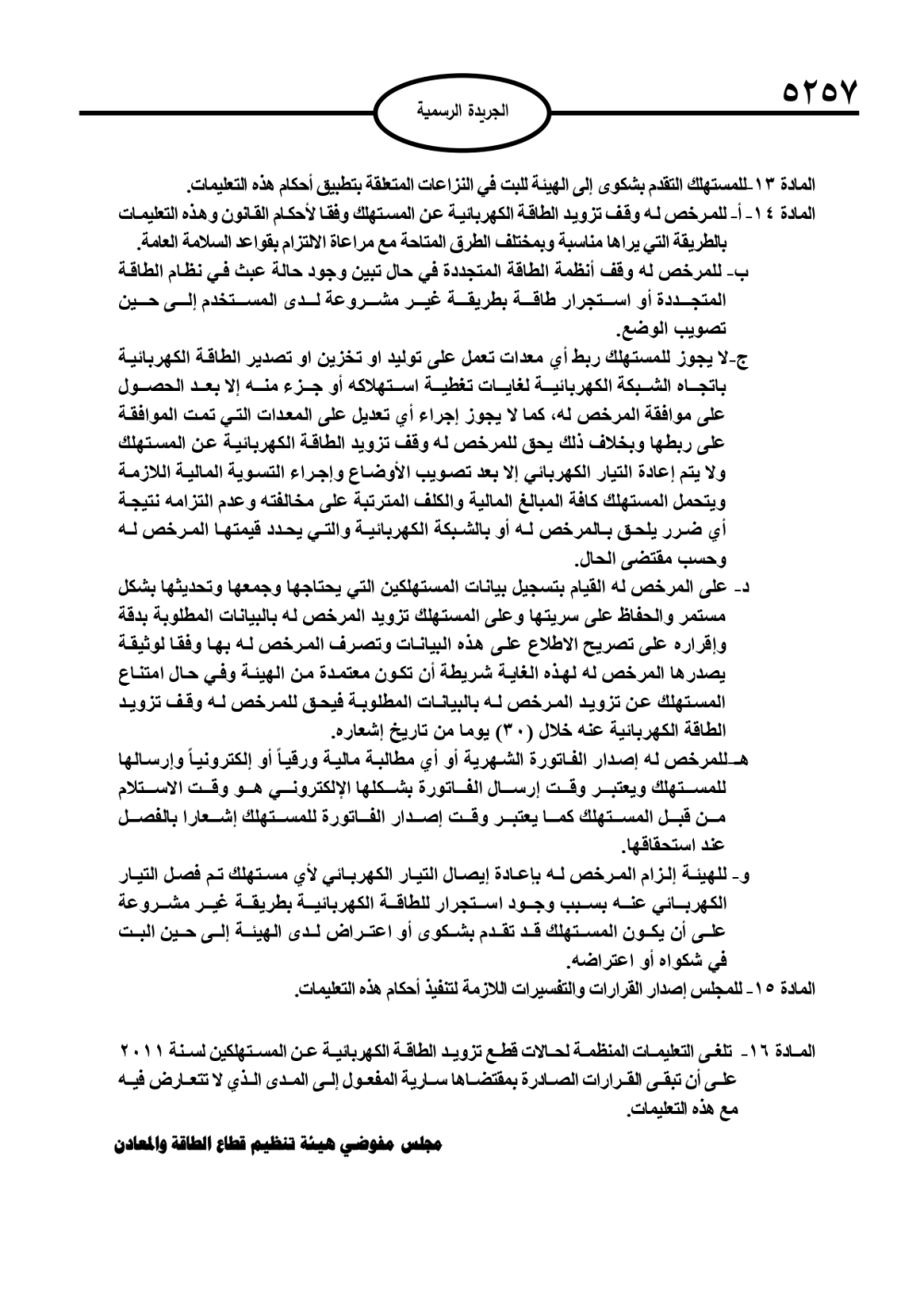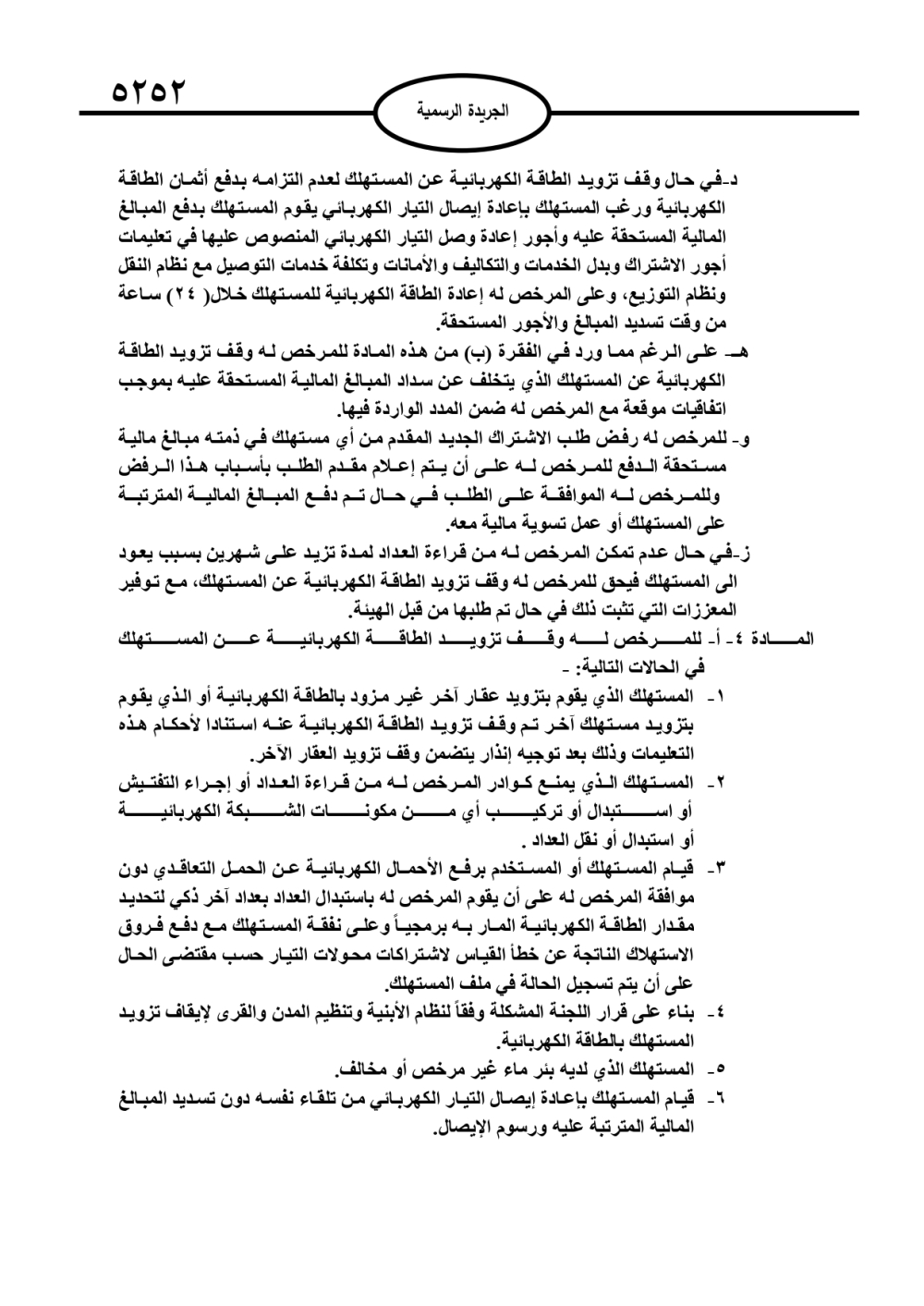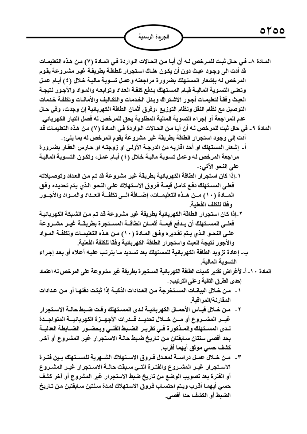 تعليمات تنظيم حالات قطع الكهرباء والتسوية المالية