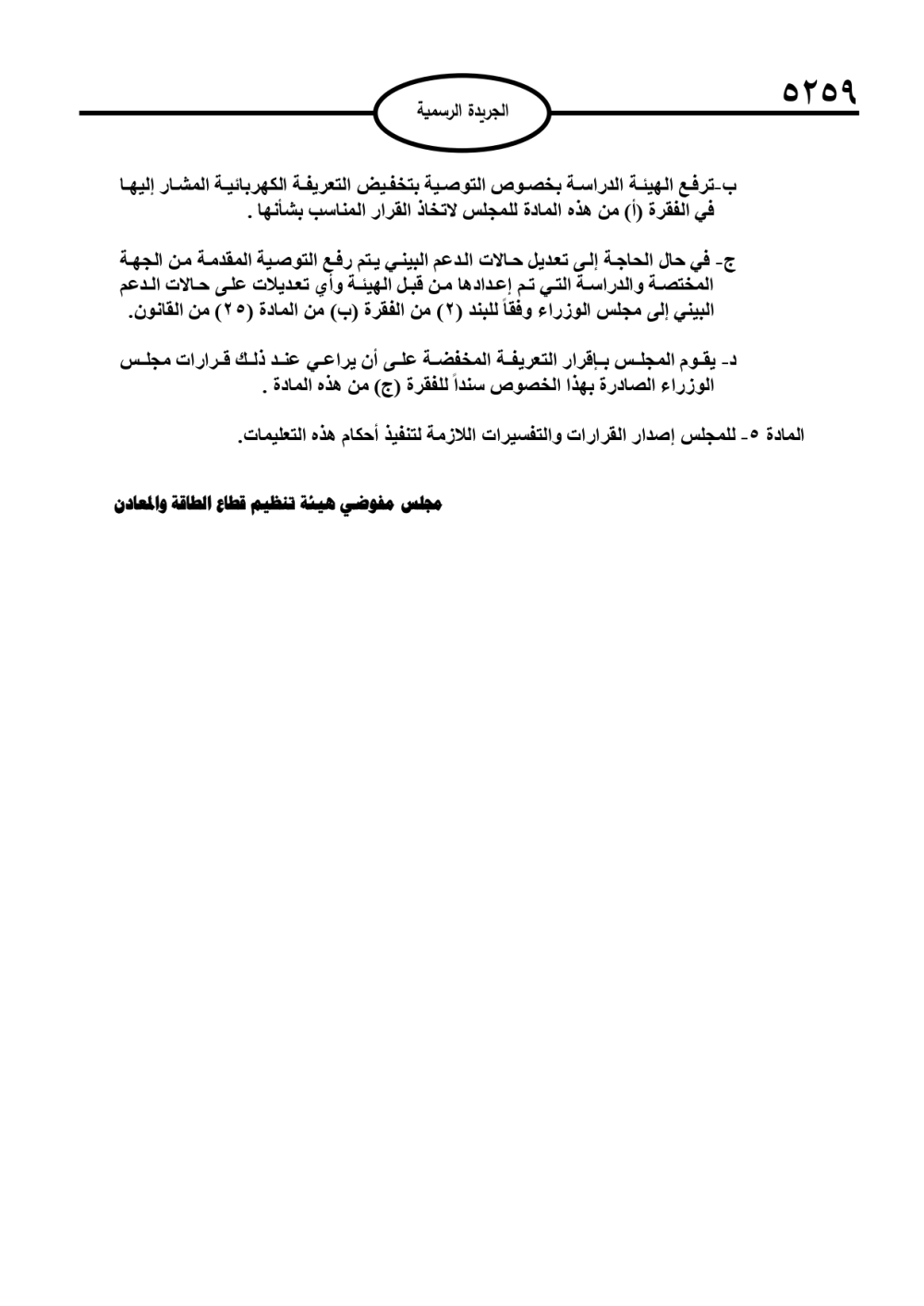 تعليمات أسس تعريفة الكهرباء المخفضة لبعض المستهلكين