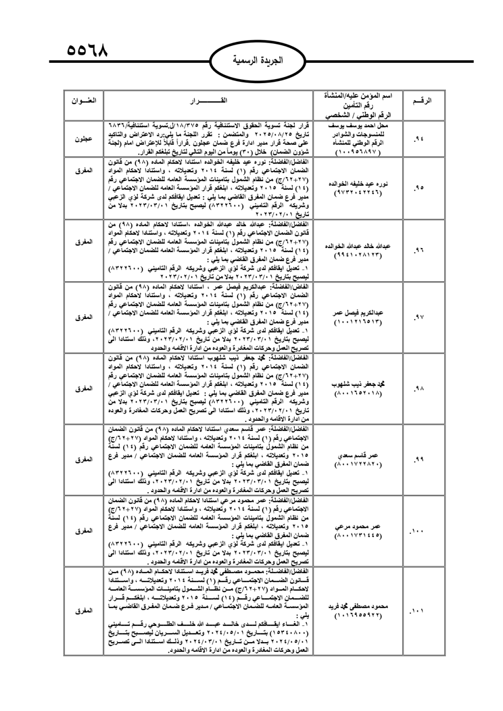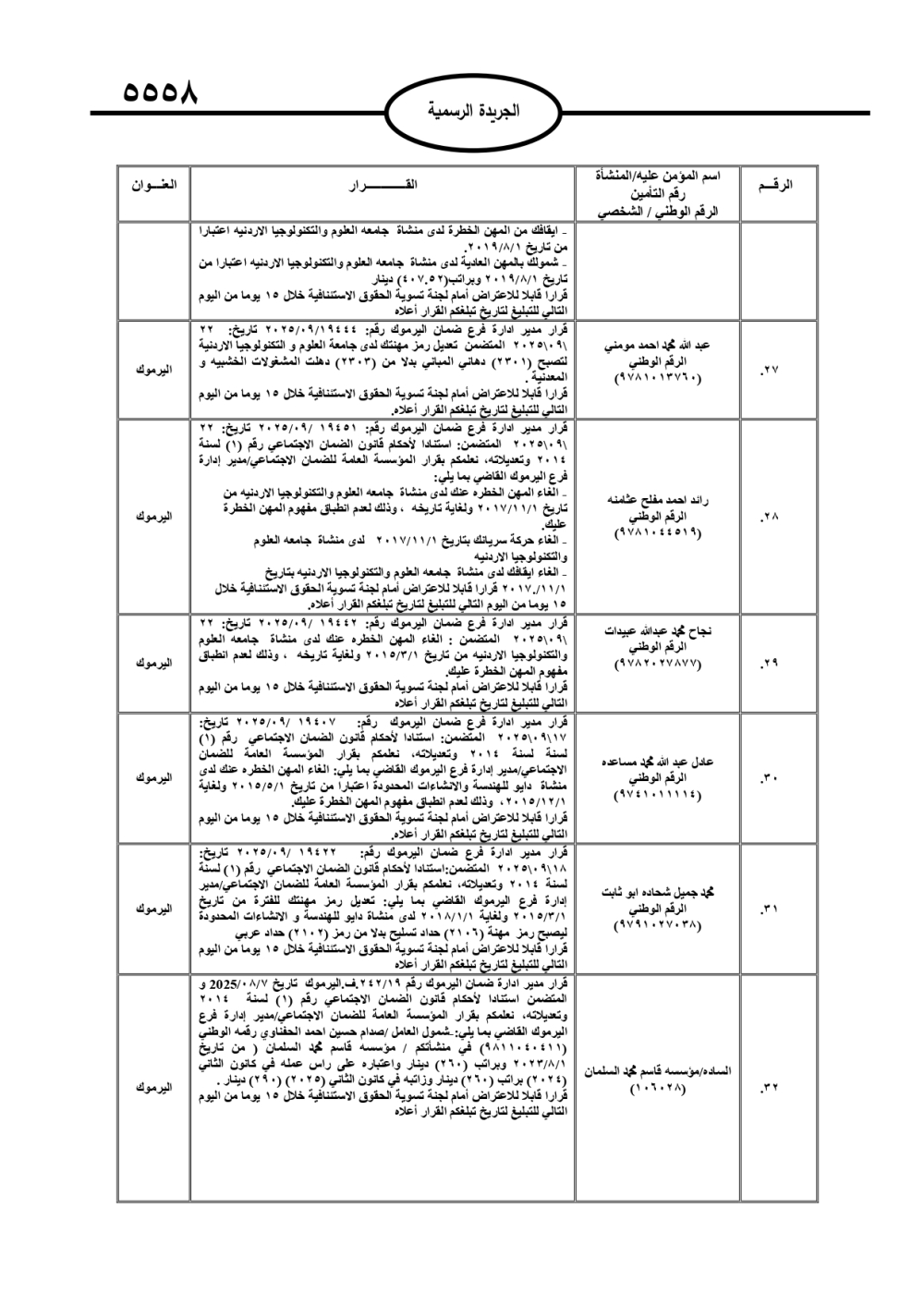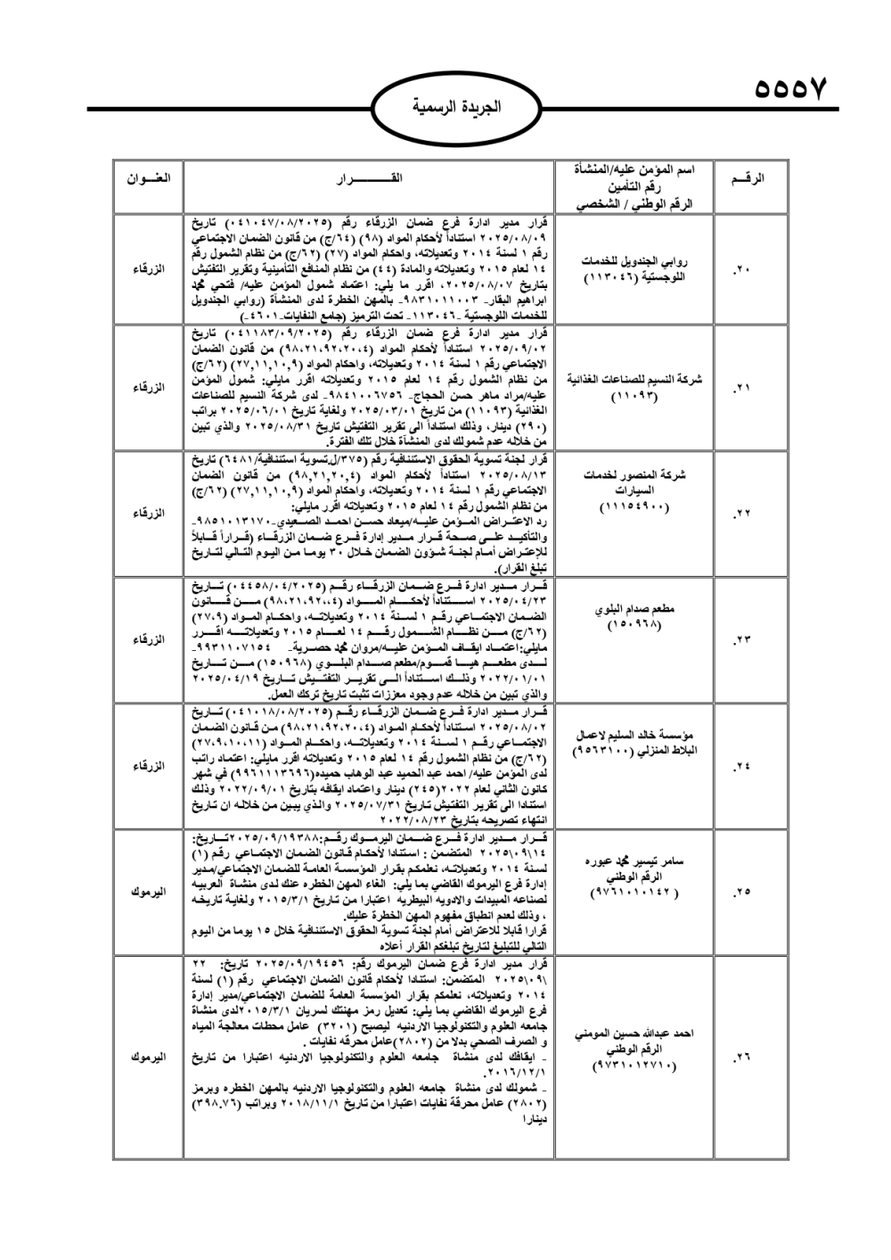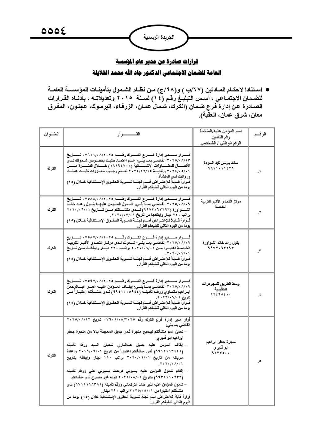 نُشر في الجريدة الرسمية، الخميس، قرارات واسعة صادرة عن مدير عام المؤسسة العامة للضمان الاجتماعي، وتاليا نص القرارات: