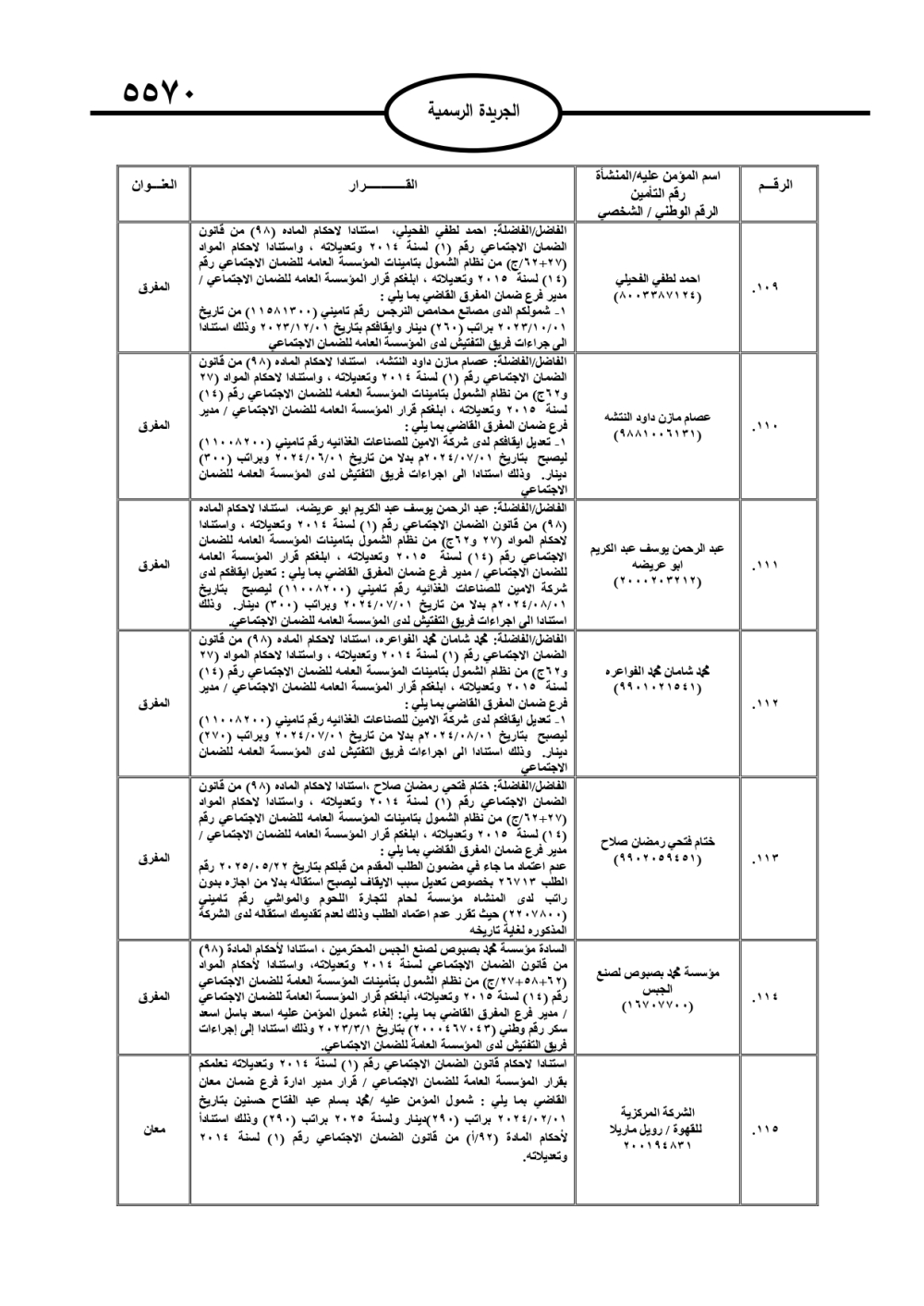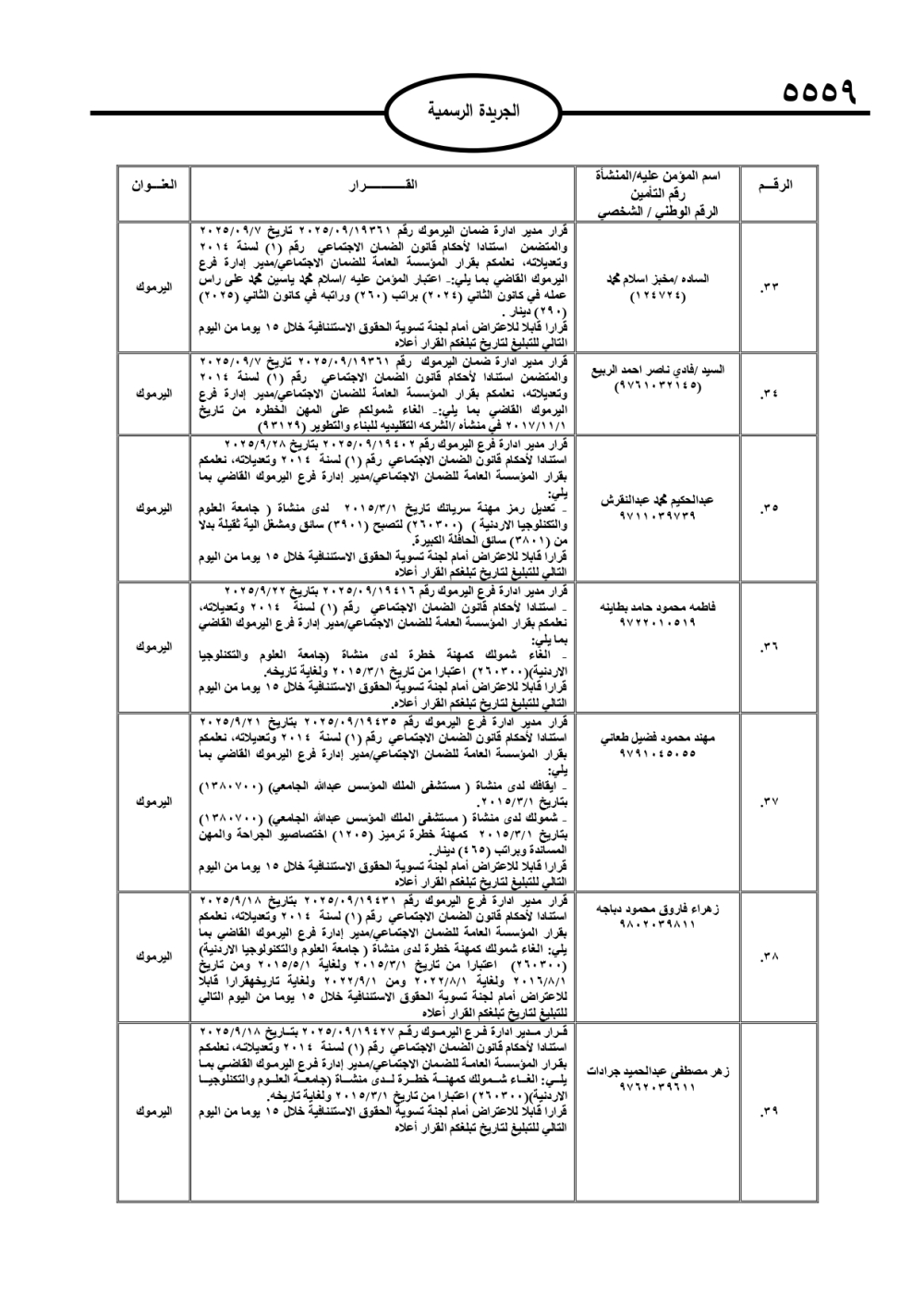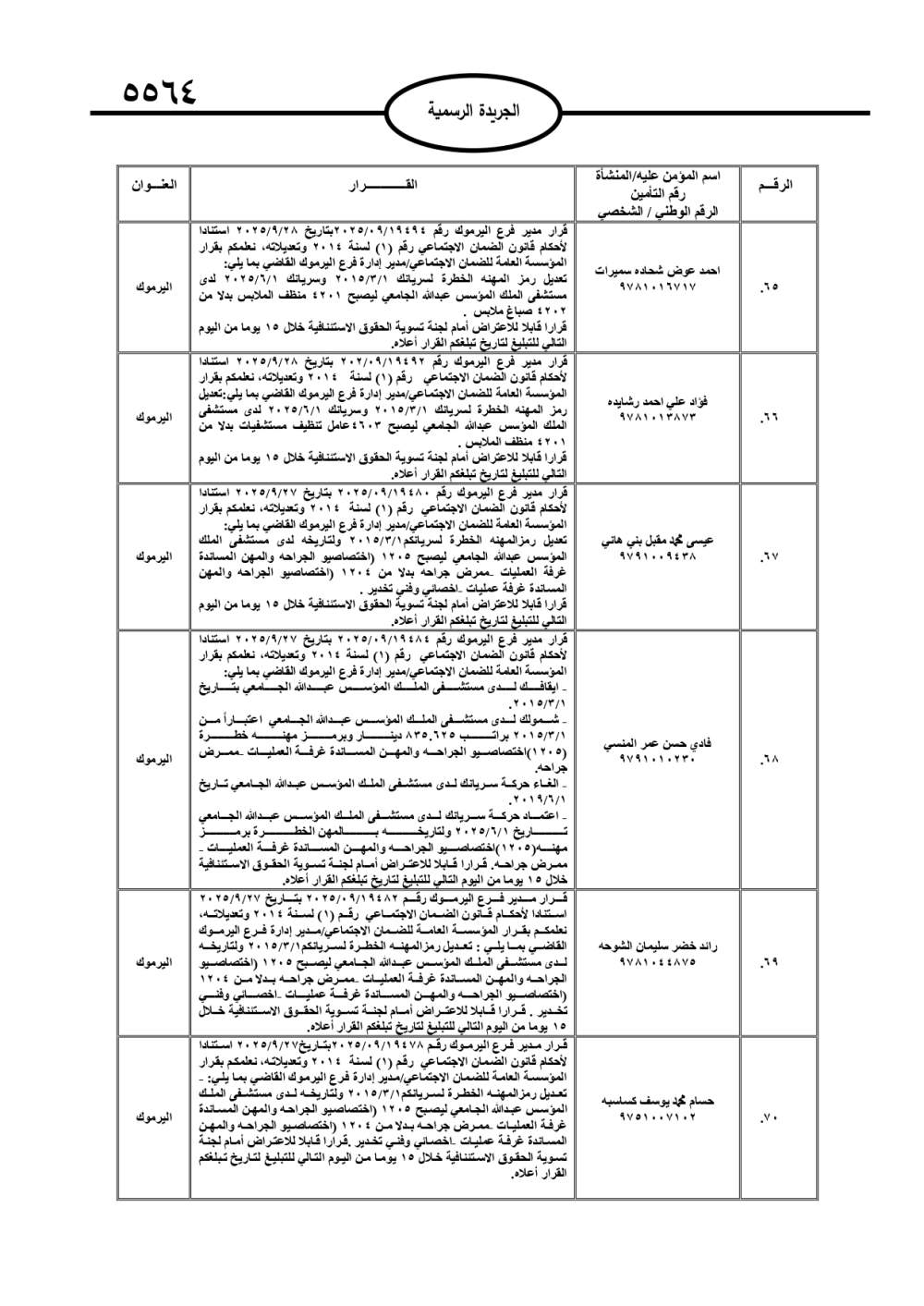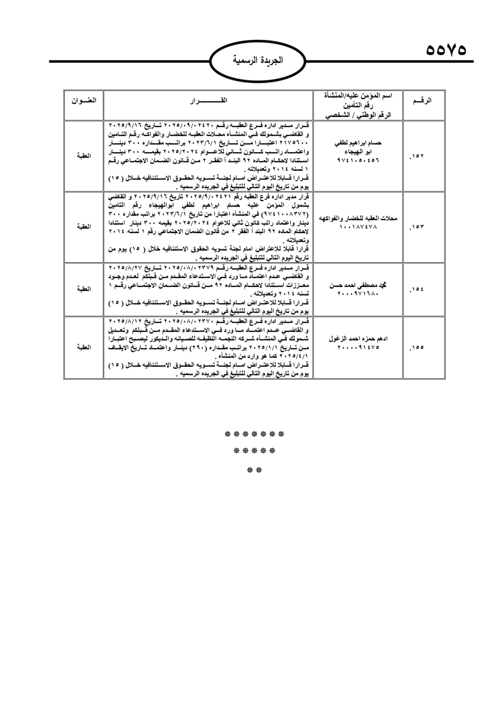 نُشر في الجريدة الرسمية، الخميس، قرارات واسعة صادرة عن مدير عام المؤسسة العامة للضمان الاجتماعي، وتاليا نص القرارات:
