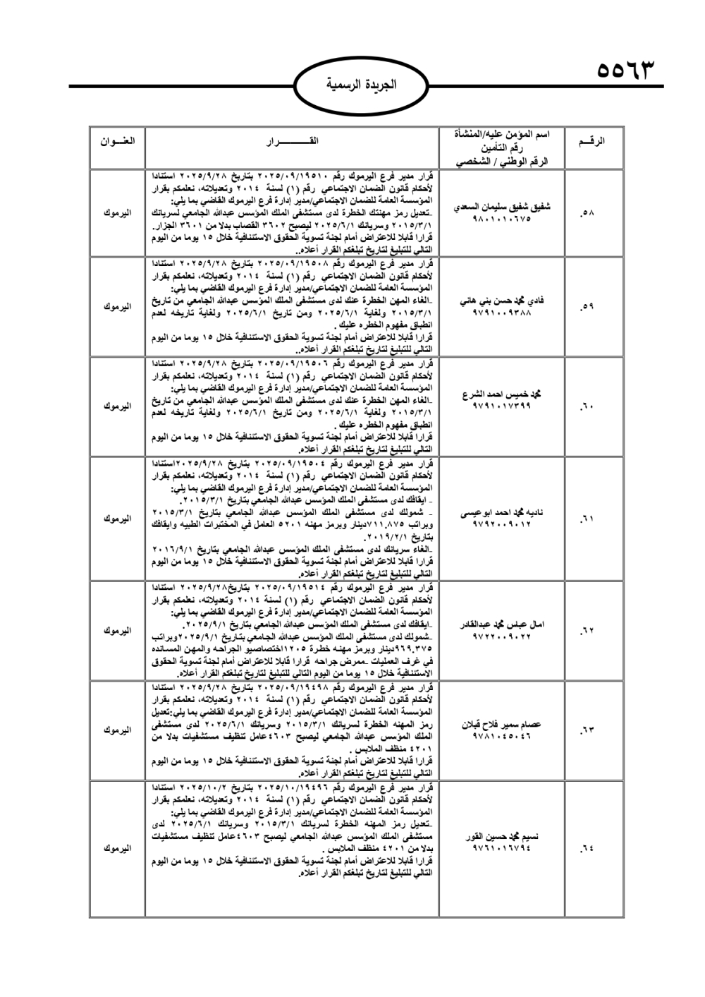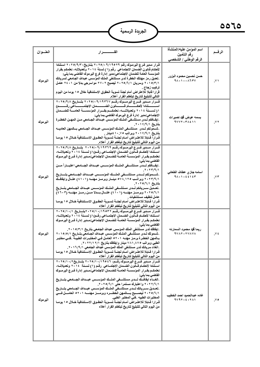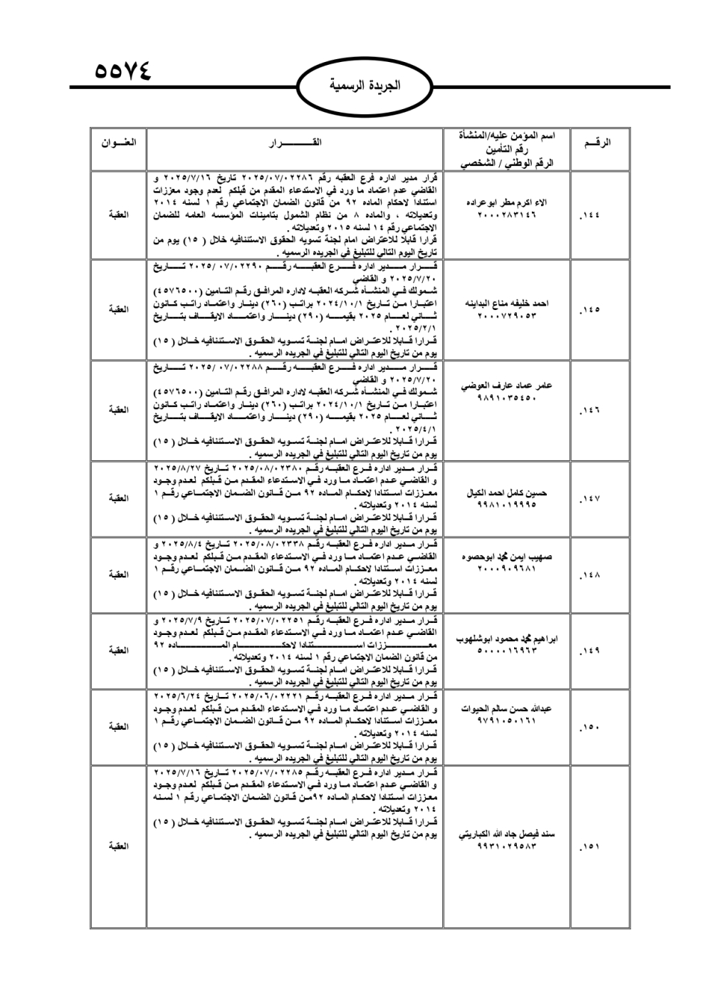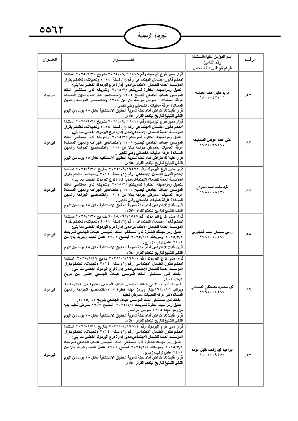 نُشر في الجريدة الرسمية، الخميس، قرارات واسعة صادرة عن مدير عام المؤسسة العامة للضمان الاجتماعي، وتاليا نص القرارات: