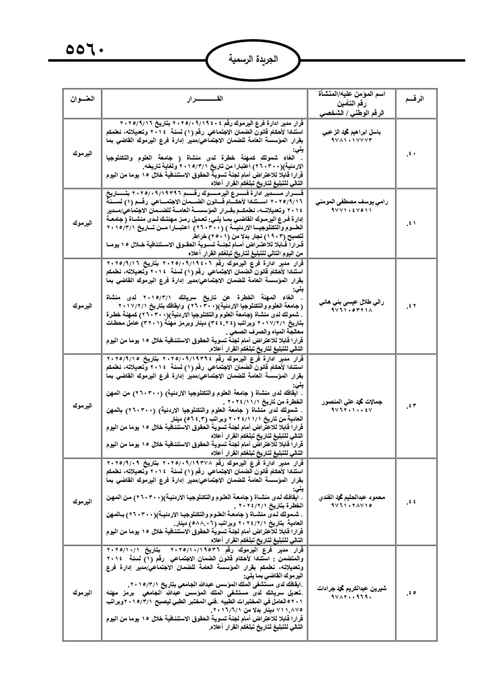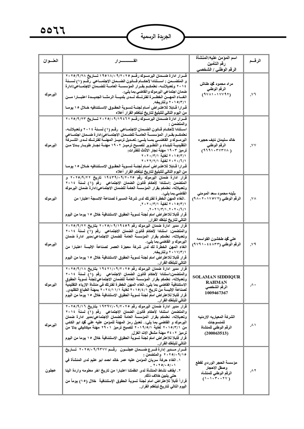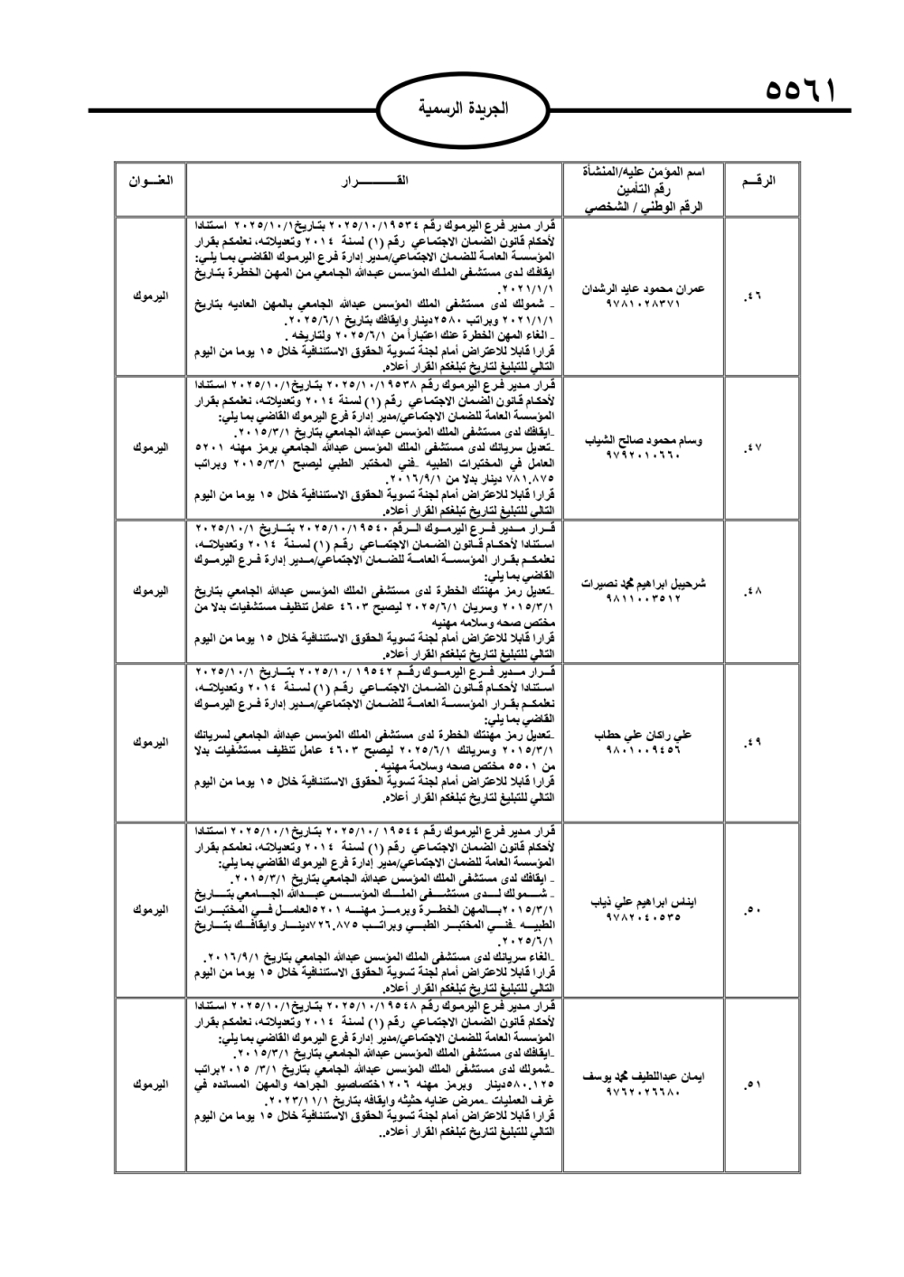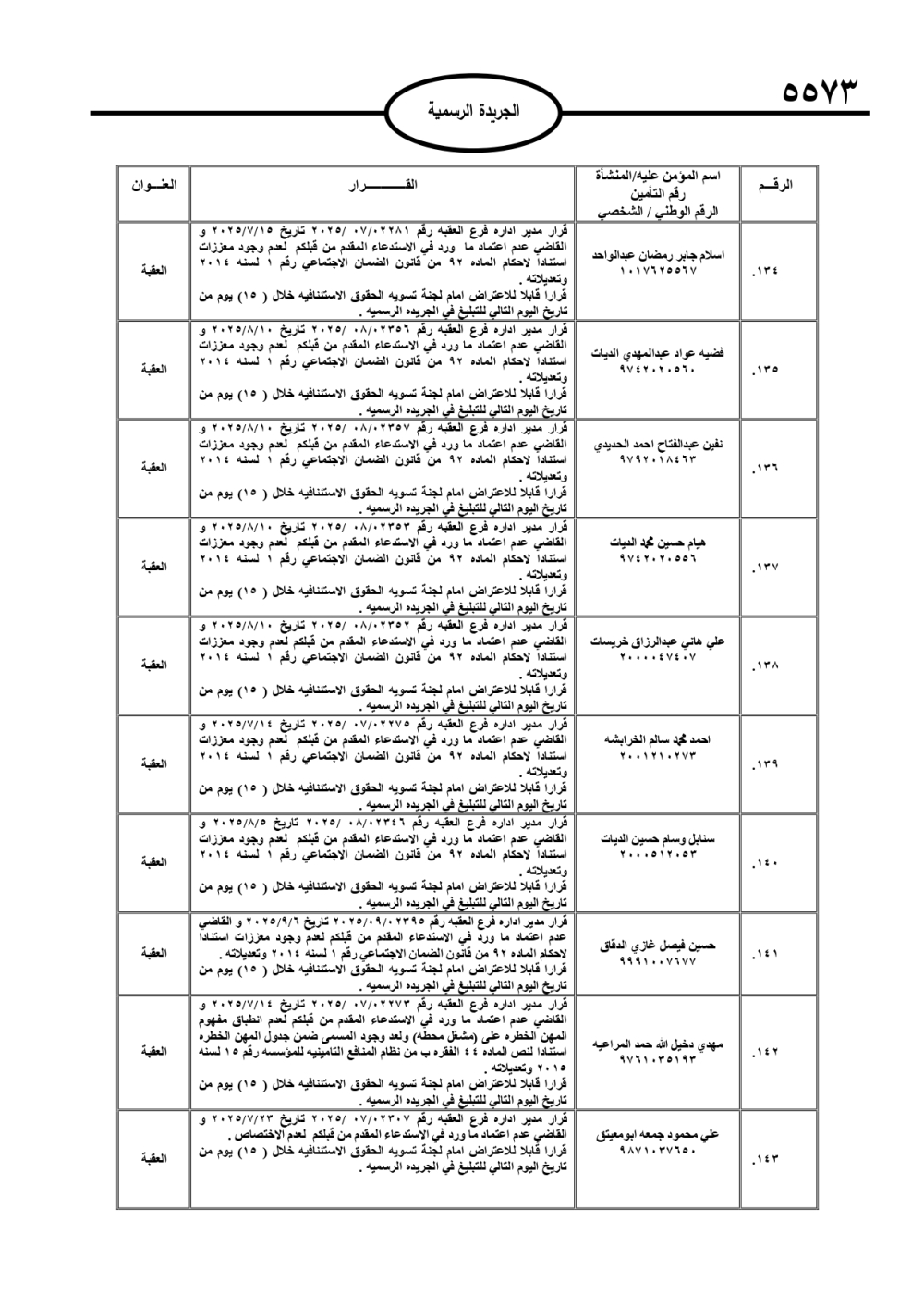 نُشر في الجريدة الرسمية، الخميس، قرارات واسعة صادرة عن مدير عام المؤسسة العامة للضمان الاجتماعي، وتاليا نص القرارات: