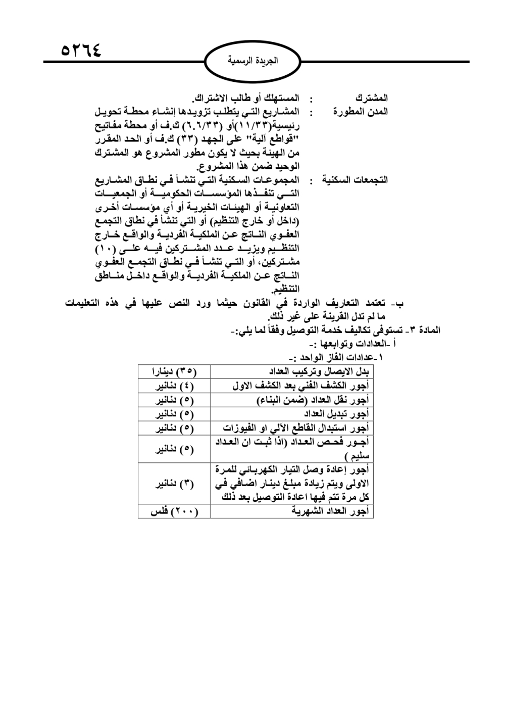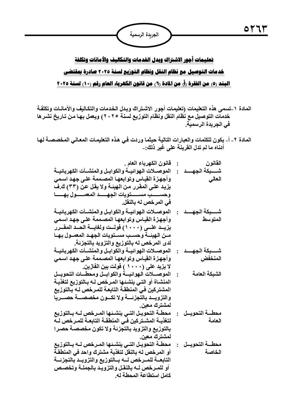 صدر في الجريدة الرسمية، الخميس، تعليمات أجور الاشتراك وبدل الخدمات والتكاليف والأمانات وتكلفة خدمات التوصيل مع نظام النقل ونظام التوزيع لسنة 2025.