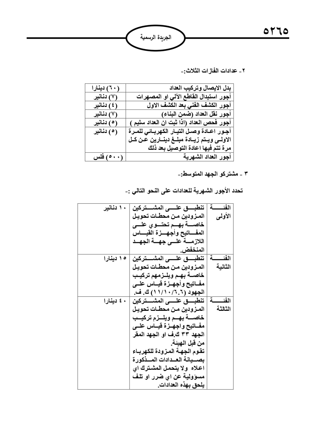 صدور تعليمات أجور الاشتراك وبدل خدمات الكهرباء