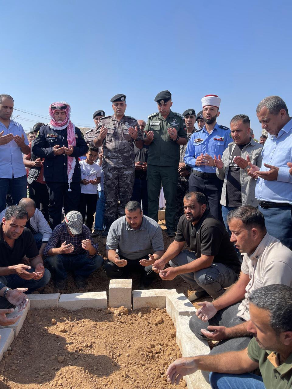 وشارك بتشييع الجثمان نائب مدير شرطـة الباديـة الوسطـى العقيـد خالد العجارمـة والشرطـة المجتمعيـة، وعدد من ضباط وضباط صف وأفراد مديريـة الأمن العام من مختلف التشكيلات.