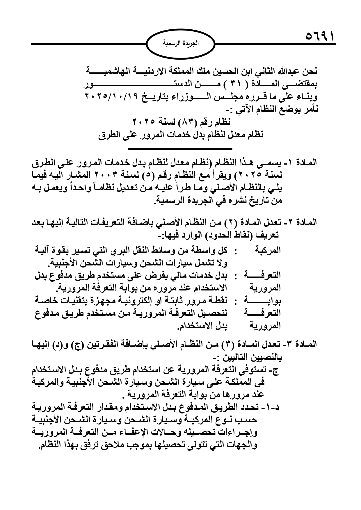 صدر في عدد الجريدة الرسمية، الخميس، نظام معدل لنظام بدل خدمات المرور على الطرق لسنة 2025، وتاليا نص النظام: (5)_page-0001.jpg)